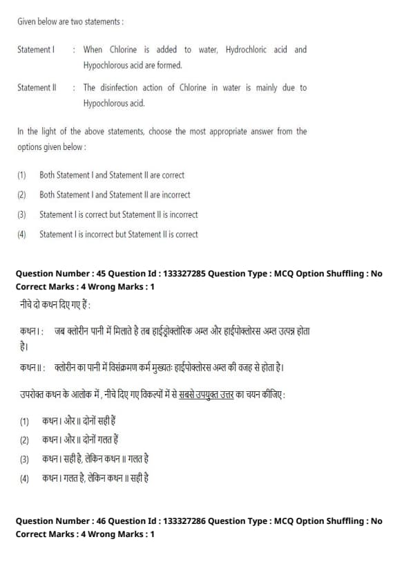 In the light of the above statements, choose the most appropriate answer from the options given below :