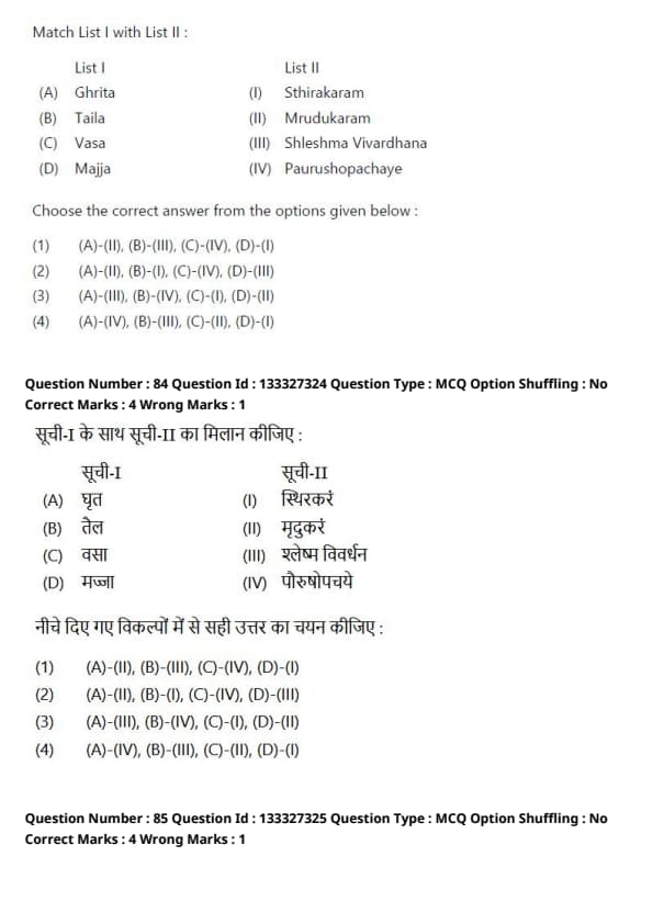 These matchings are important for understanding the Ayurvedic approach to dietary habits and their effects on the body. Quick Tip: Ayurveda emphasizes the effects of different tastes (Rasas) and their influence on bodily functions, helping to balance the doshas.