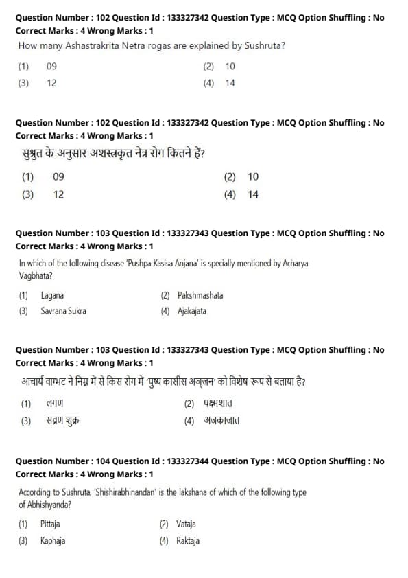 Thus, the correct answer is 12. Quick Tip: In Ayurveda, Ashastrakita Netra Rogas refer to non-surgical treatments for common eye diseases.