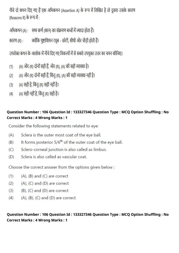 Since Reason (R) explains the cause behind the increased frequency of middle ear infections in children, both (A) and (R) are correct and (R) is the correct explanation of (A). Quick Tip: The anatomy of the Eustachian tube in children plays a significant role in the frequency of middle ear infections.