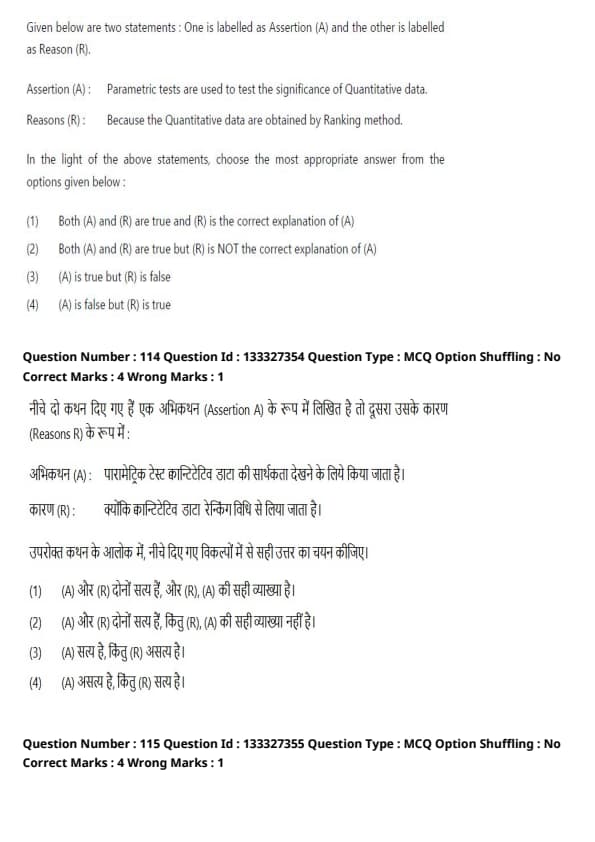 Assertion (A): Parametric tests are used to test the significance of Quantitative data.