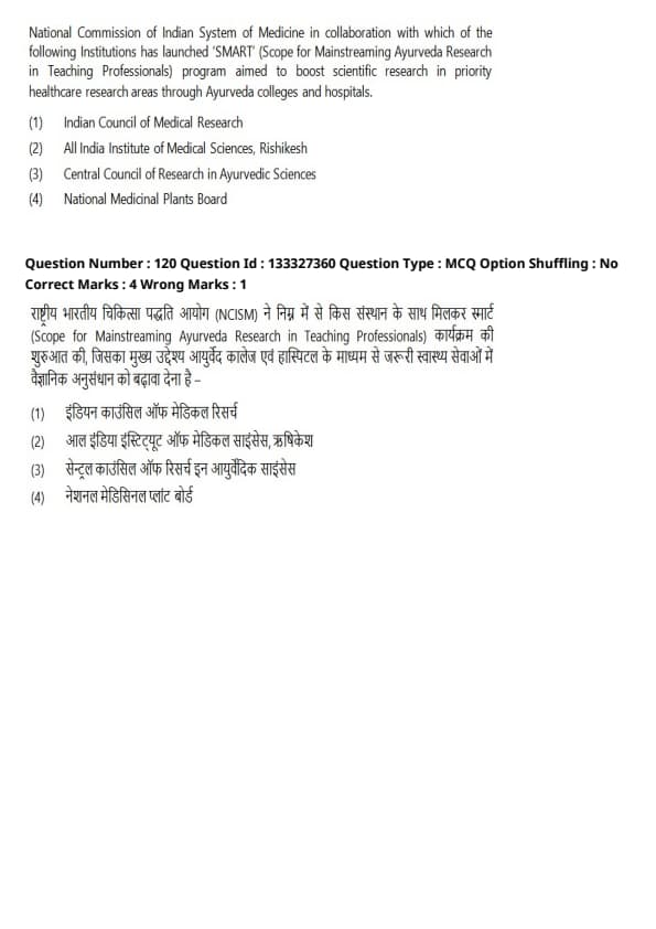 National Commission of Indian System of Medicine in collaboration with which of the following institutions has launched 'SMART' (Scope for Mainstreaming Ayurveda Research in Teaching Professionals) program aimed to boost scientific research in priority healthcare research areas through Ayurveda colleges and hospitals.