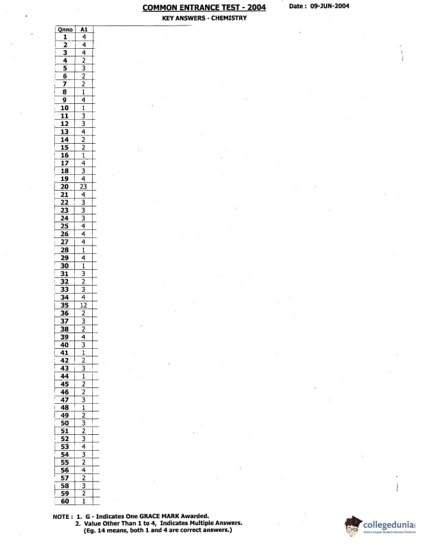 | KCET 2004 Chemistry Question Paper 2004 PDF | KCET 2004 Chemistry Answer Key 2004 PDF |