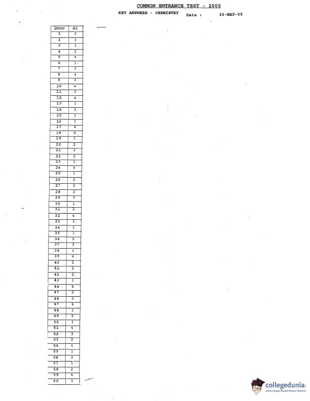 | KCET 2005 Chemistry Question Paper 2005 PDF | KCET 2005 Chemistry Answer Key 2005 PDF |
