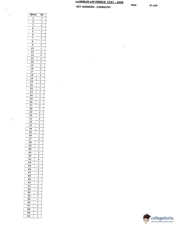| KCET 2006 Chemistry Question Paper 2006 PDF | KCET 2006 Chemistry Answer Key 2006 PDF |