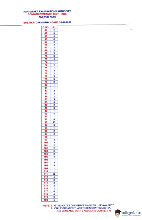 | KCET 2008 Chemistry Question Paper 2008 PDF | KCET 2008 Chemistry Answer Key 2008 PDF |