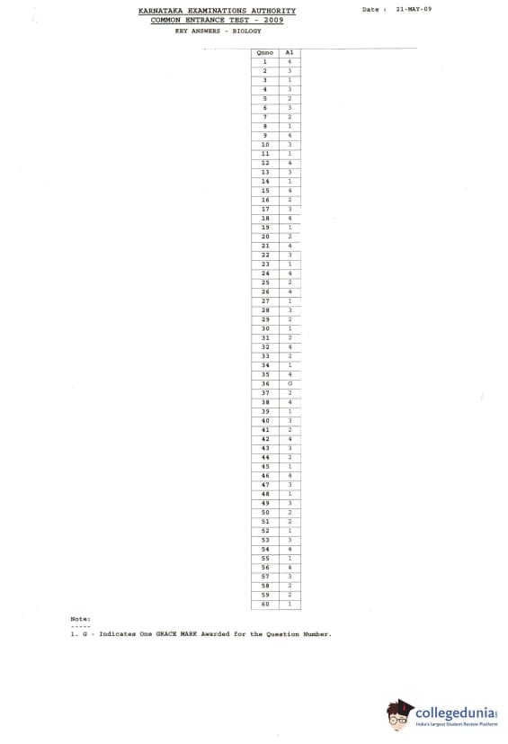 | KCET 2009 Biology Question Paper 2009 PDF | KCET 2009 Biology Answer Key 2009 PDF |