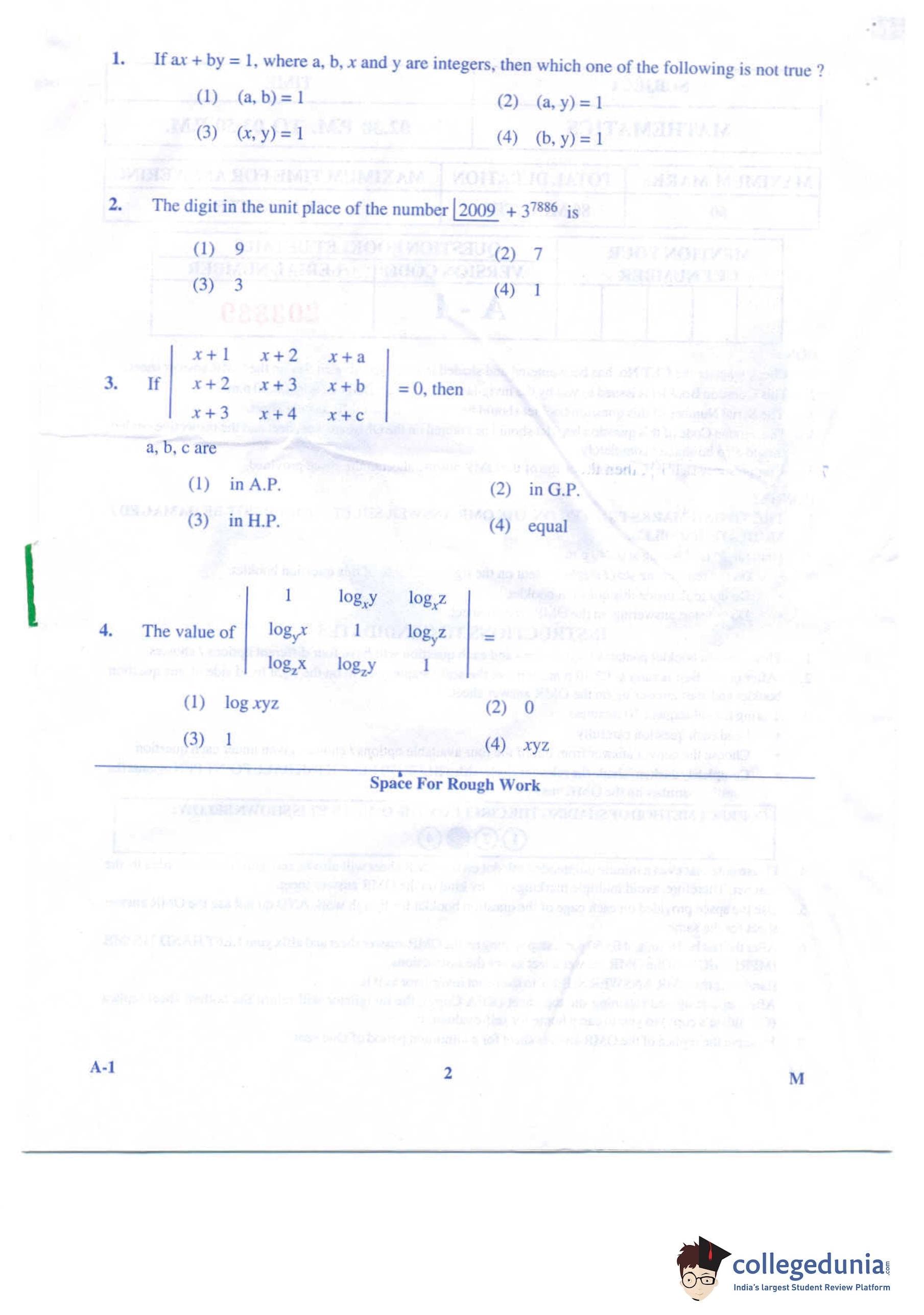 KCET 2009 Mathematics Question Paper with Answer Key PDF