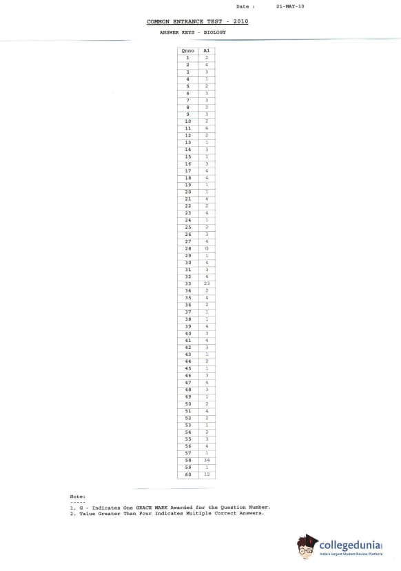 | KCET 2010 Biology Question Paper 2010 PDF | KCET 2010 Biology Answer Key 2010 PDF |