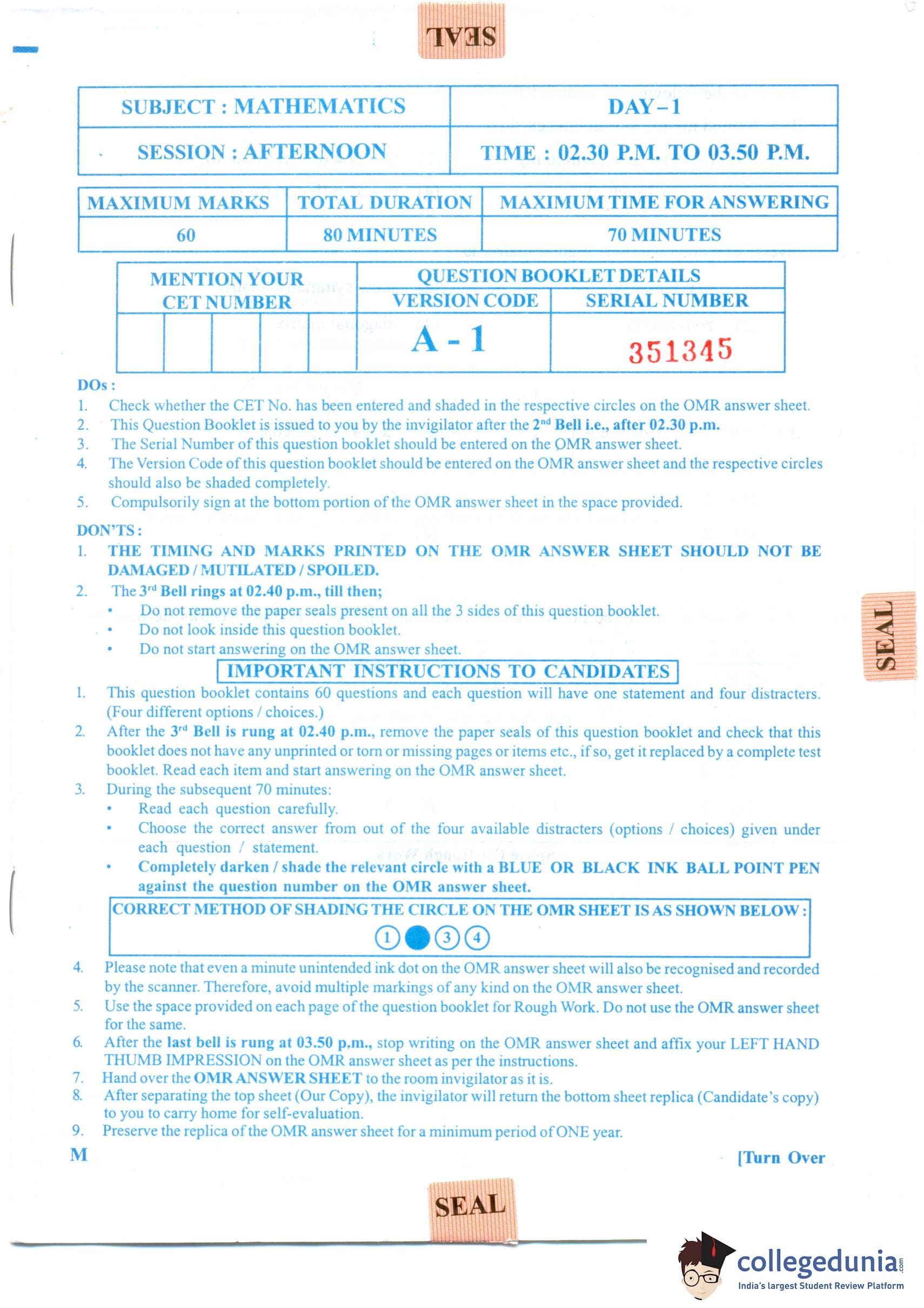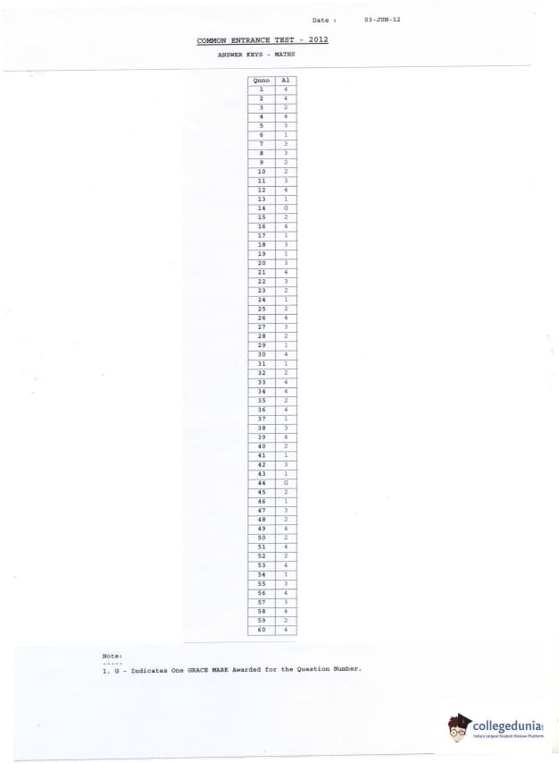 KCET 2012 Mathematics Question Paper with Answer Key pdf is available for download. The exam was conducted by Karnataka Examination Authority (KEA) on May 21, 2012 in the Afternoon Session 2:30 PM to 3:50 PM. The question paper comprised a total of 60 questions.