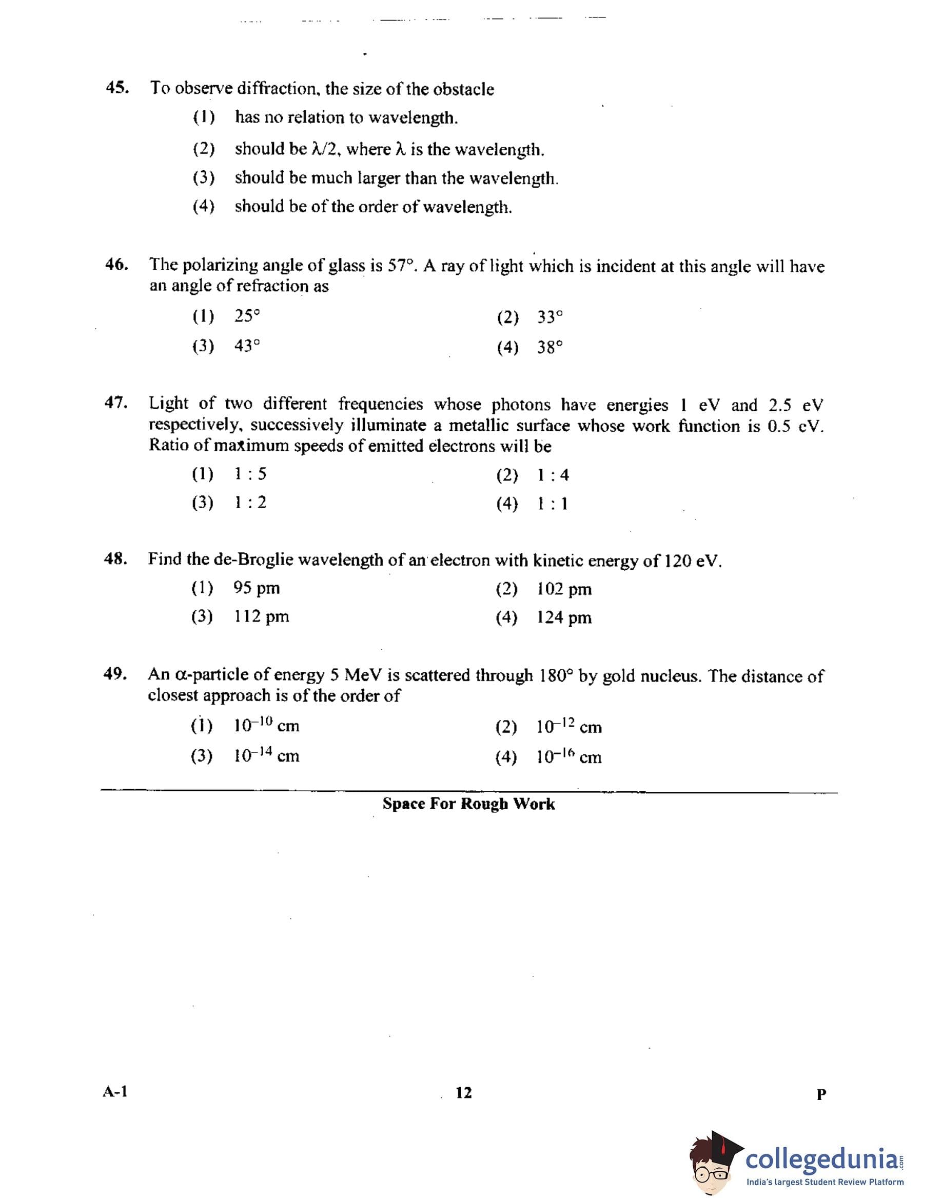 KCET 2015 Physics Question Paper with Answer Key pdf is available for download. The exam was conducted by Karnataka Examination Authority (KEA) on May 13, 2015 in the Morning Session 10:30 AM to 11:50 AM. The question paper comprised a total of 60 questions.