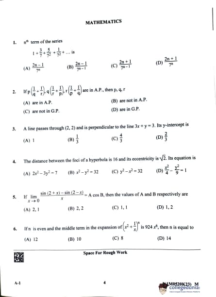 KCET 2023 Mathematics Question Paper with Answer Key PDF Set A1