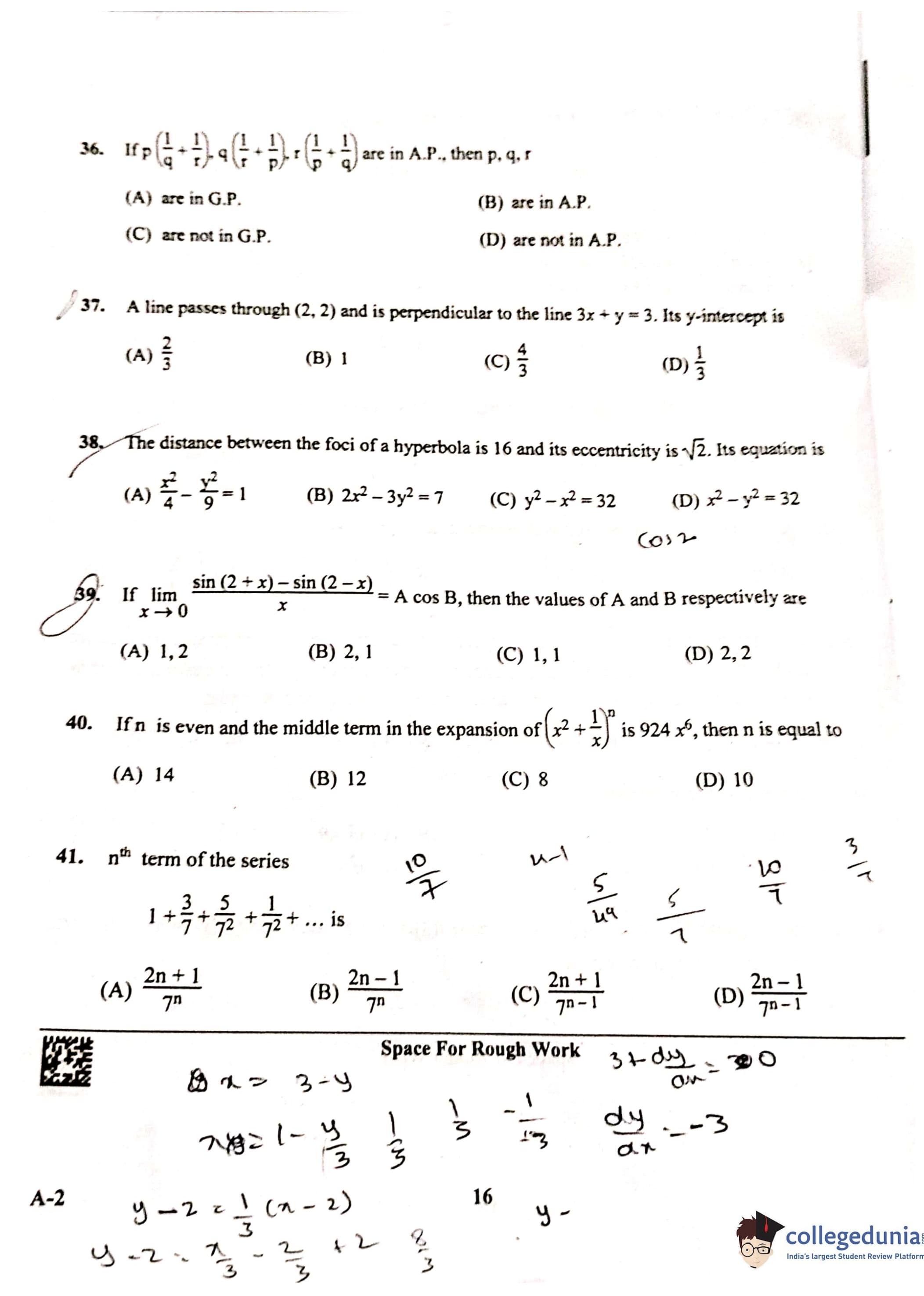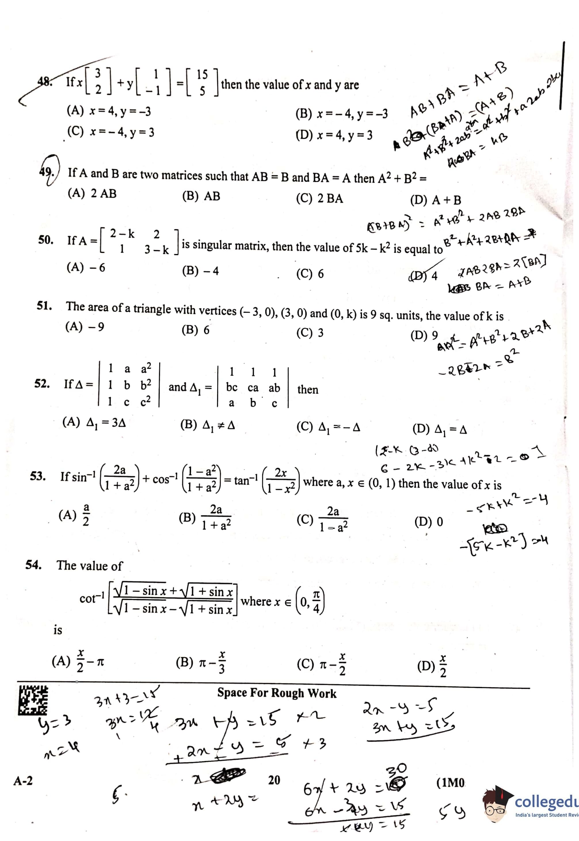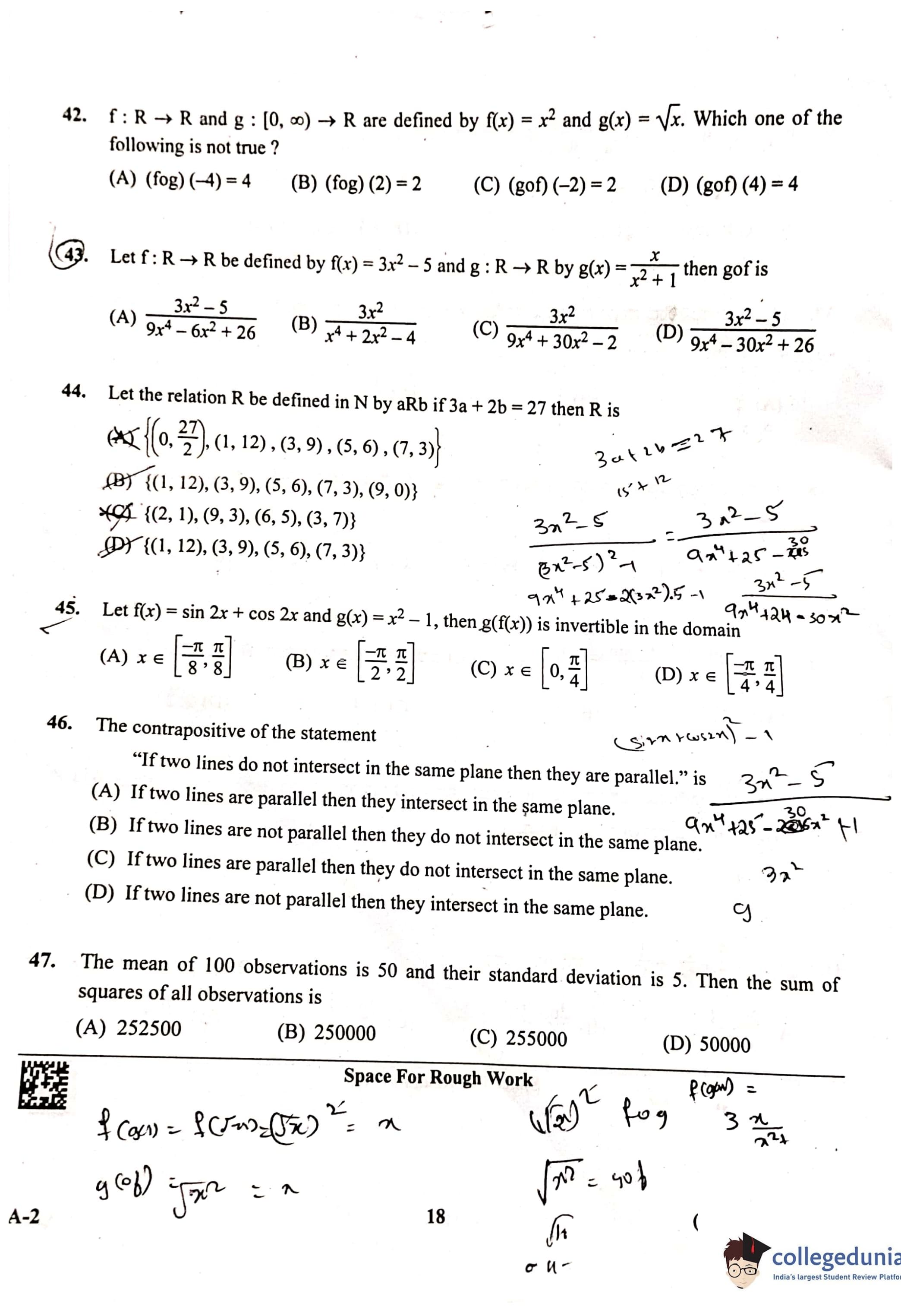 KCET 2023 Mathematics Question Paper with Answer Key PDF Set A2