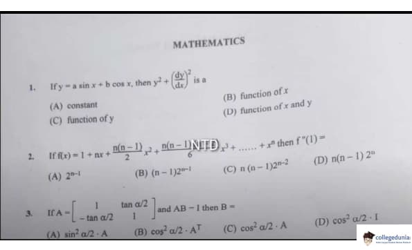 KCET 2023 Mathematics Question Paper Set A4 is available here for download. KCET 2023 Question Paper May 20 Shift 2 2:30 PM to 3:50 PM was conducted for Mathematics Paper. KCET 2023 Question Paper included 60 MCQ-based questions in total. Each candidate will be awarded +1 for correct answers, however, there will be no negative marking for incorrect responses. Students got 80 minutes to attempt KCET 2023 Mathematics Question Paper.