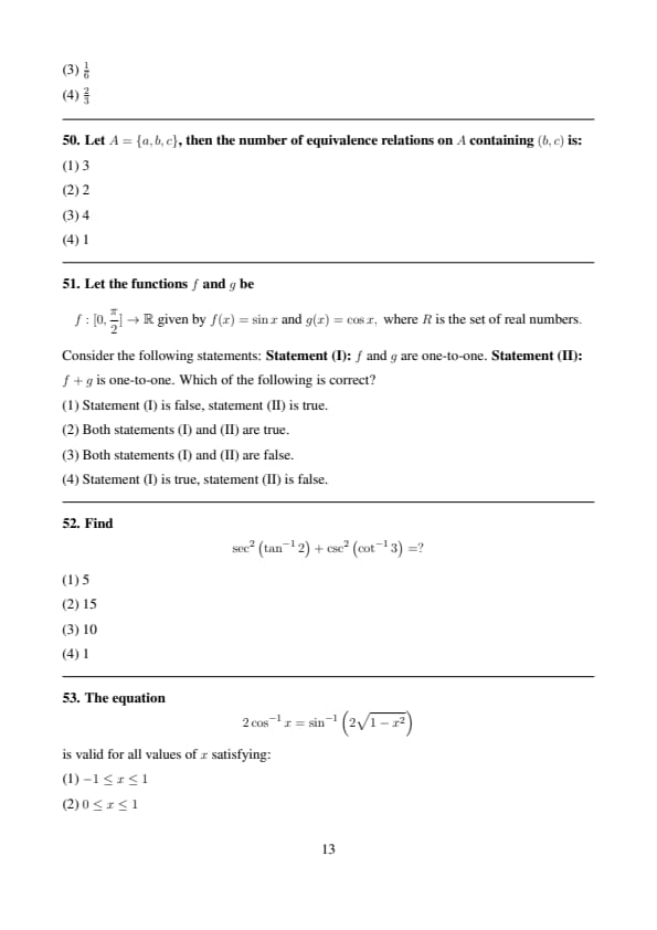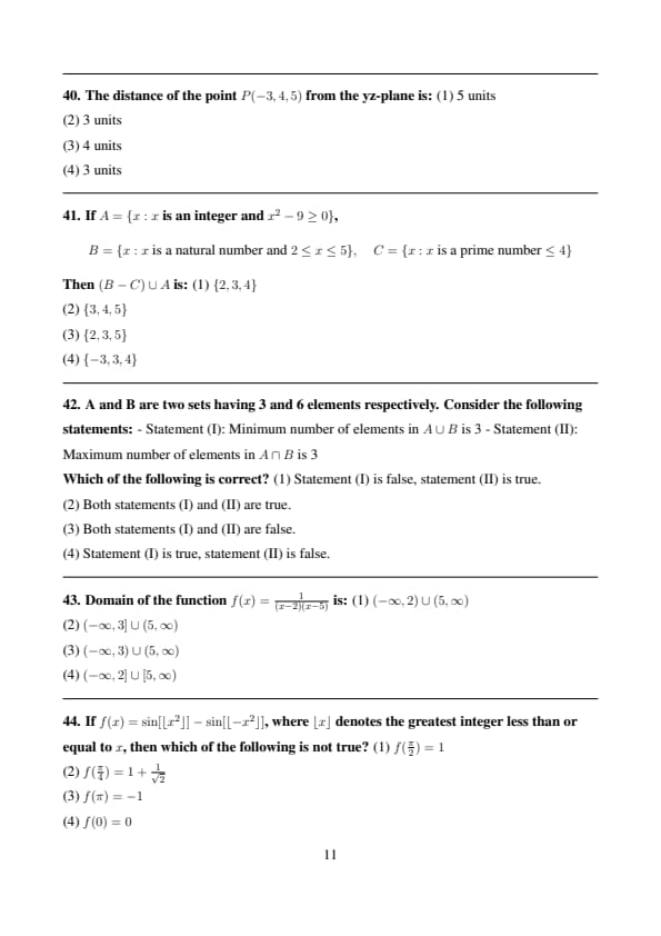 | Sets, Relations & Functions | Easy | Basic conceptual questions; rarely complex |