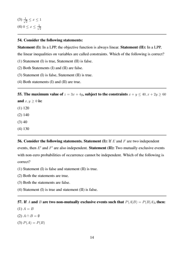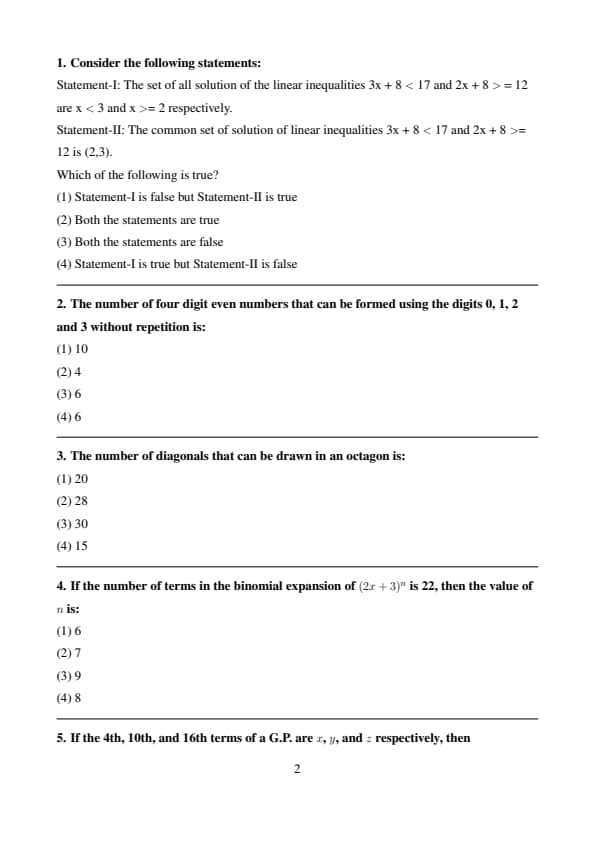 | Probability & Statistics | Easy to Moderate | Mostly formula-based; scoring if fundamentals are clear |