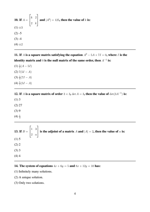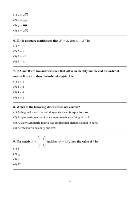 | Algebra | Moderate | Covers Quadratic Equations, Matrices, Determinants; requires practice |