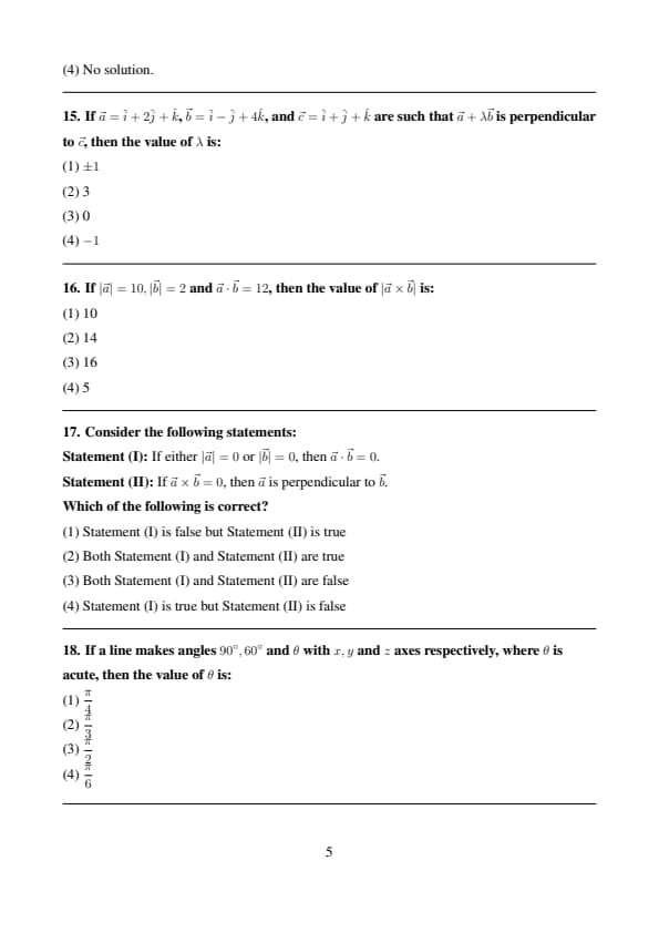 | Vectors and 3D Geometry | Moderate | Conceptual clarity is important as it often has tricky angle/position questions |