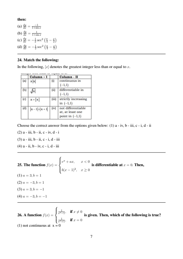 \frac{1}{e^x + 1}, & if x = 0 \end{cases} is given. Then, which of the following is true?