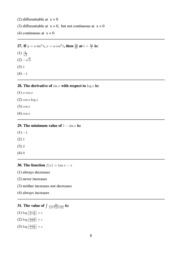 The derivative of \( \sin x \) with respect to \( \log x \) is: