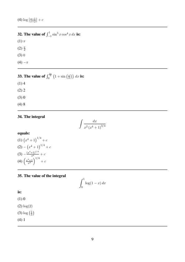 The value of \( \int_{-1}^1 \sin^5 x \cos^4 x \, dx \) is: