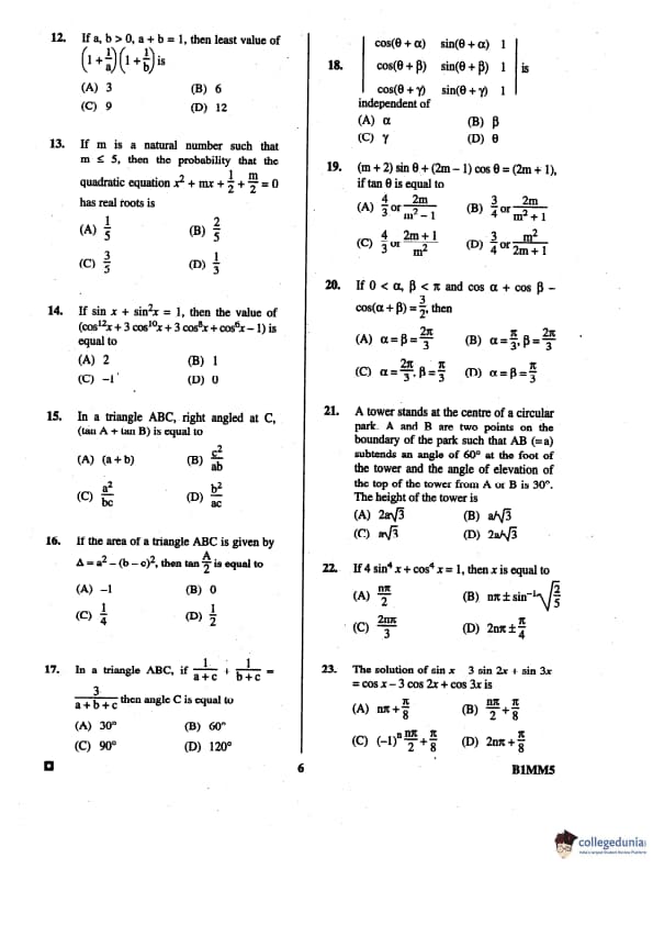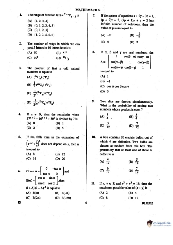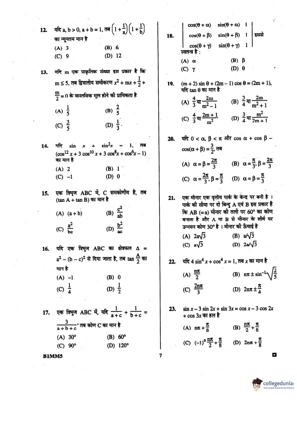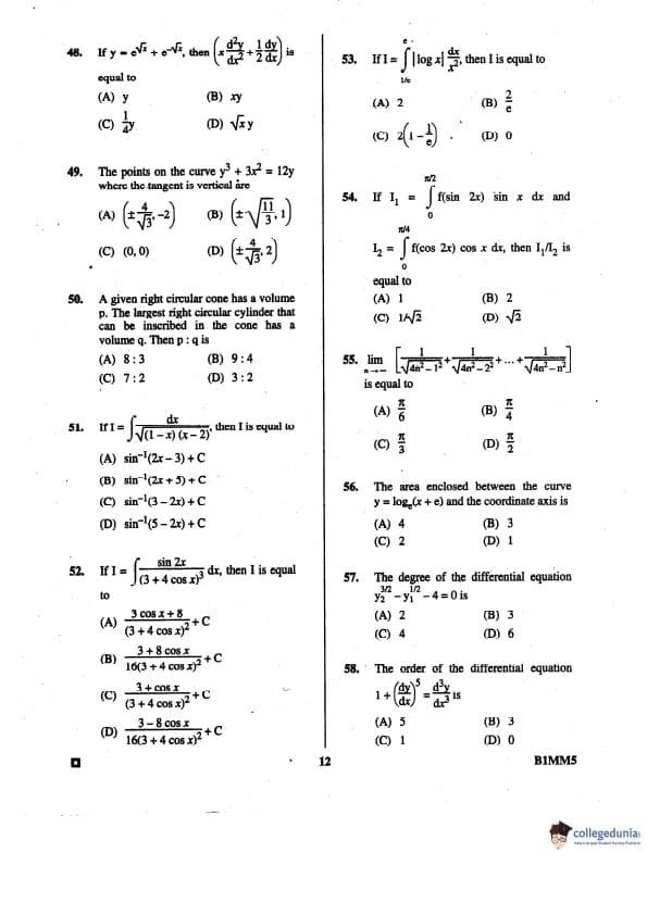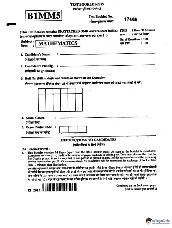 BIHAR ITICAT 2015 Mathematics Question paper with answer key pdf conducted on April 27, 2015 is available for download. The exam was successfully organized by Bihar Combined Entrance Competitive Examination Board (BCECEB). The question paper comprised a total of 100 questions.