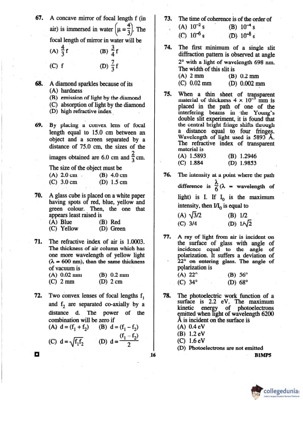 | BIHAR ITICAT 2015 Physics Question Paper PDF | BIHAR ITICAT 2015 Physics Answer Key PDF |