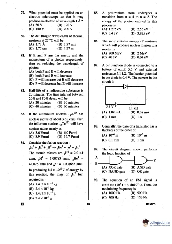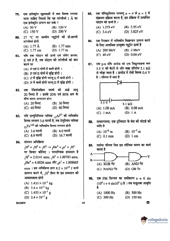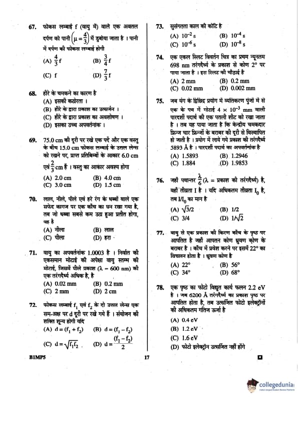 BIHAR ITICAT 2015 Physics Question paper with answer key pdf conducted on April 27, 2015 is available for download. The exam was successfully organized by Bihar Combined Entrance Competitive Examination Board (BCECEB). The question paper comprised a total of 100 questions.