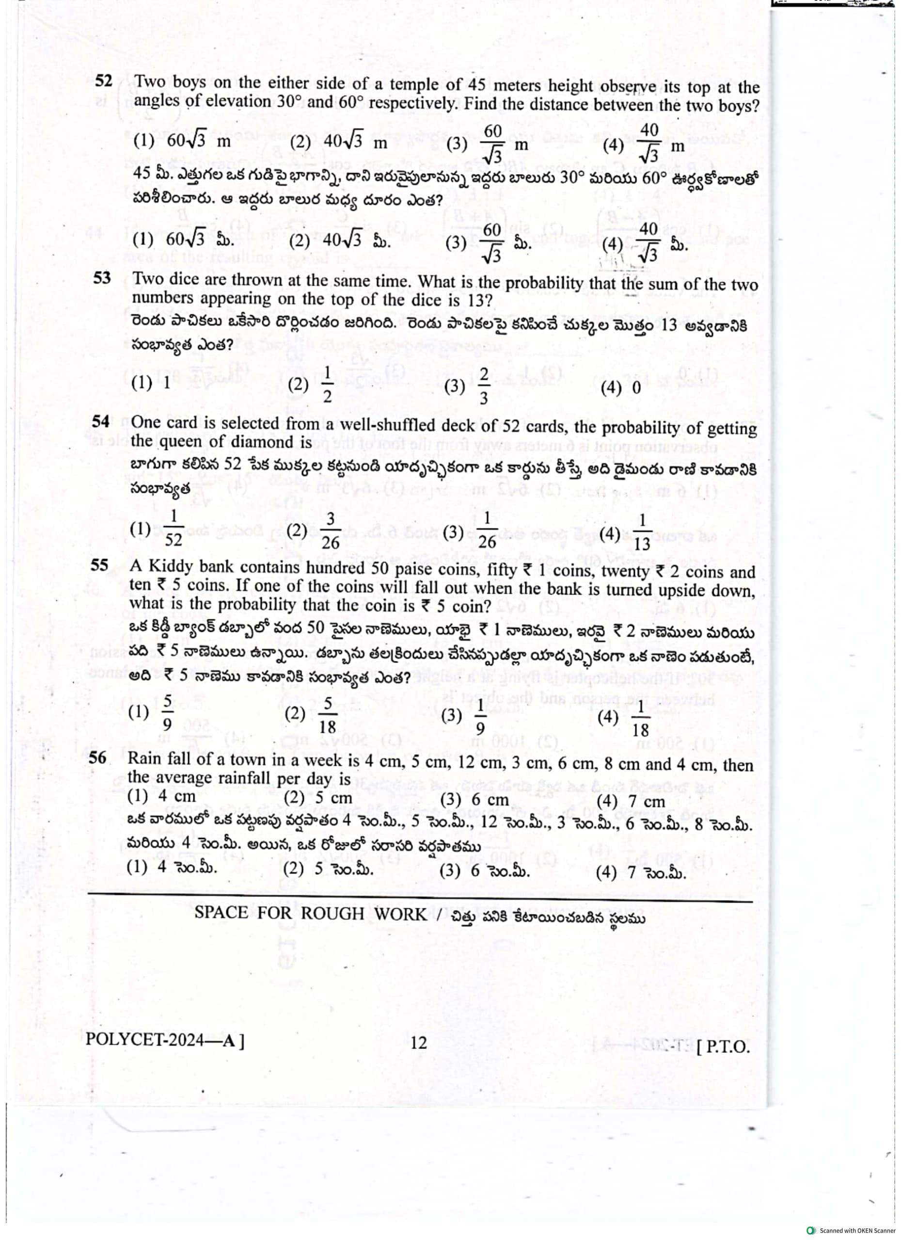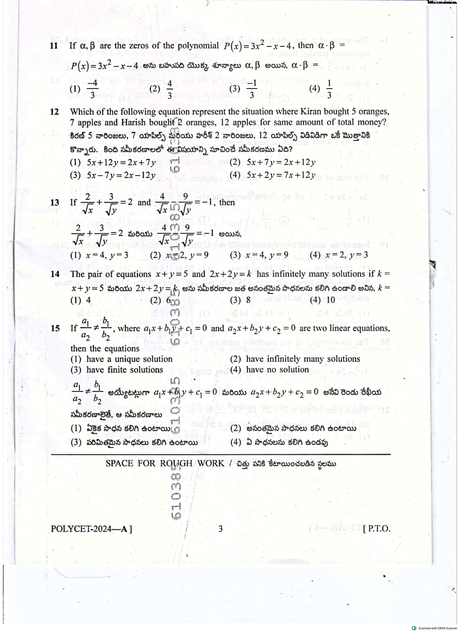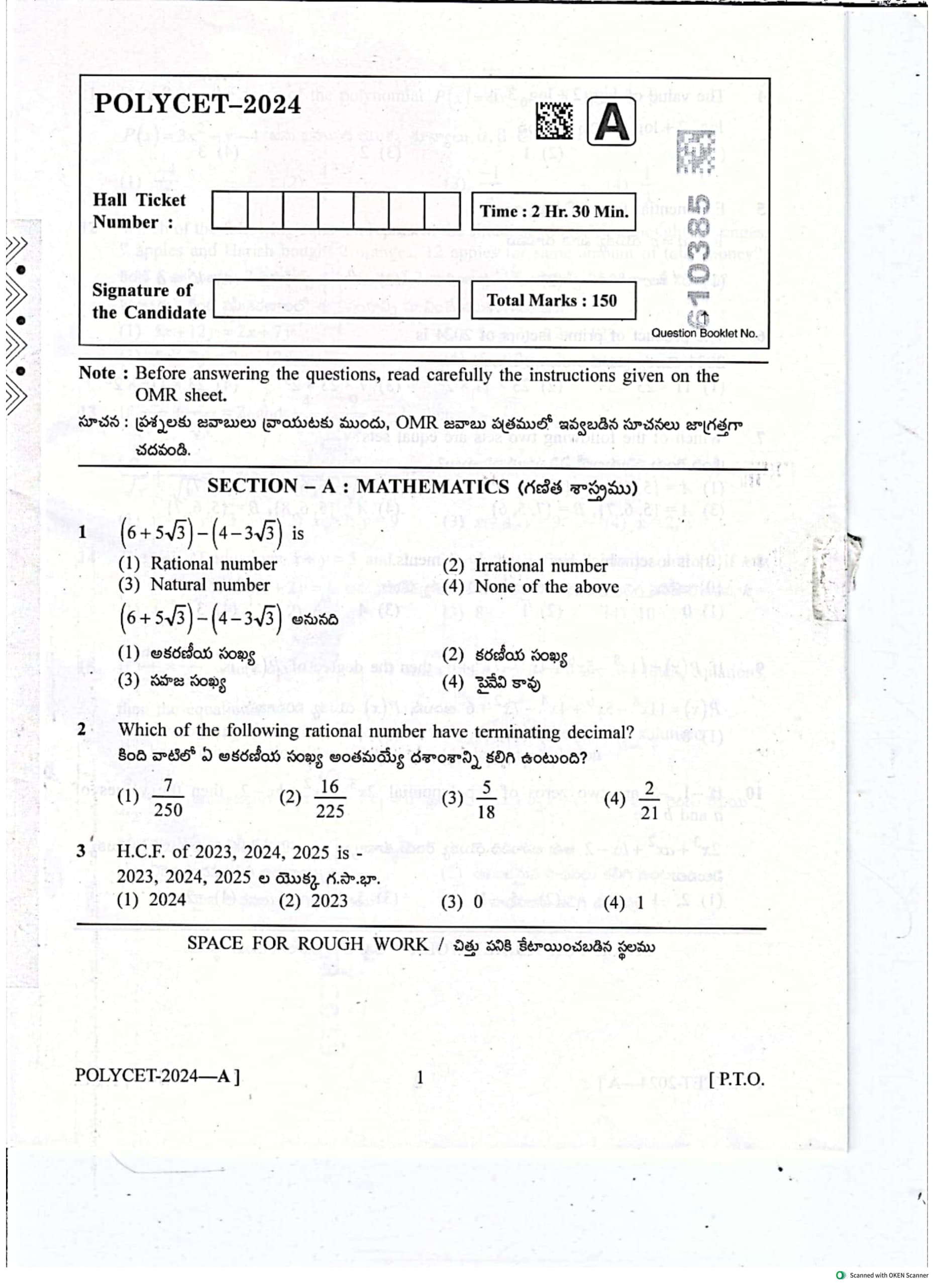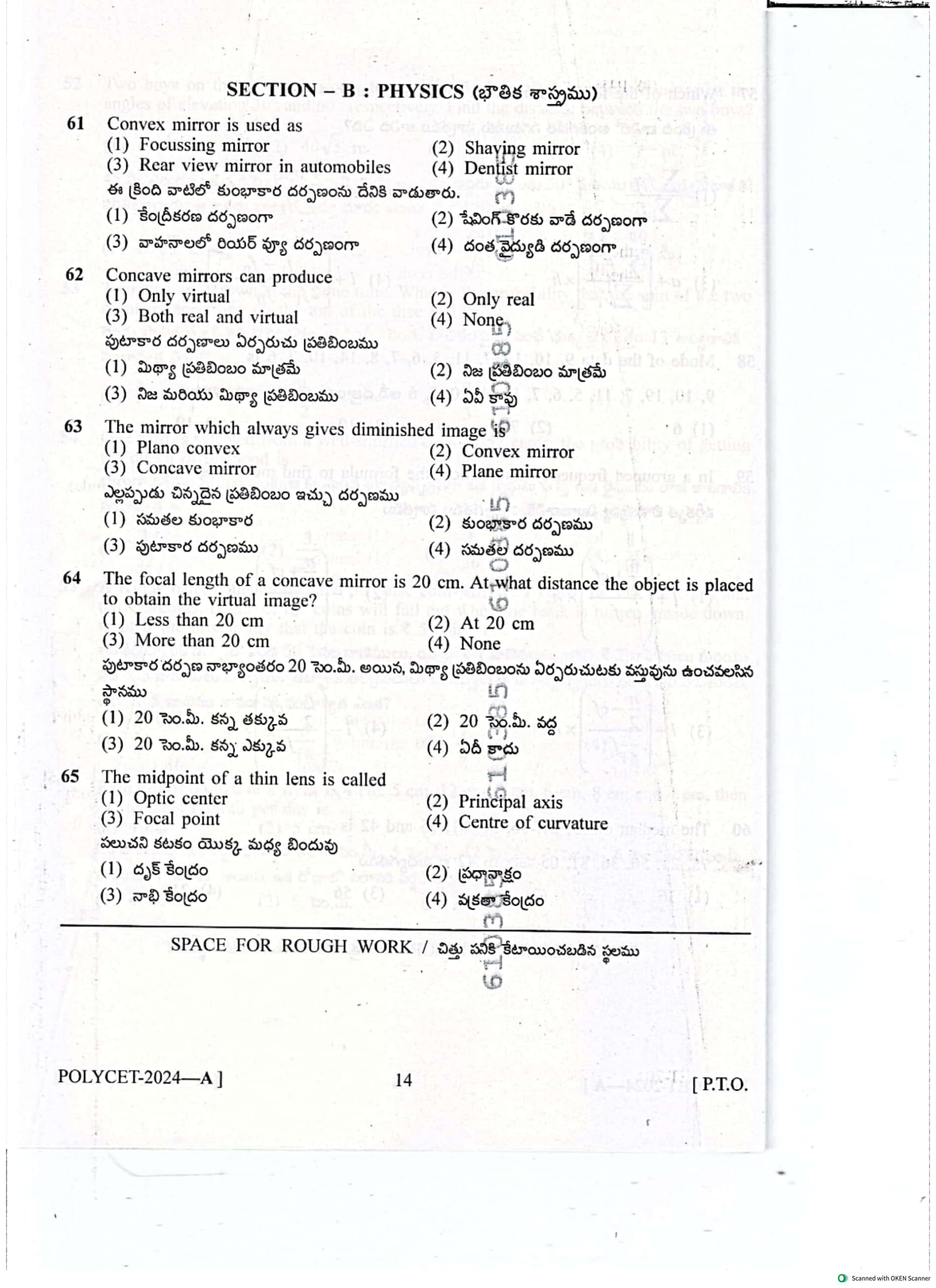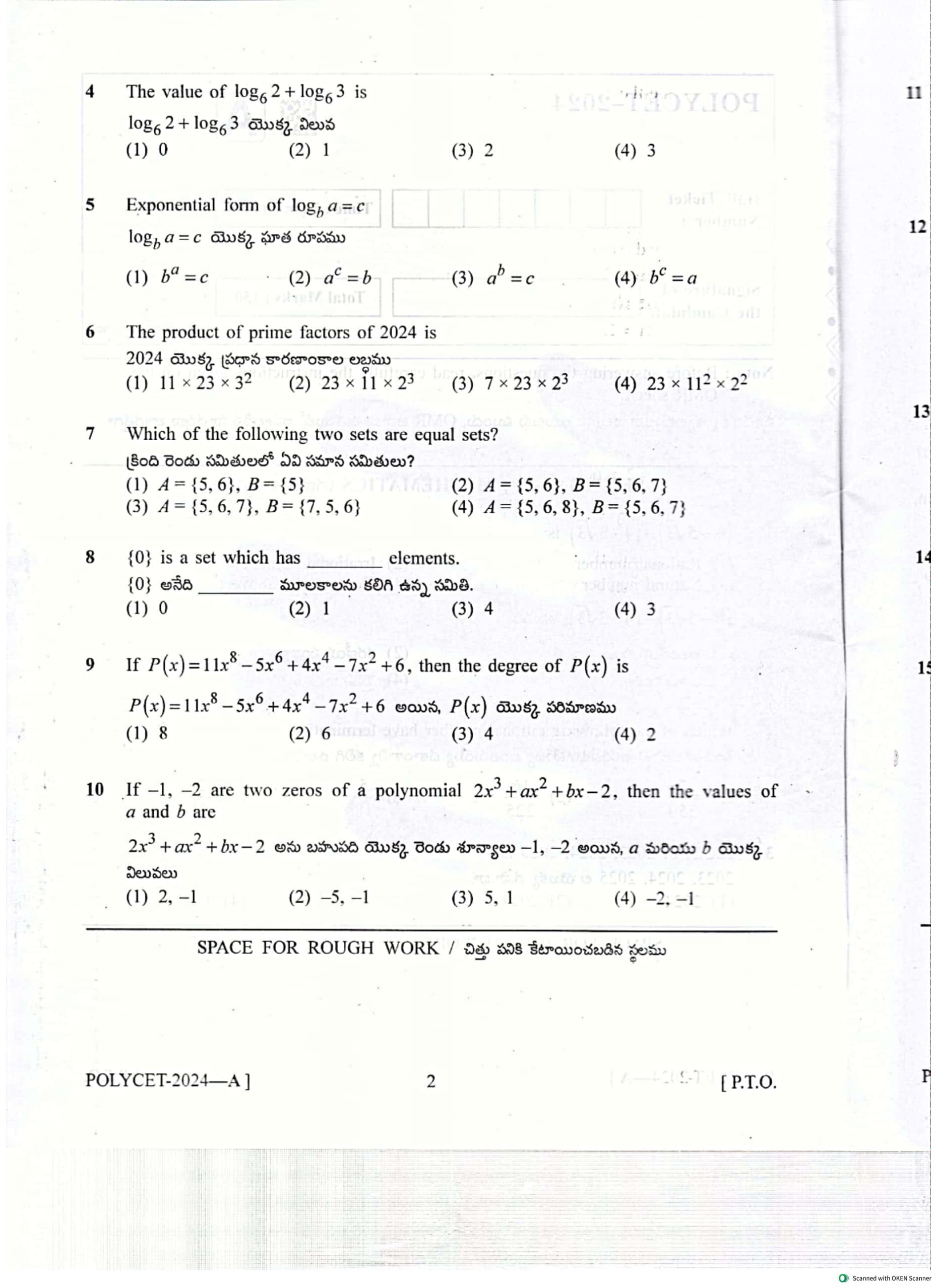 TS POLYCET 2024 Question Paper with Answer Key PDF Set A