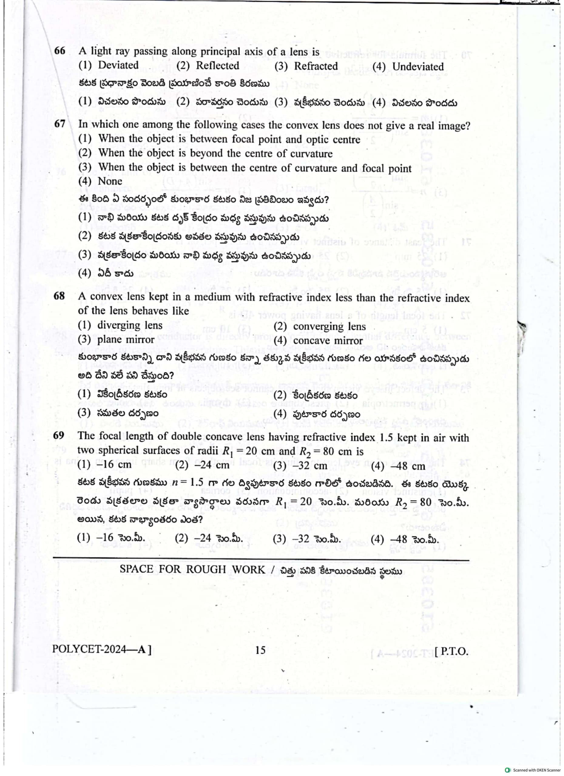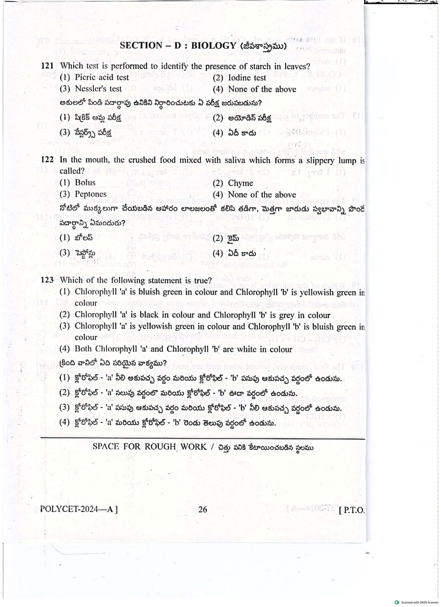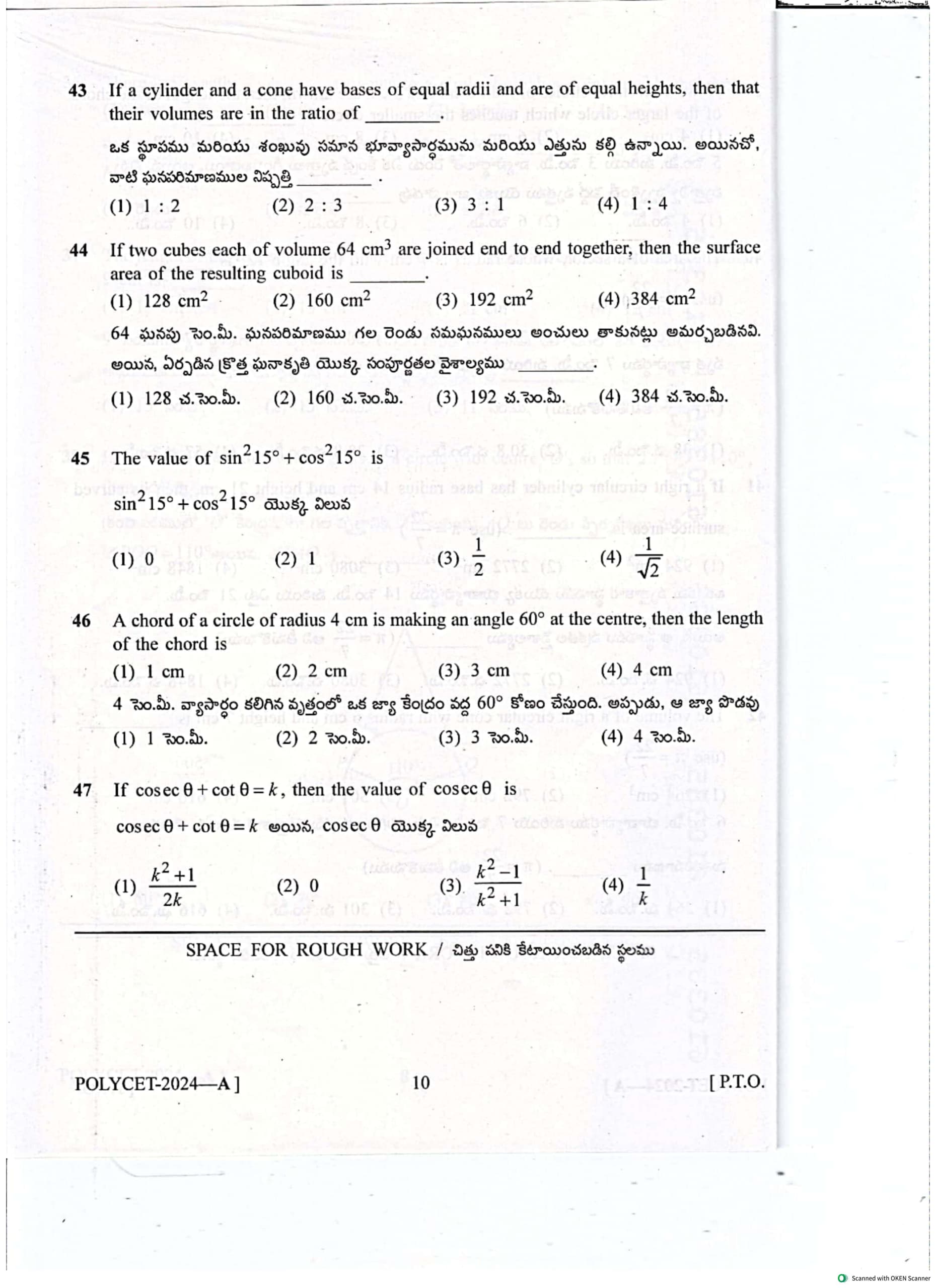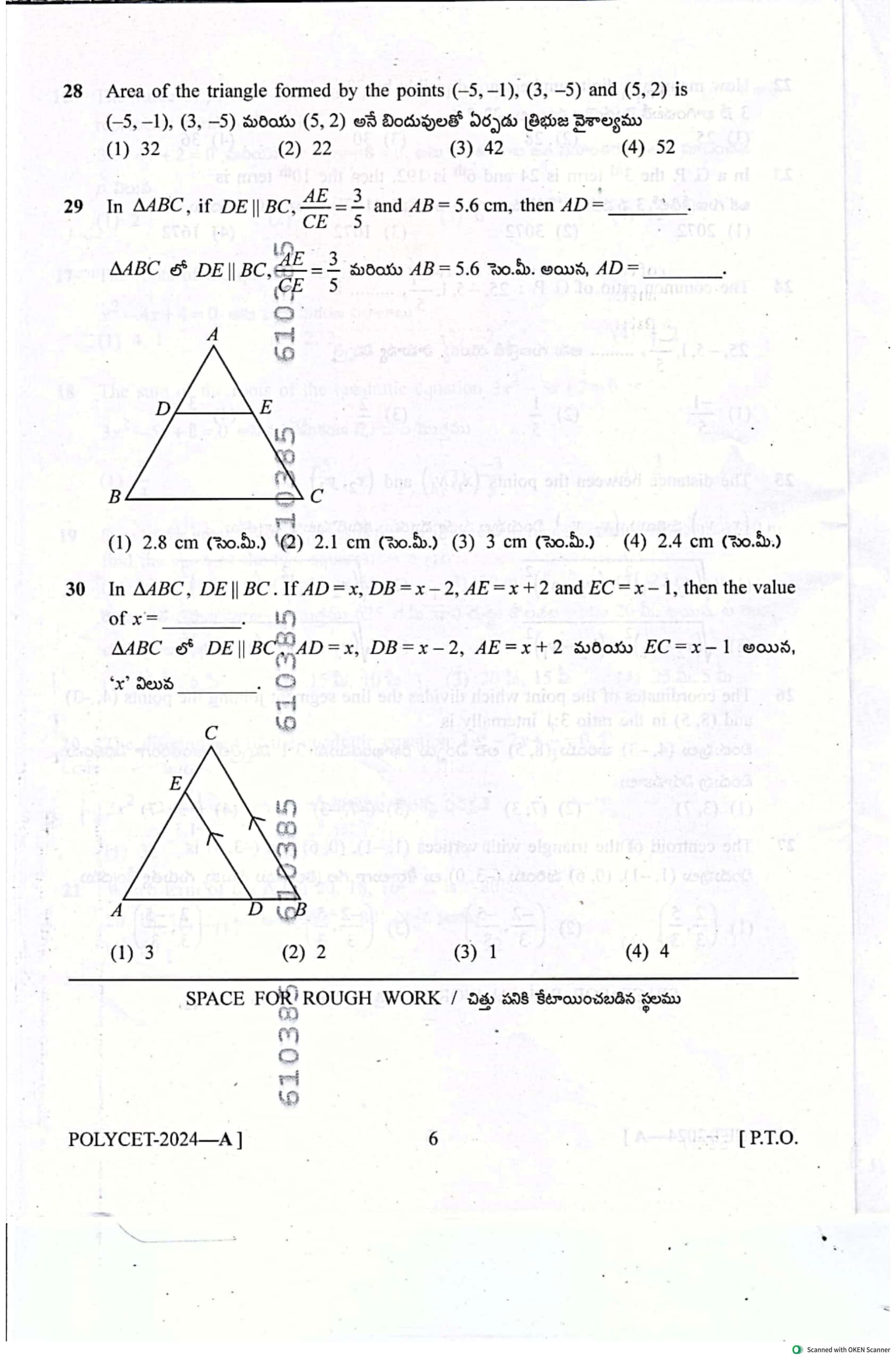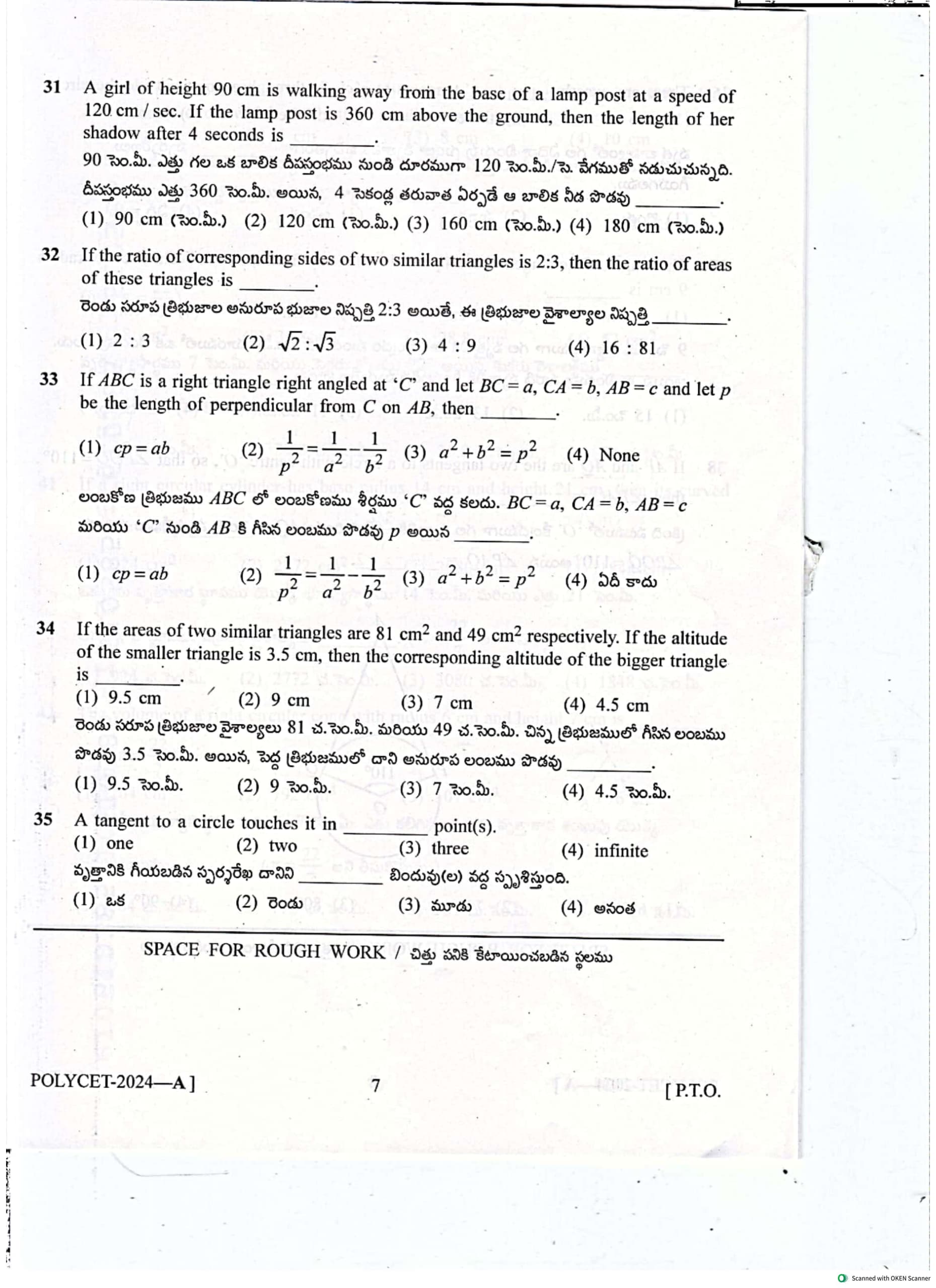 TS POLYCET 2024 Question Paper with Answer Key PDF Set A
