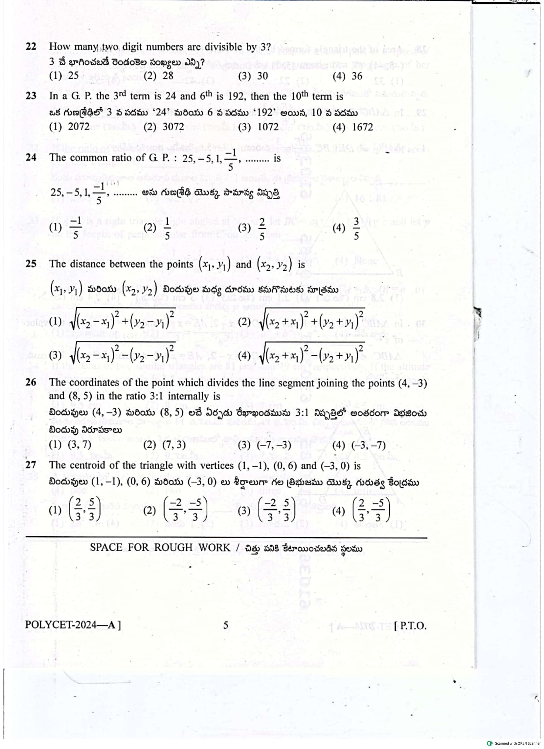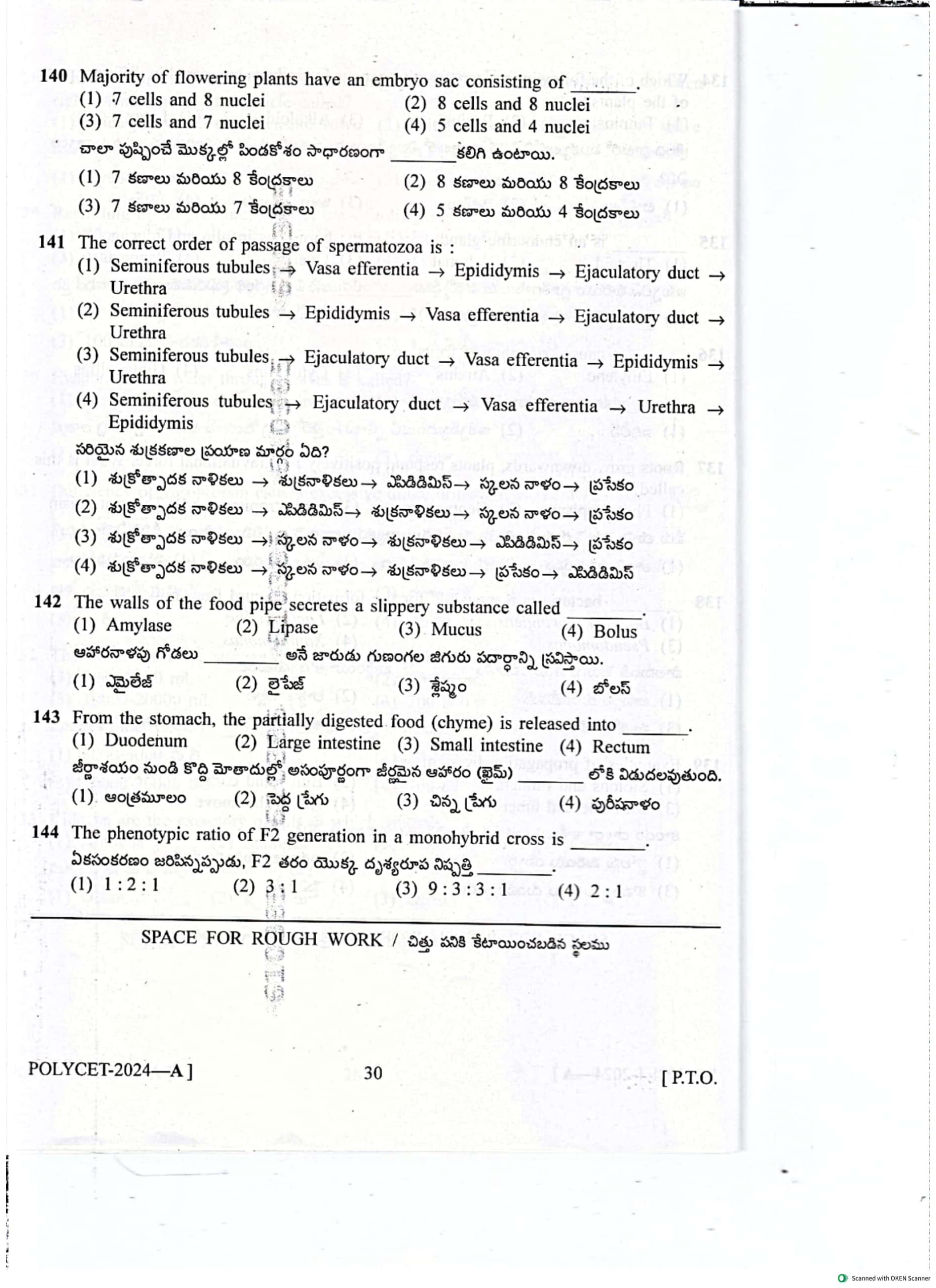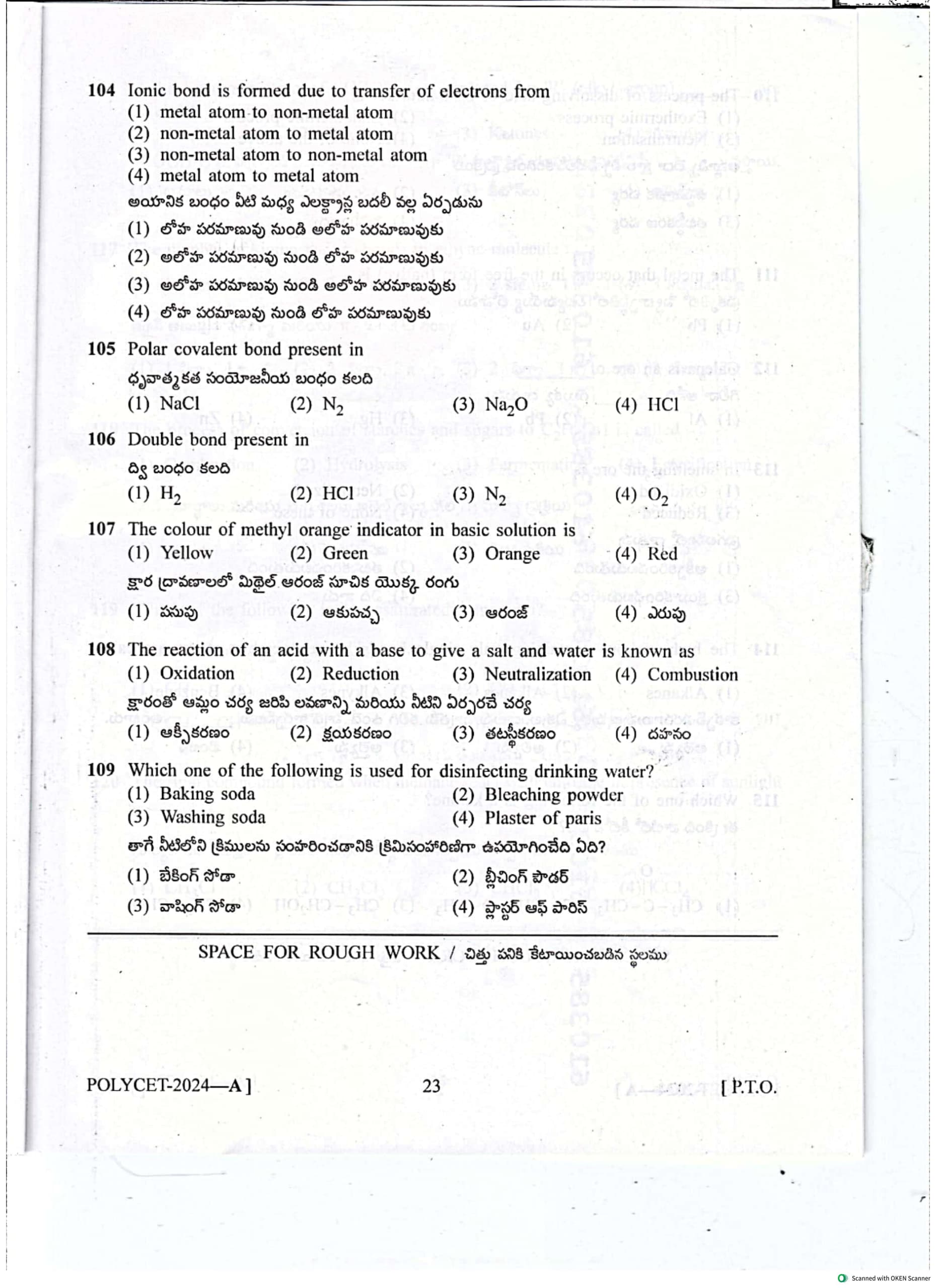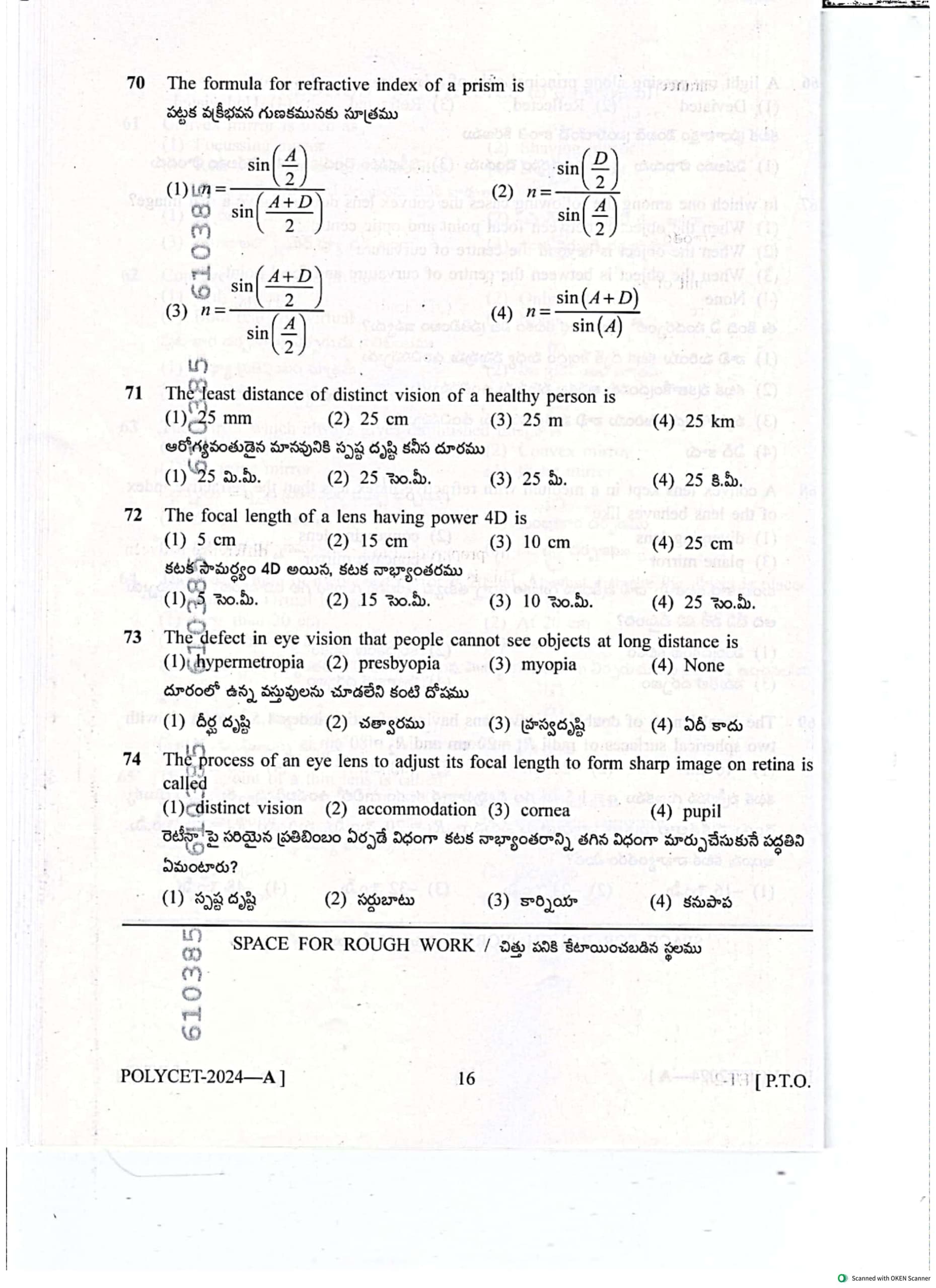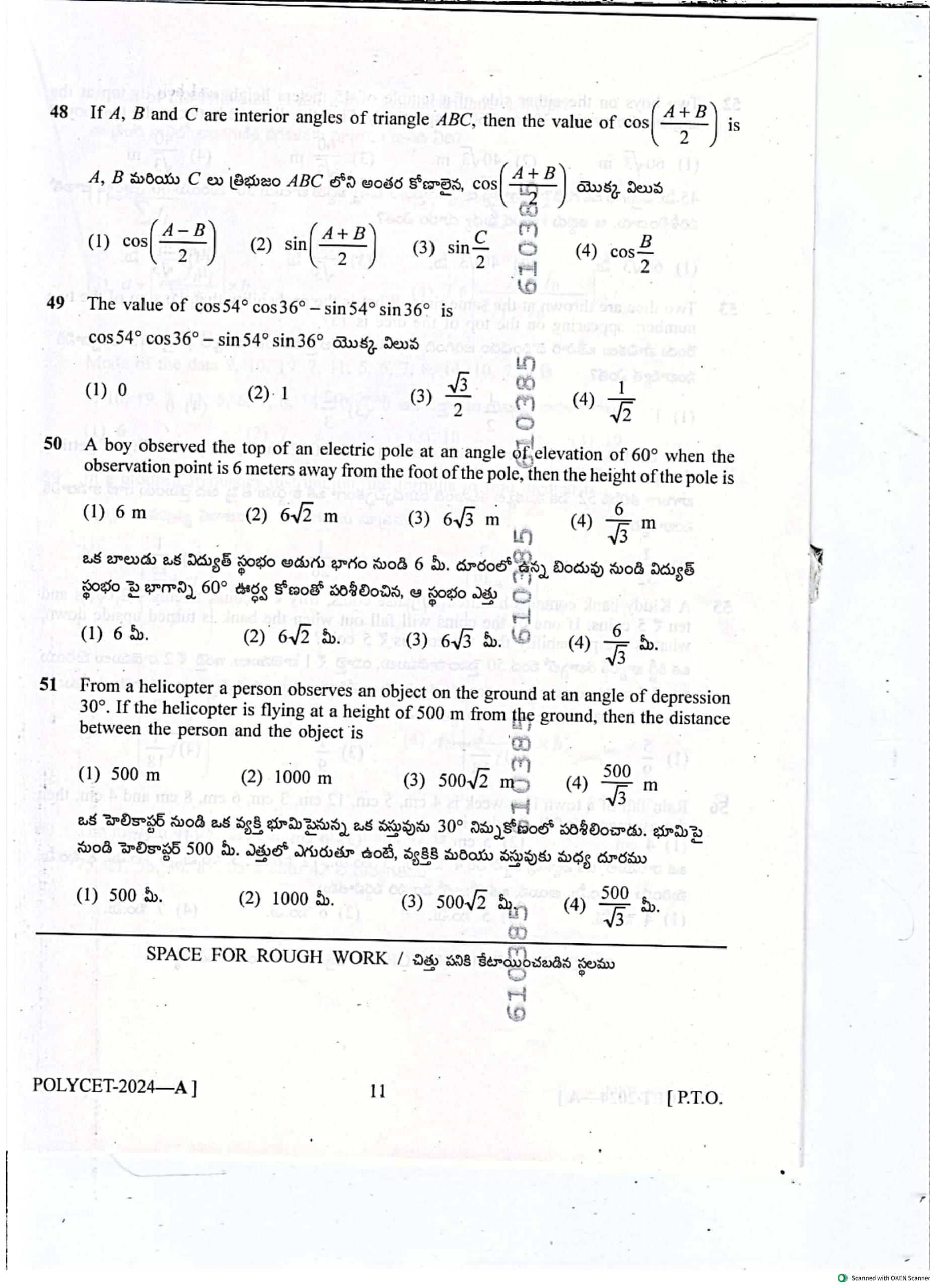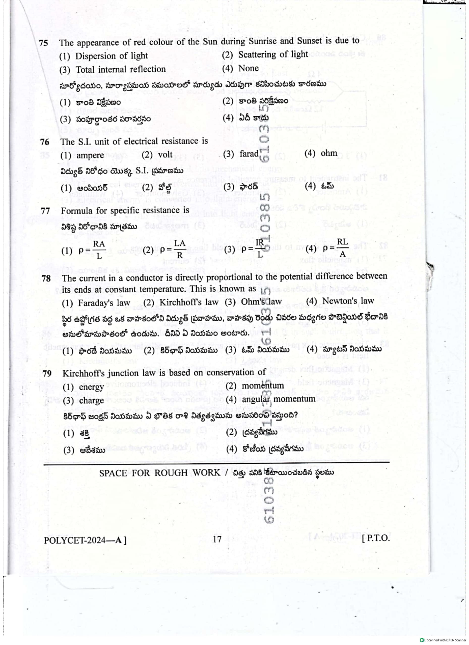 TS POLYCET 2024 Question Paper with Answer Key PDF Set A