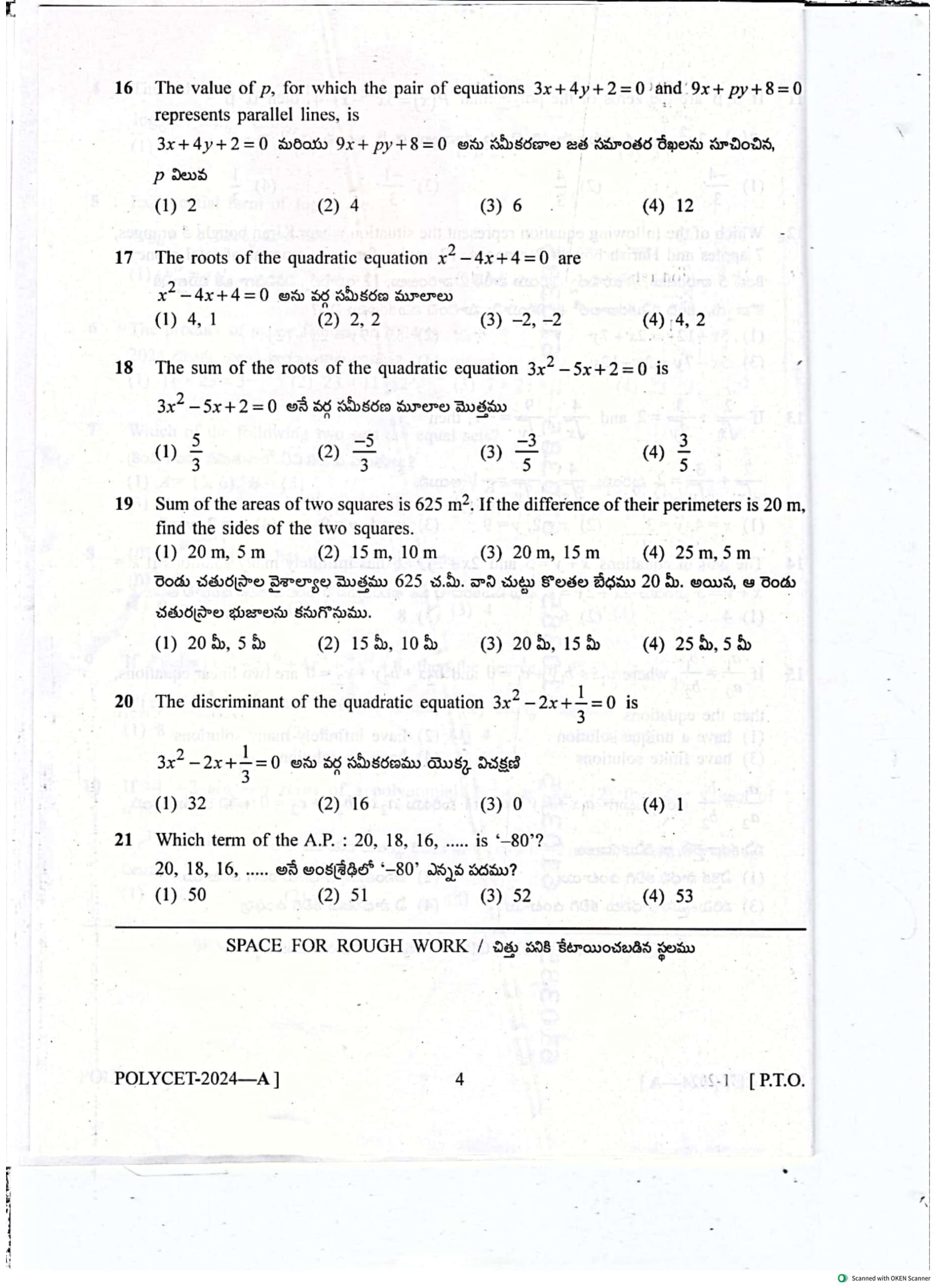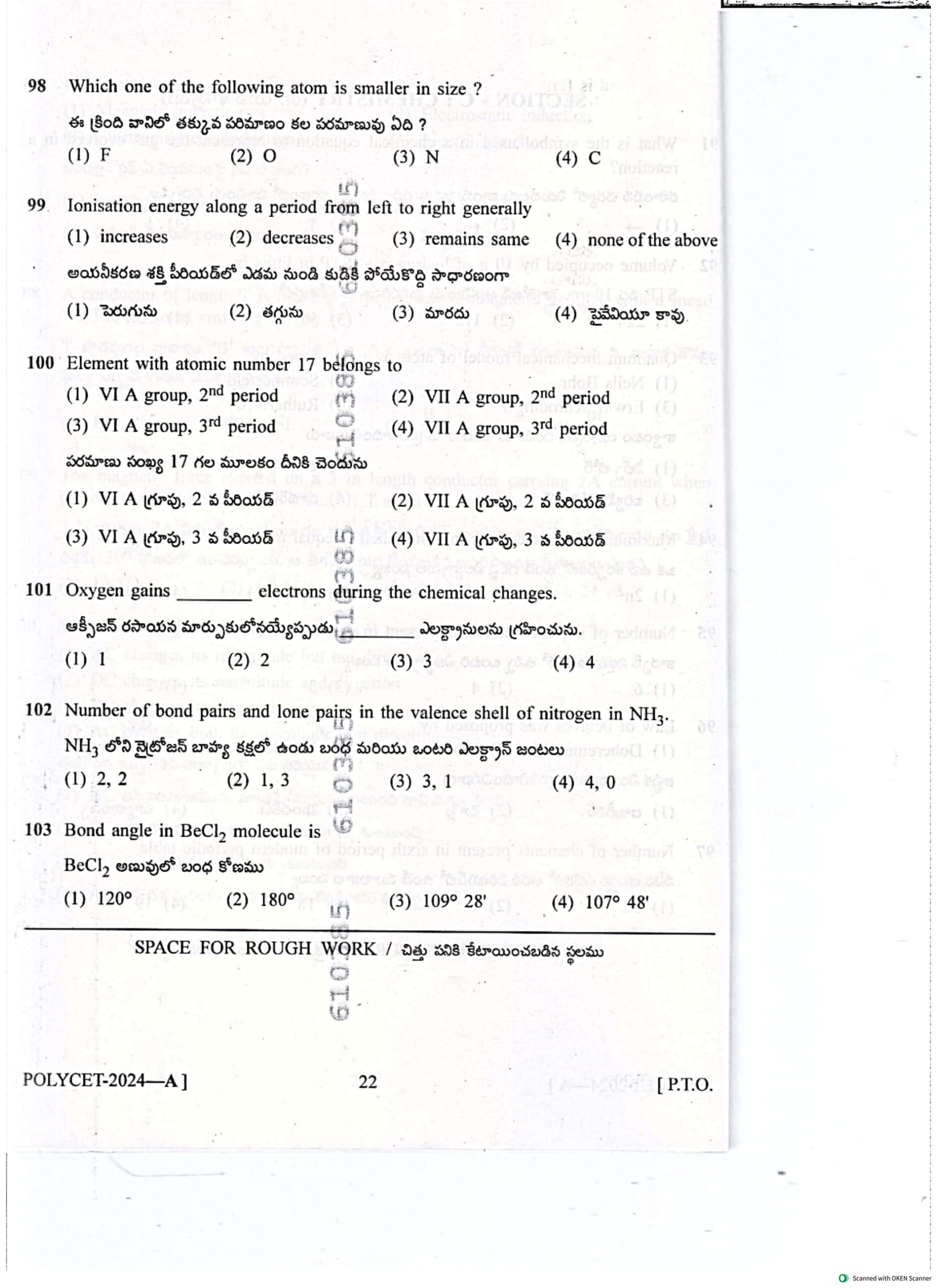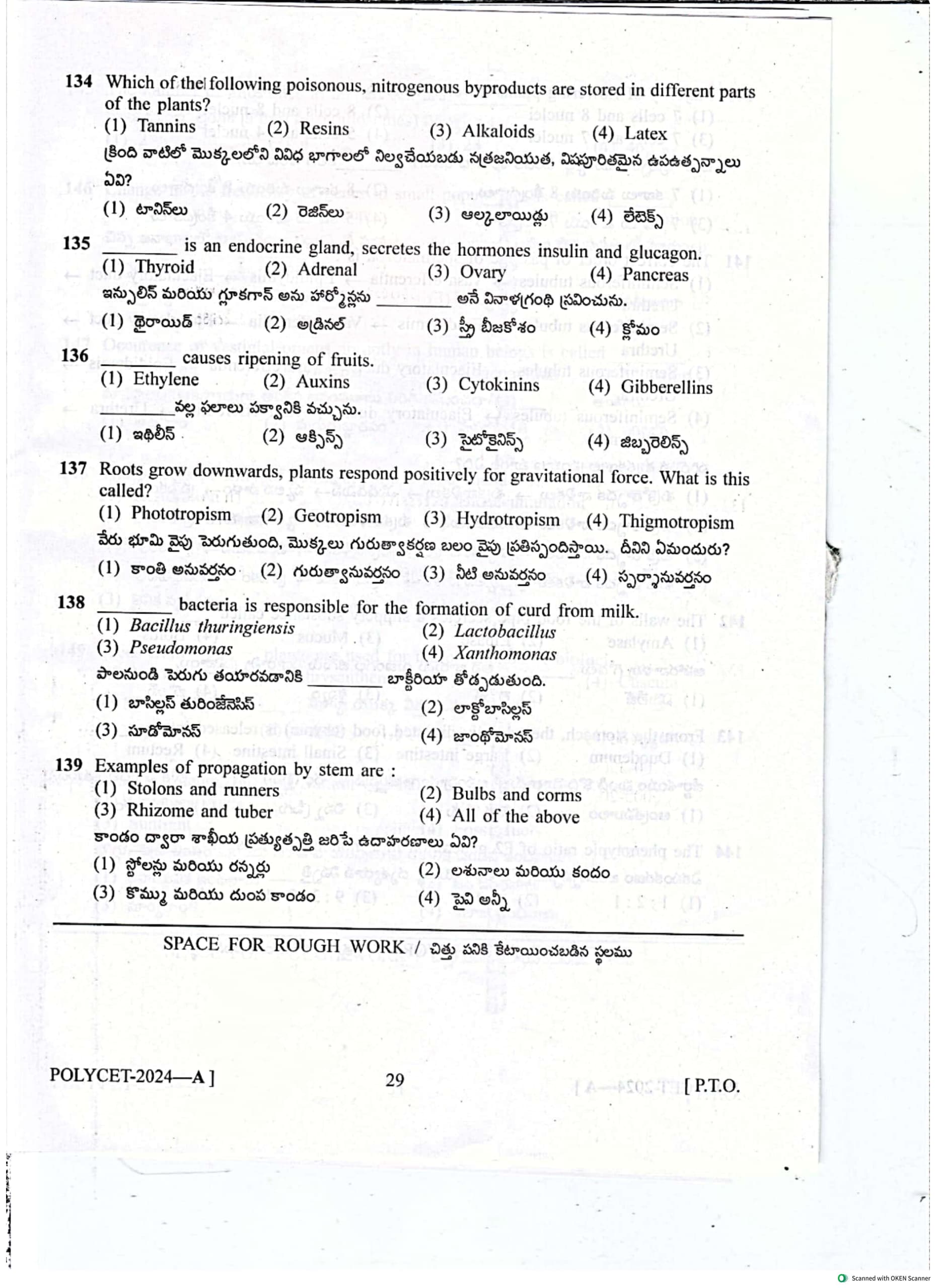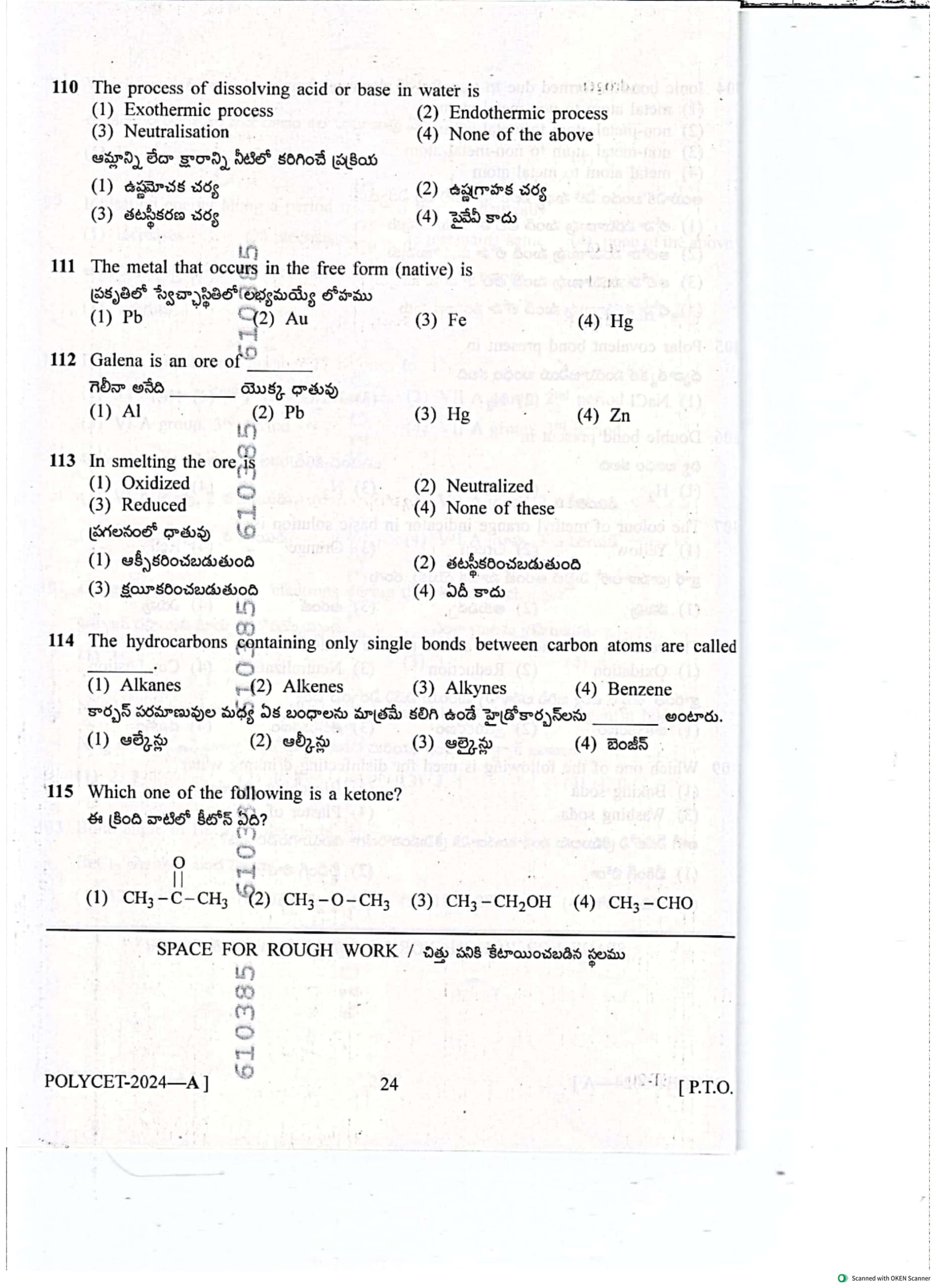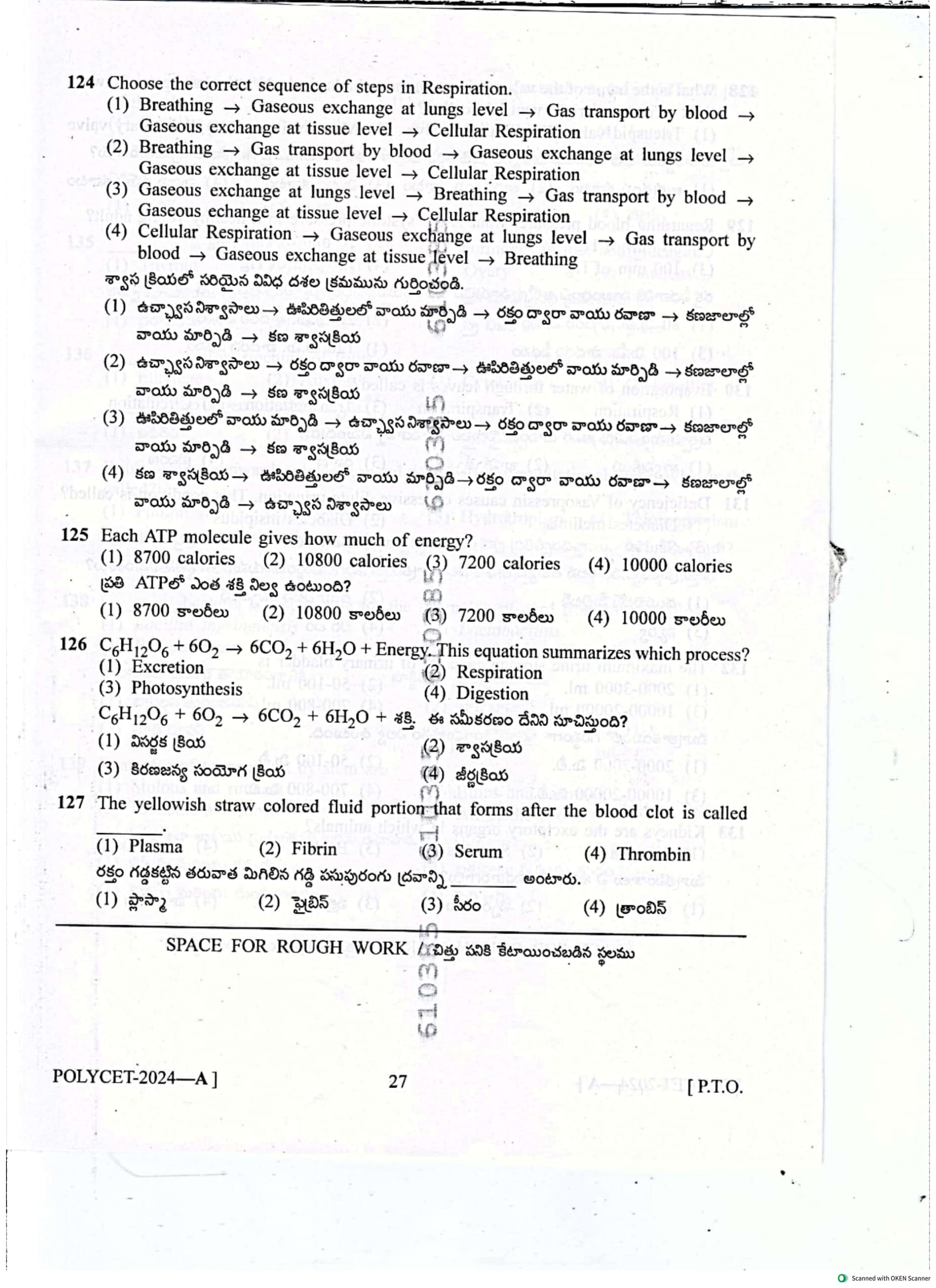 TS POLYCET 2024 Question Paper with Answer Key PDF Set A
