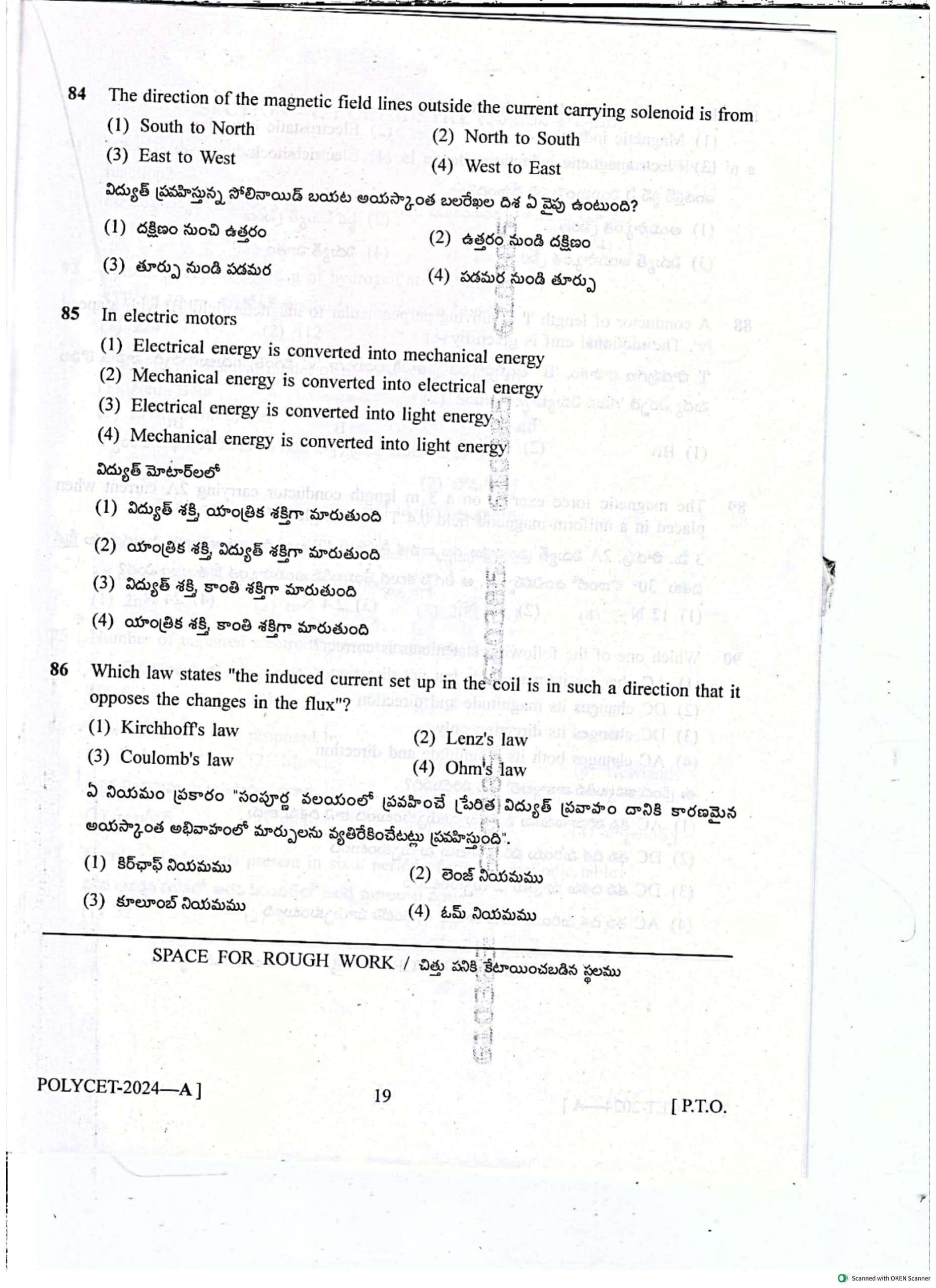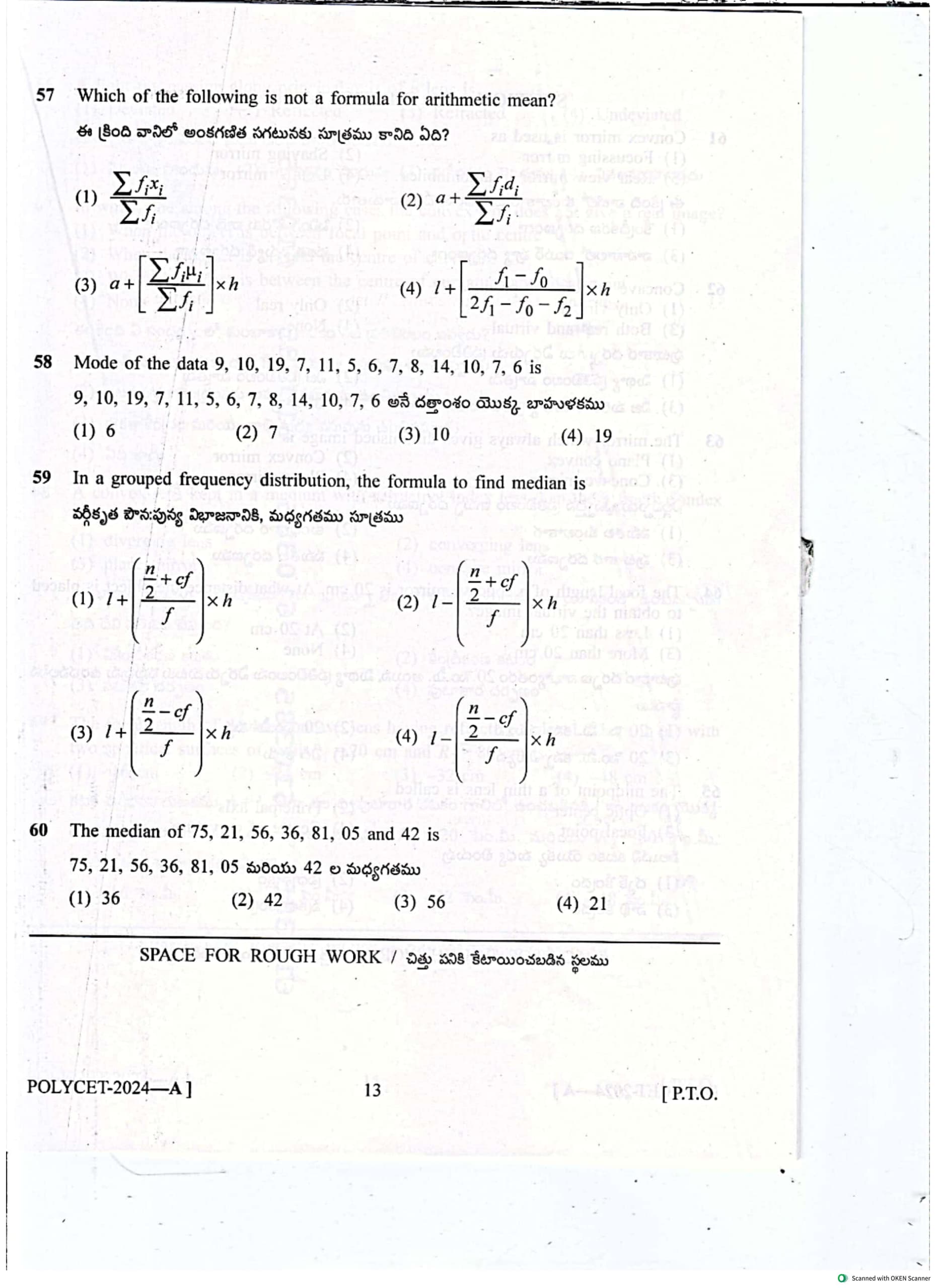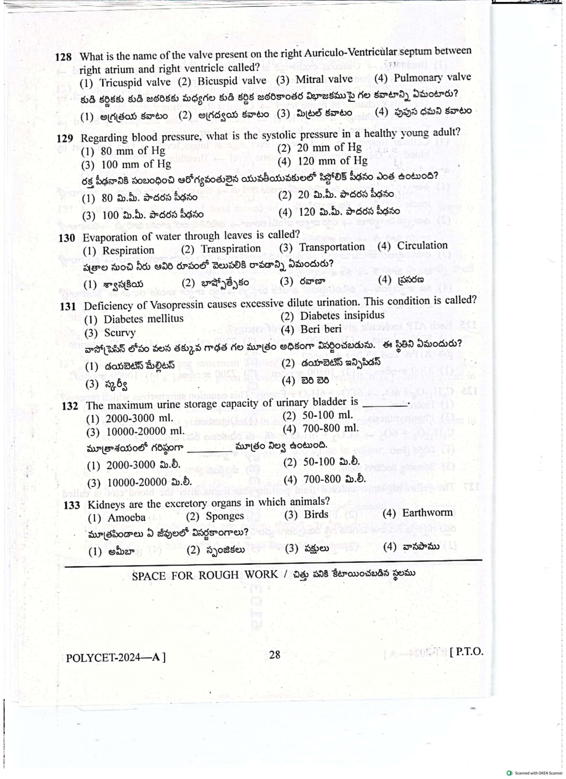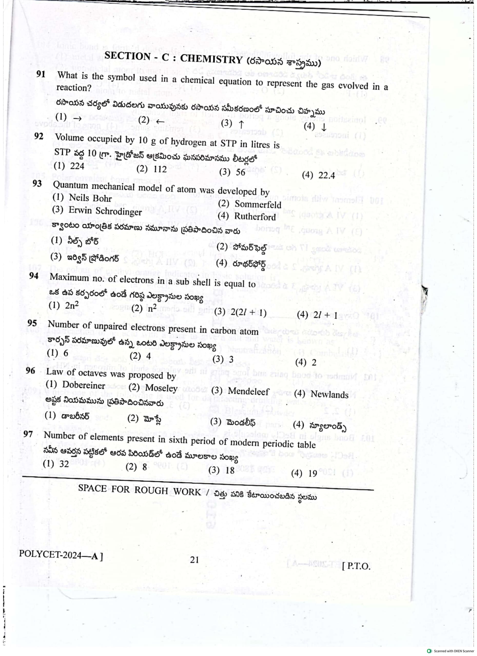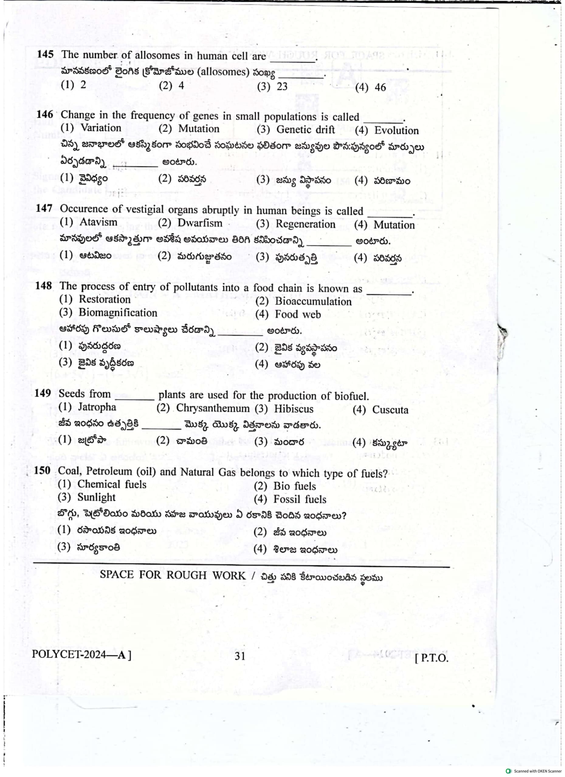 TS POLYCET 2024 Question Paper with Answer Key PDF Set A