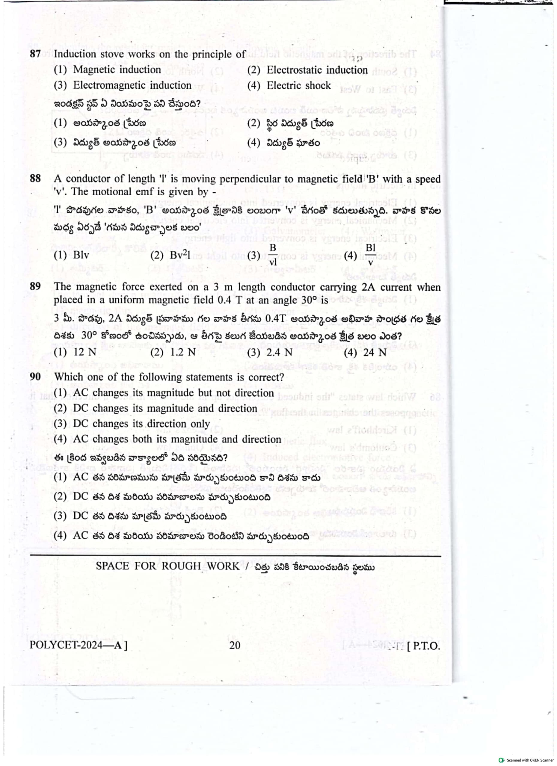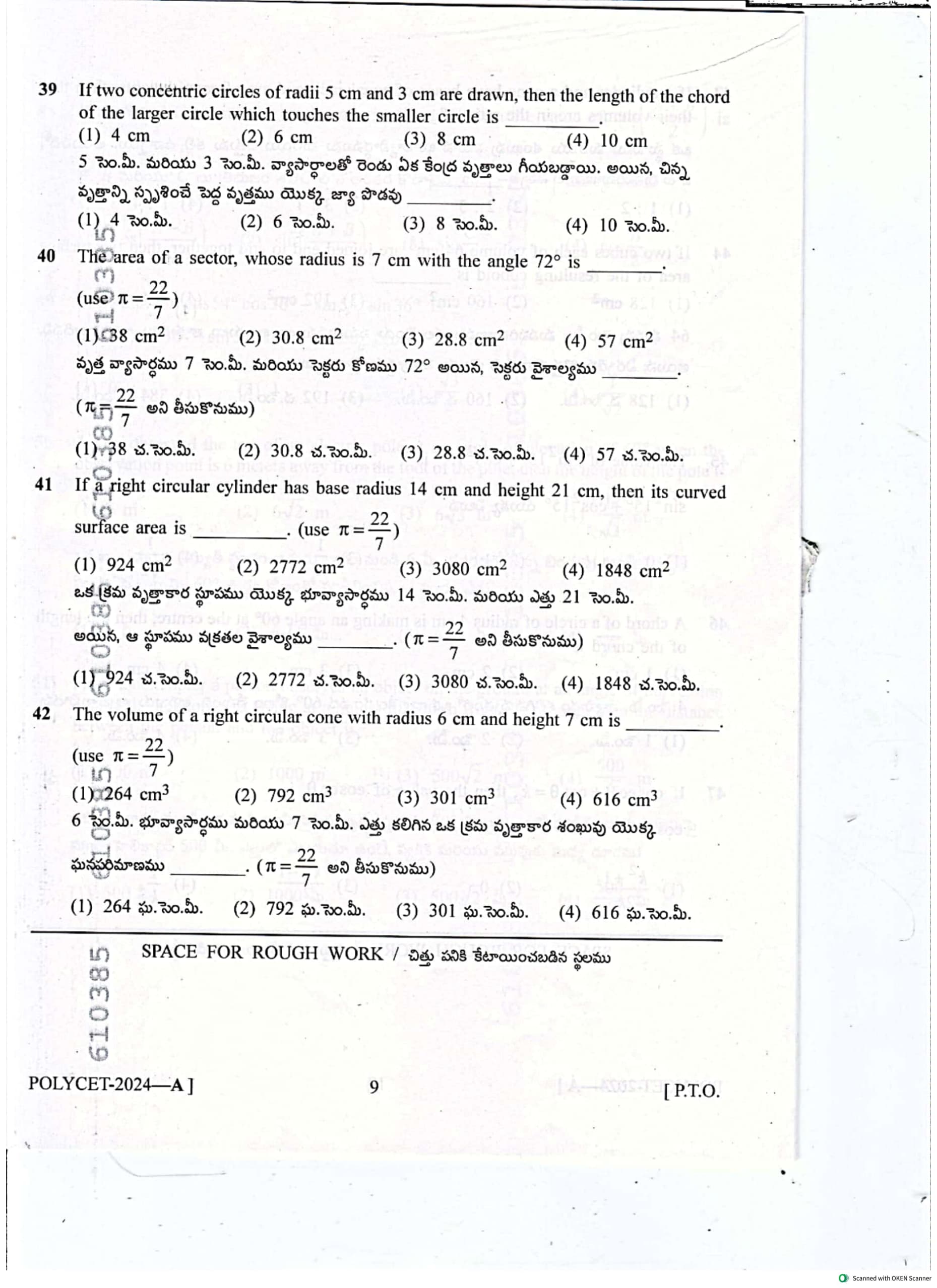 | TS POLYCET 2024 Question Paper with Answer Key | Check Solution |