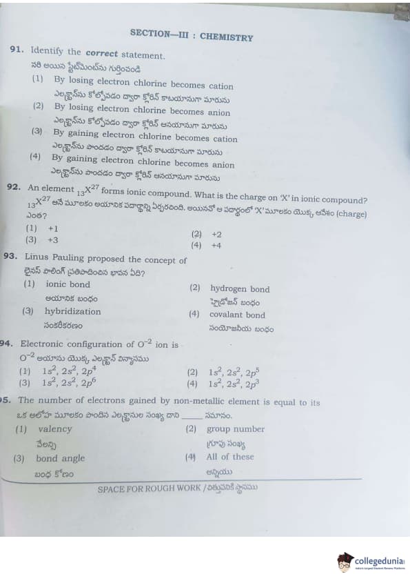 Chlorine gains an electron to become chloride ion (\( Cl^- \)), not a cation. Quick Tip: Anions are formed when atoms gain electrons, and cations are formed when atoms lose electrons.