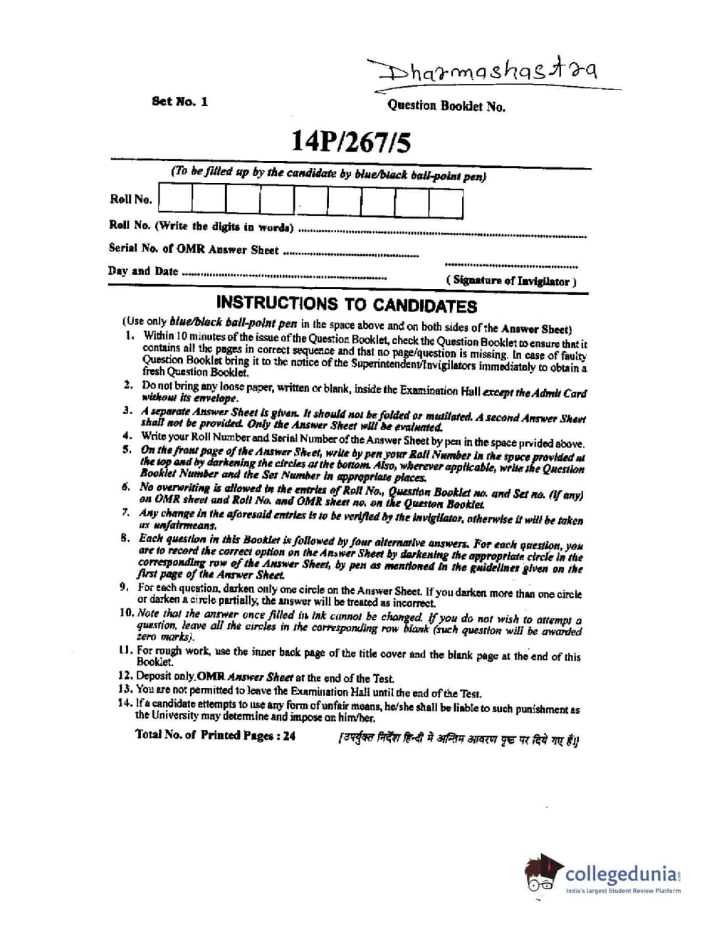 | BHU PET 2014 Dharmashastra Question Paper PDF | BHU PET 2014 Dharmashastra Answer Key PDF |