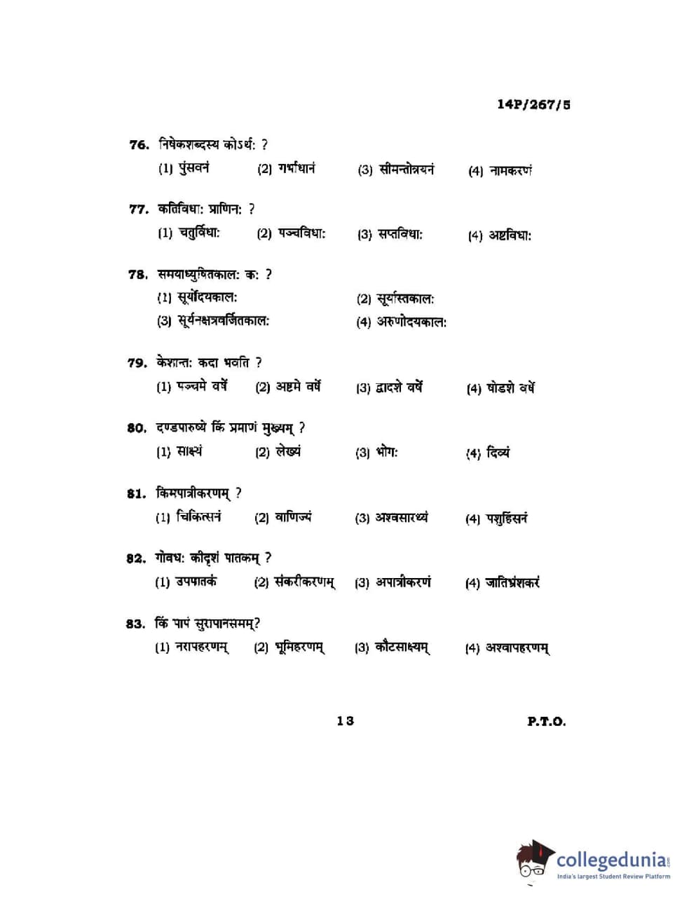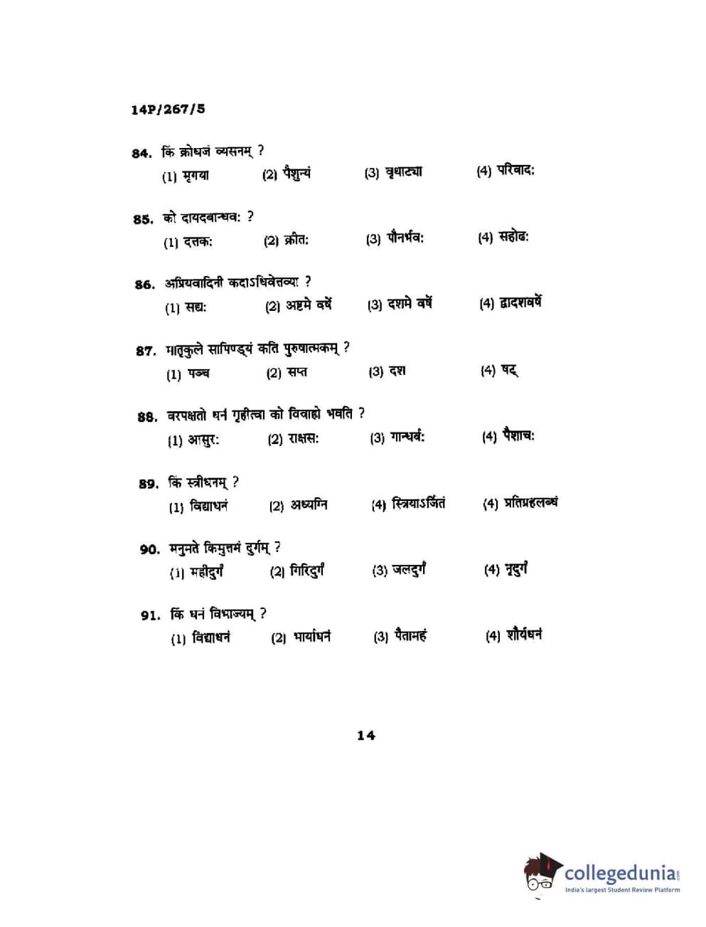 BHU PET 2014 Dharmashastra Question Paper with Answer Key PDFs