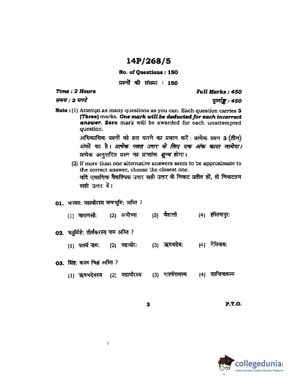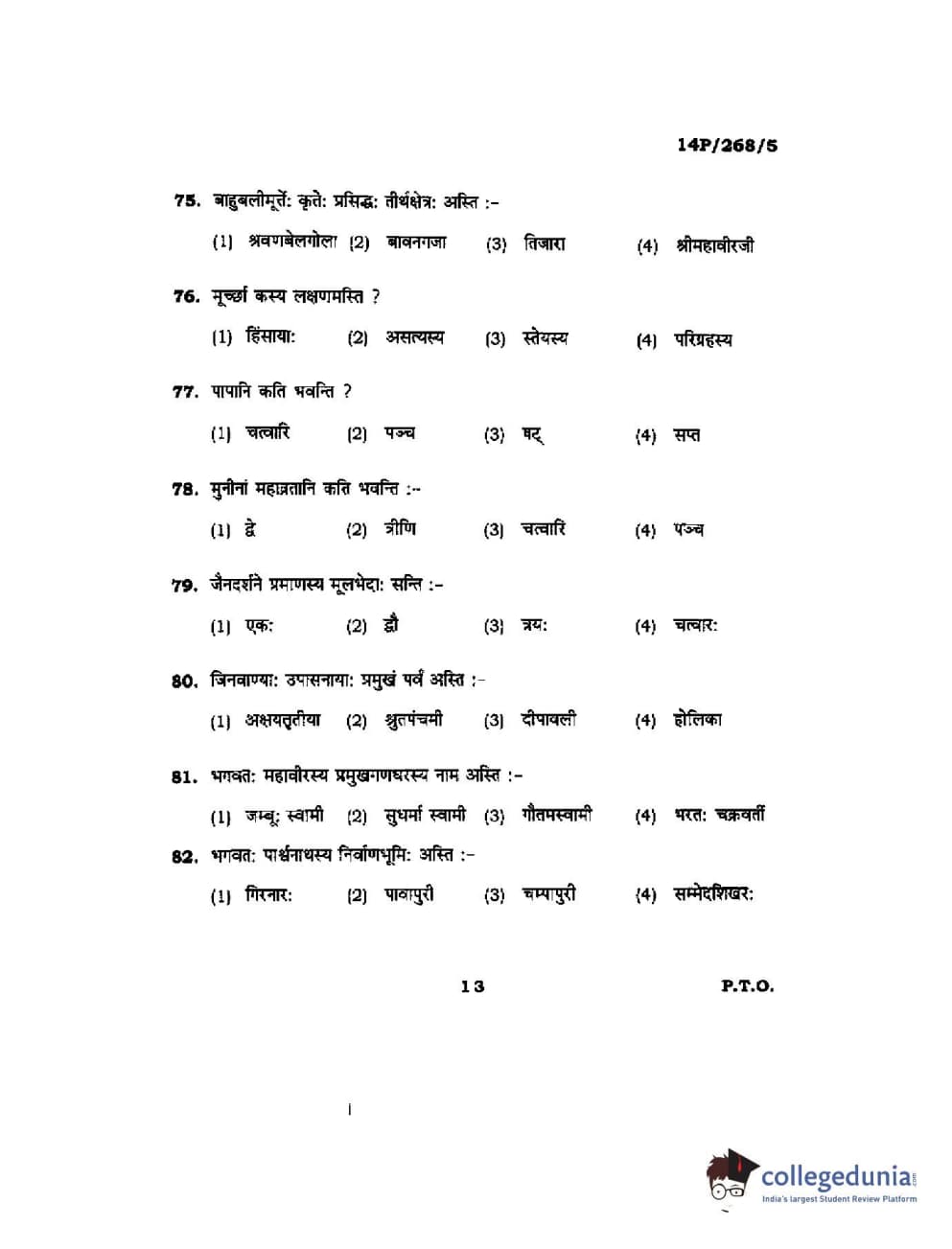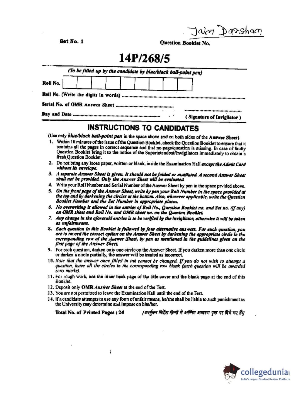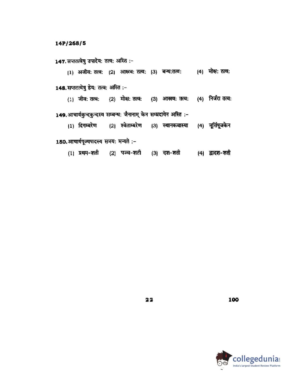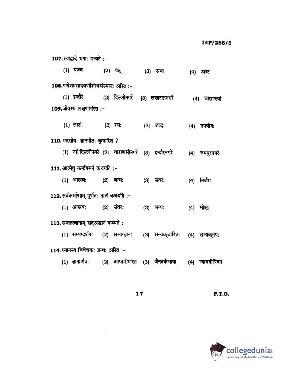 BHU PET 2014 Jain Darshan Question paper with answer key pdf is available for download. The exam was successfully organized by Banaras Hindu University (BHU). The question paper comprised a total of 150 questions.