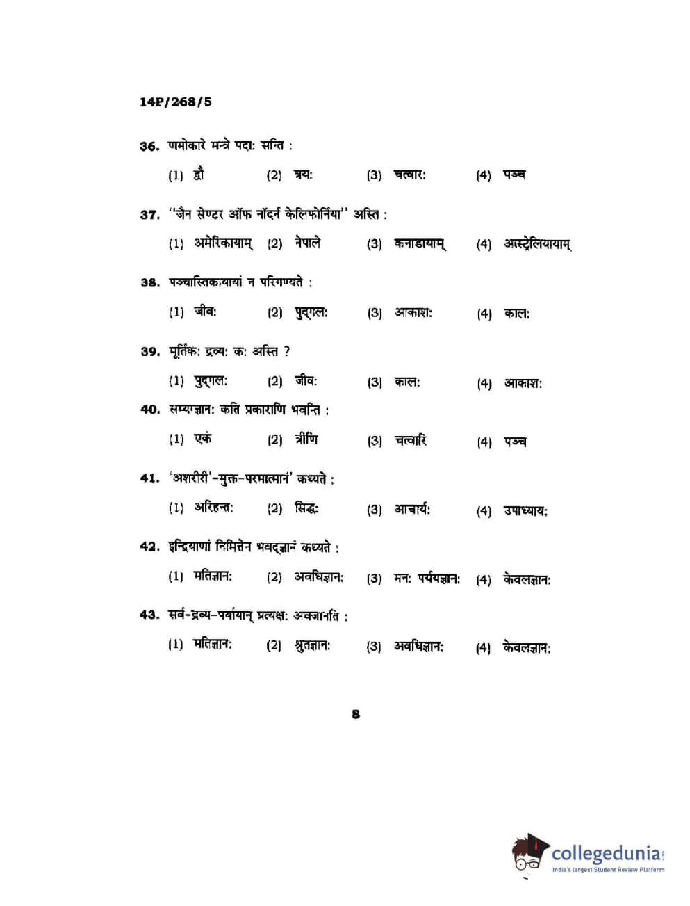 BHU PET 2014 Jain Darshan Question Paper with Answer Key PDFs