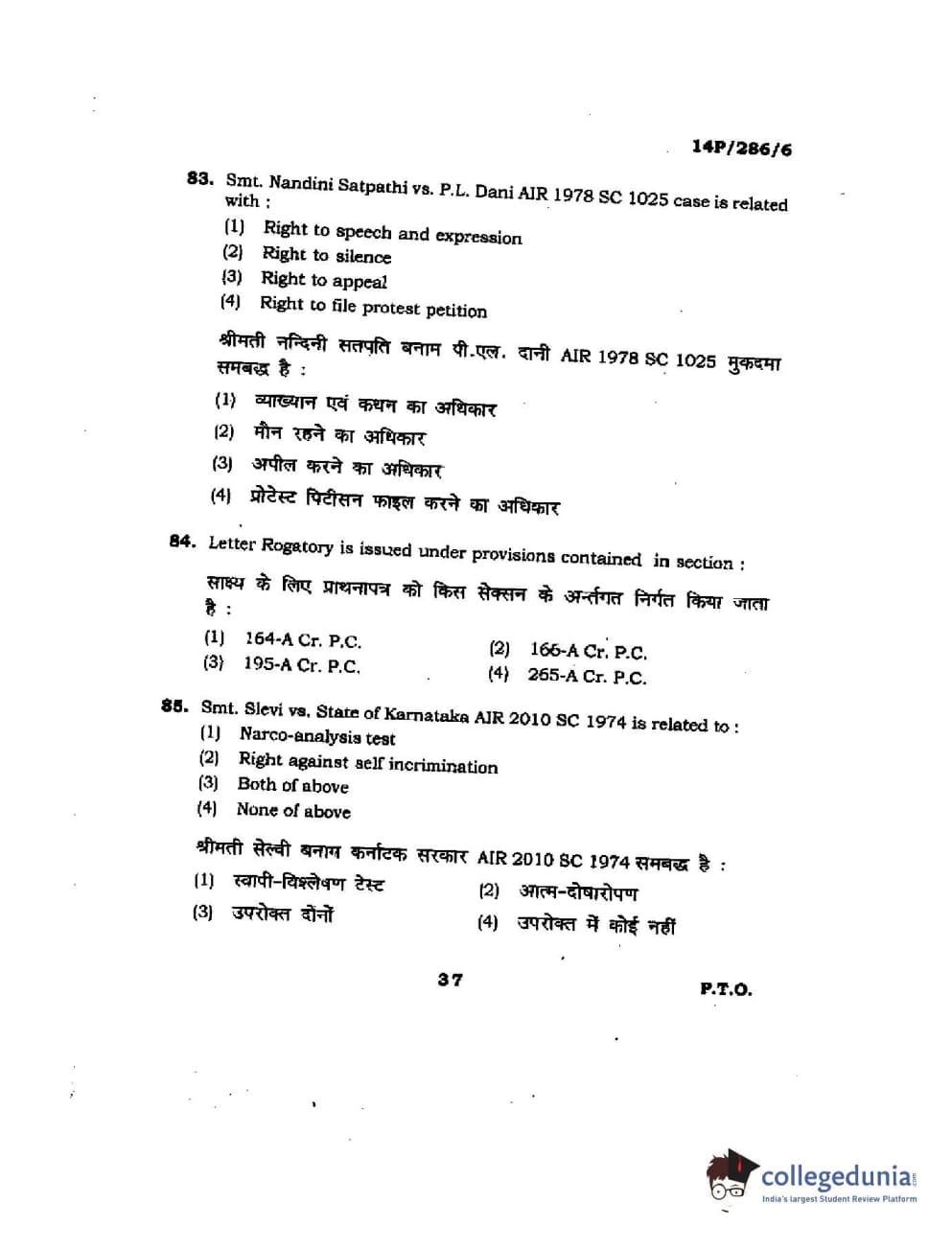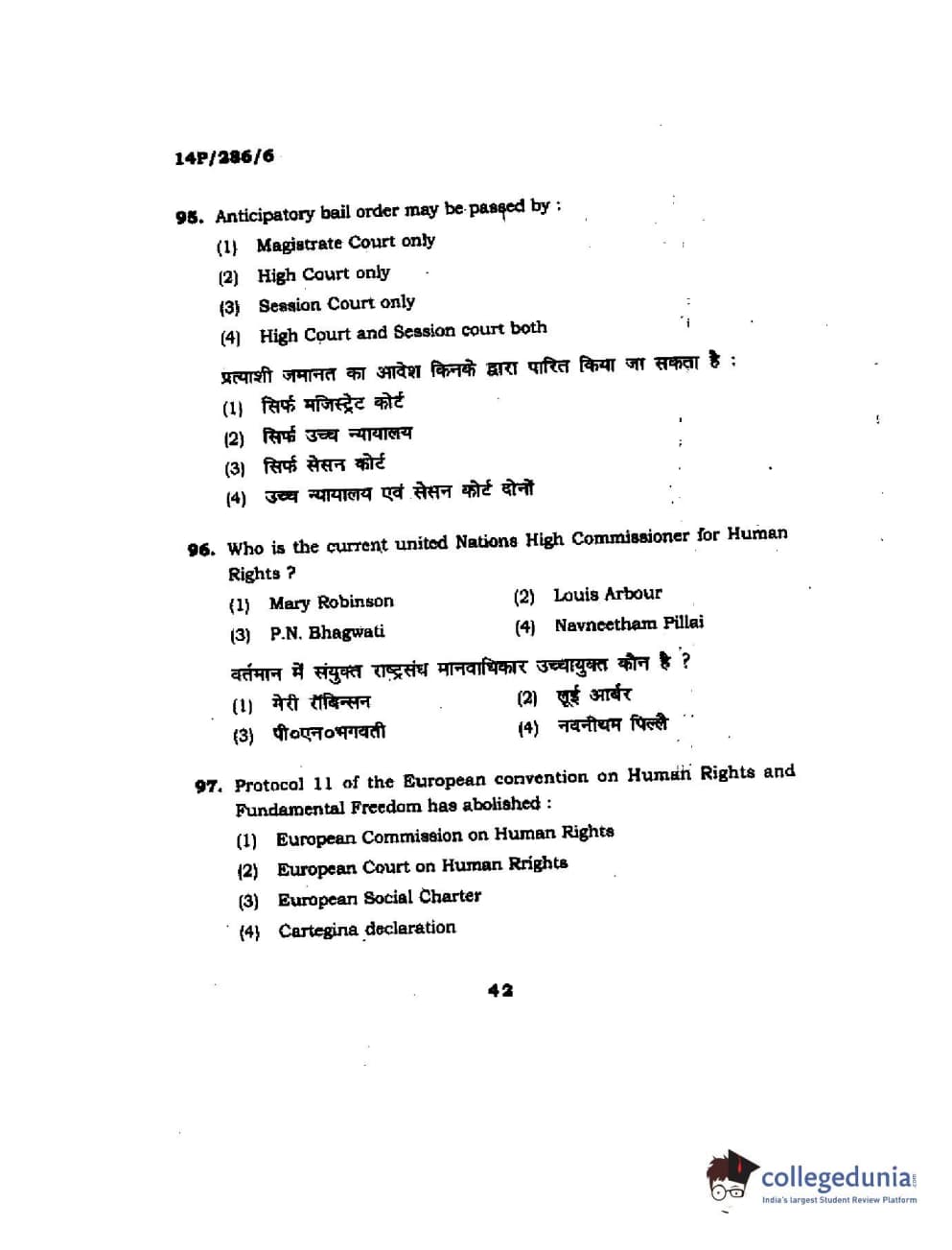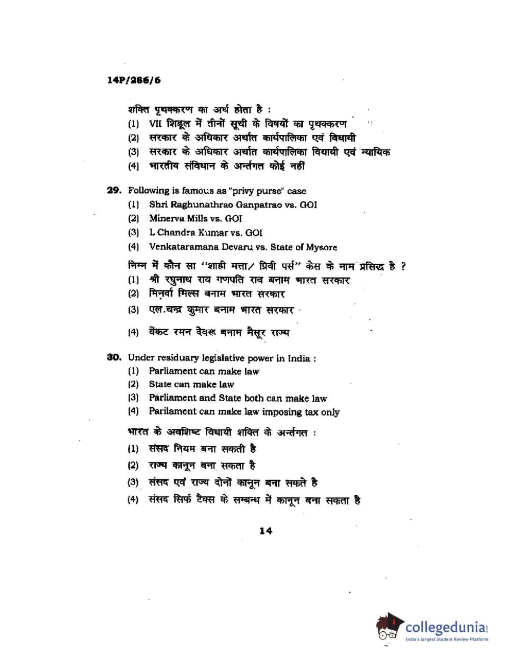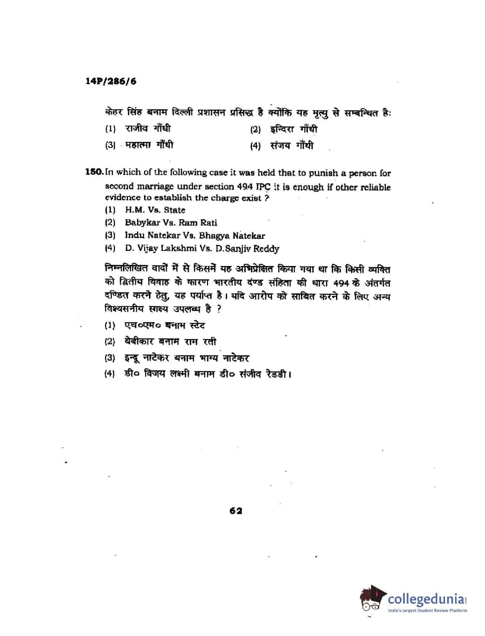 BHU PET 2014 LLM (HRDE) Question Paper with Answer Key PDFs