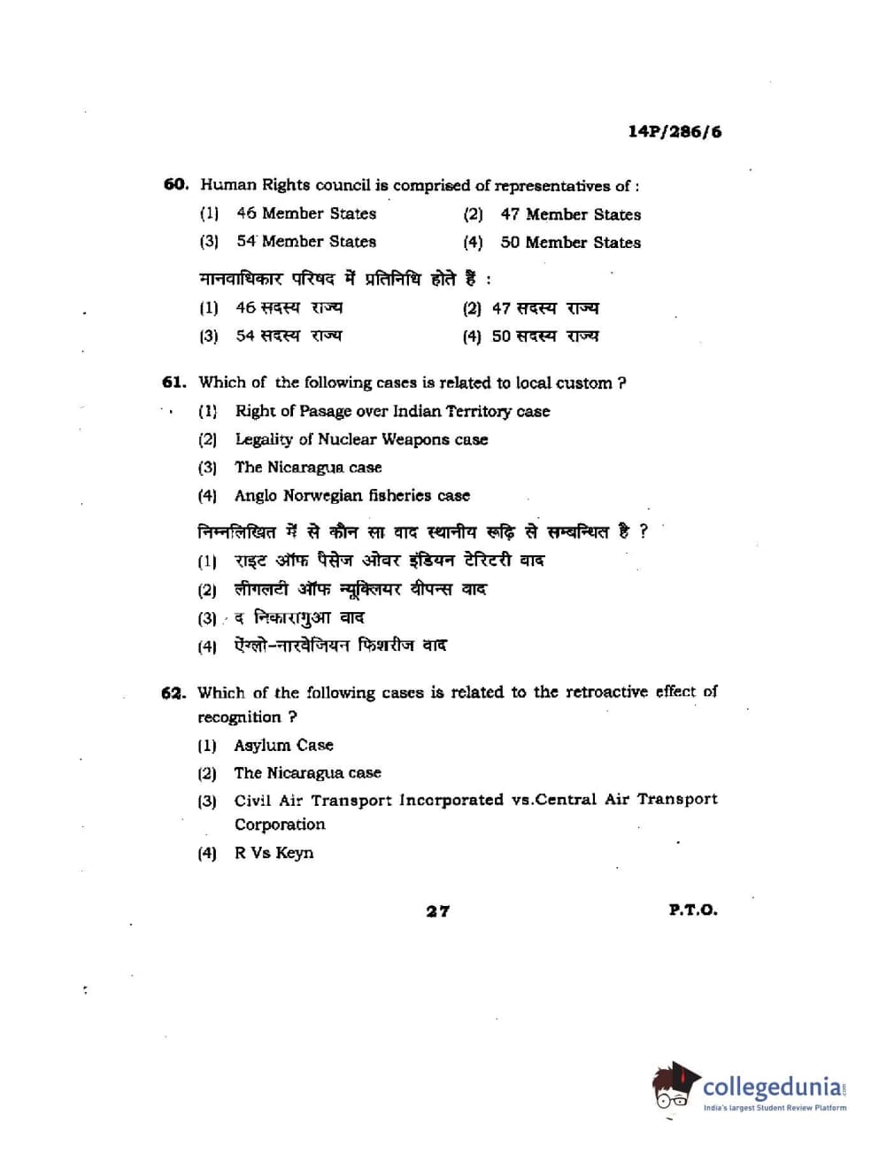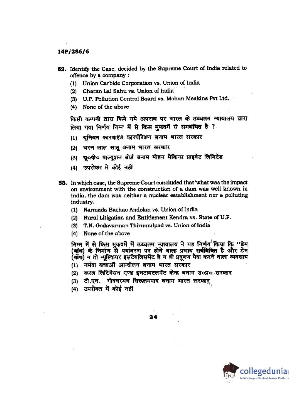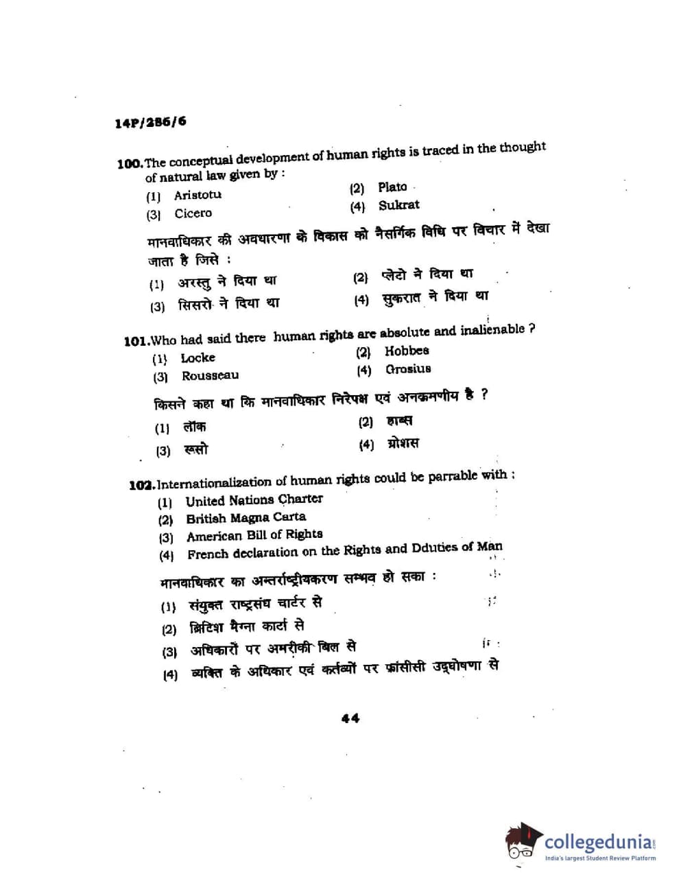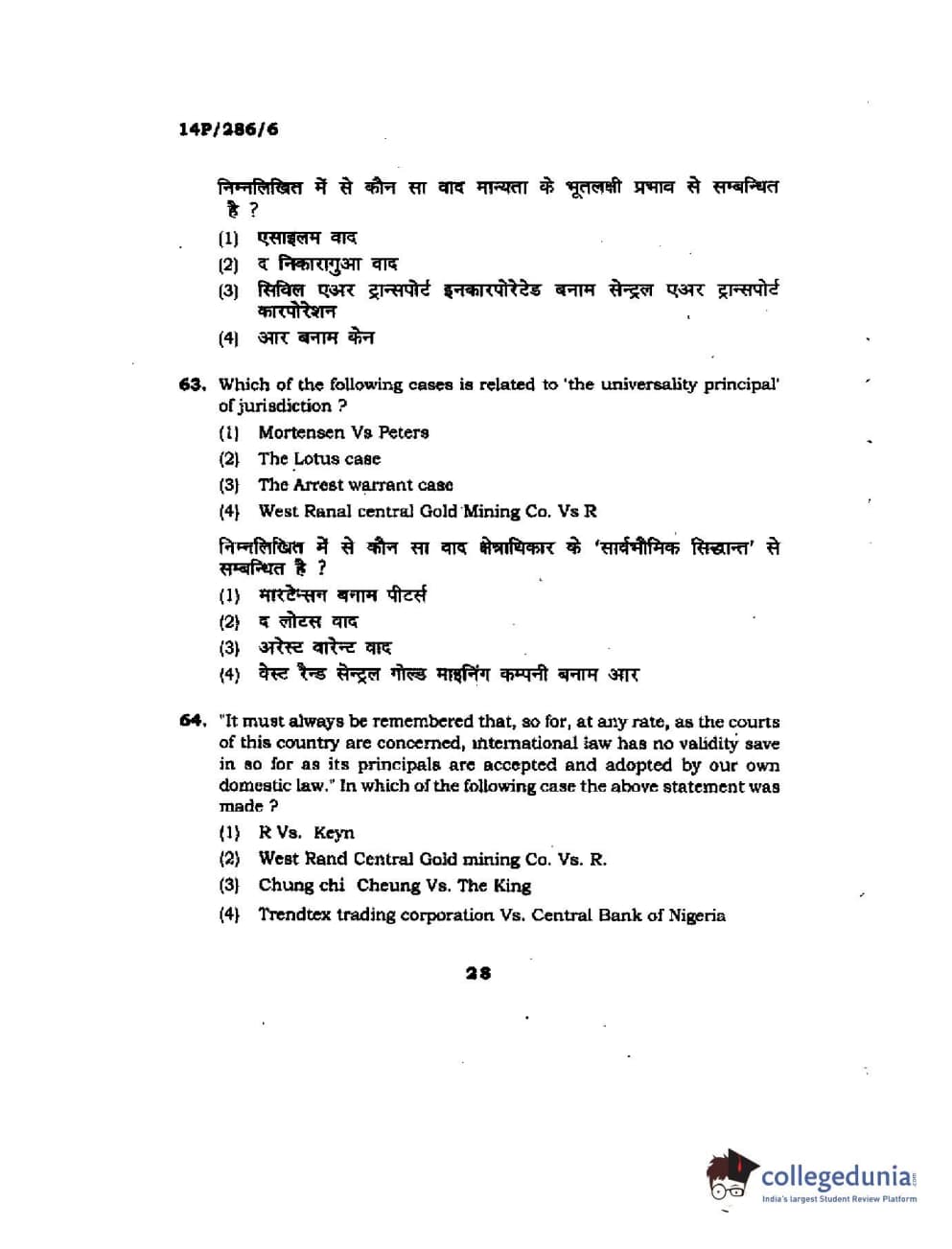 BHU PET 2014 LLM (HRDE) Question Paper with Answer Key PDFs