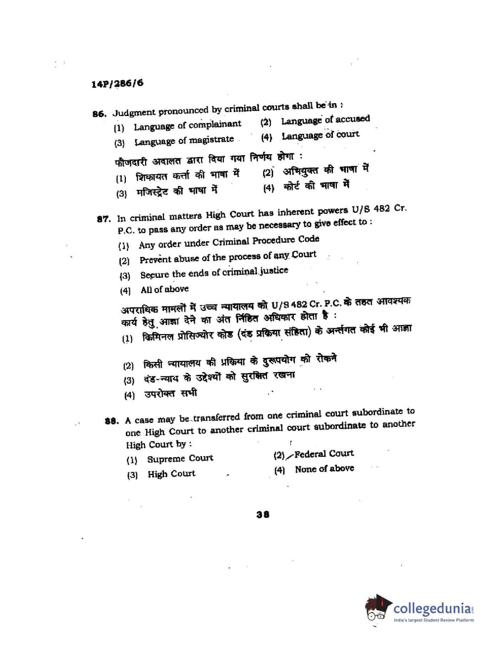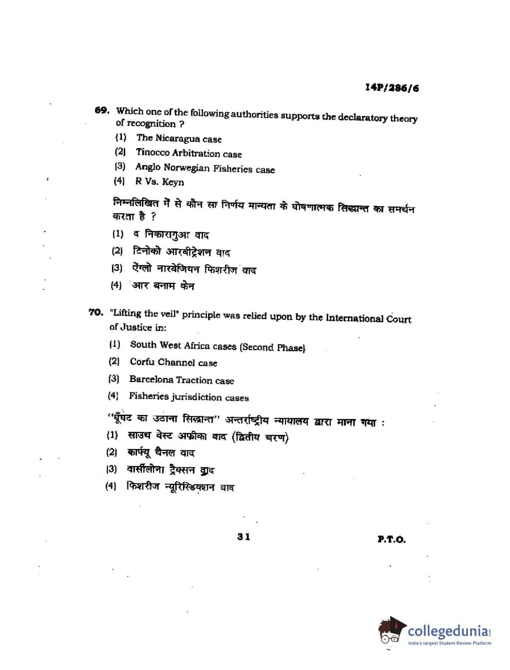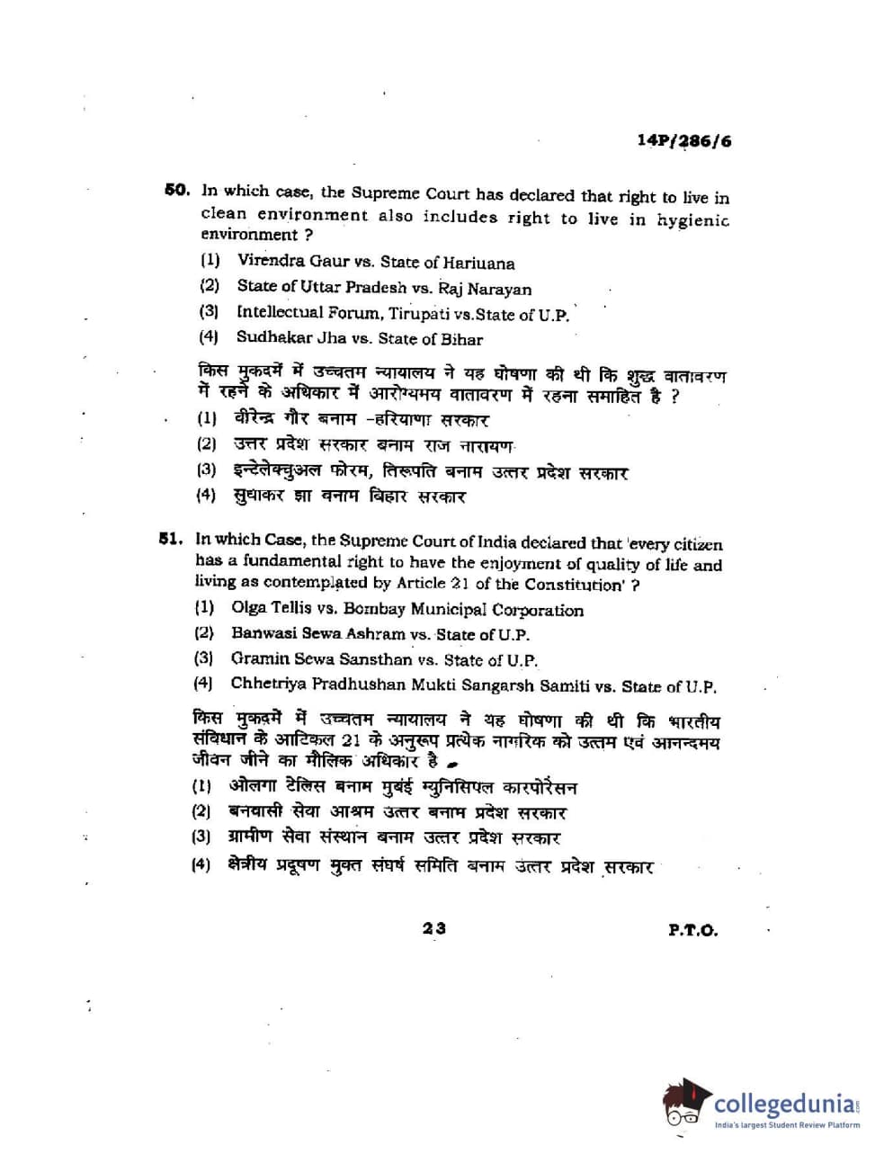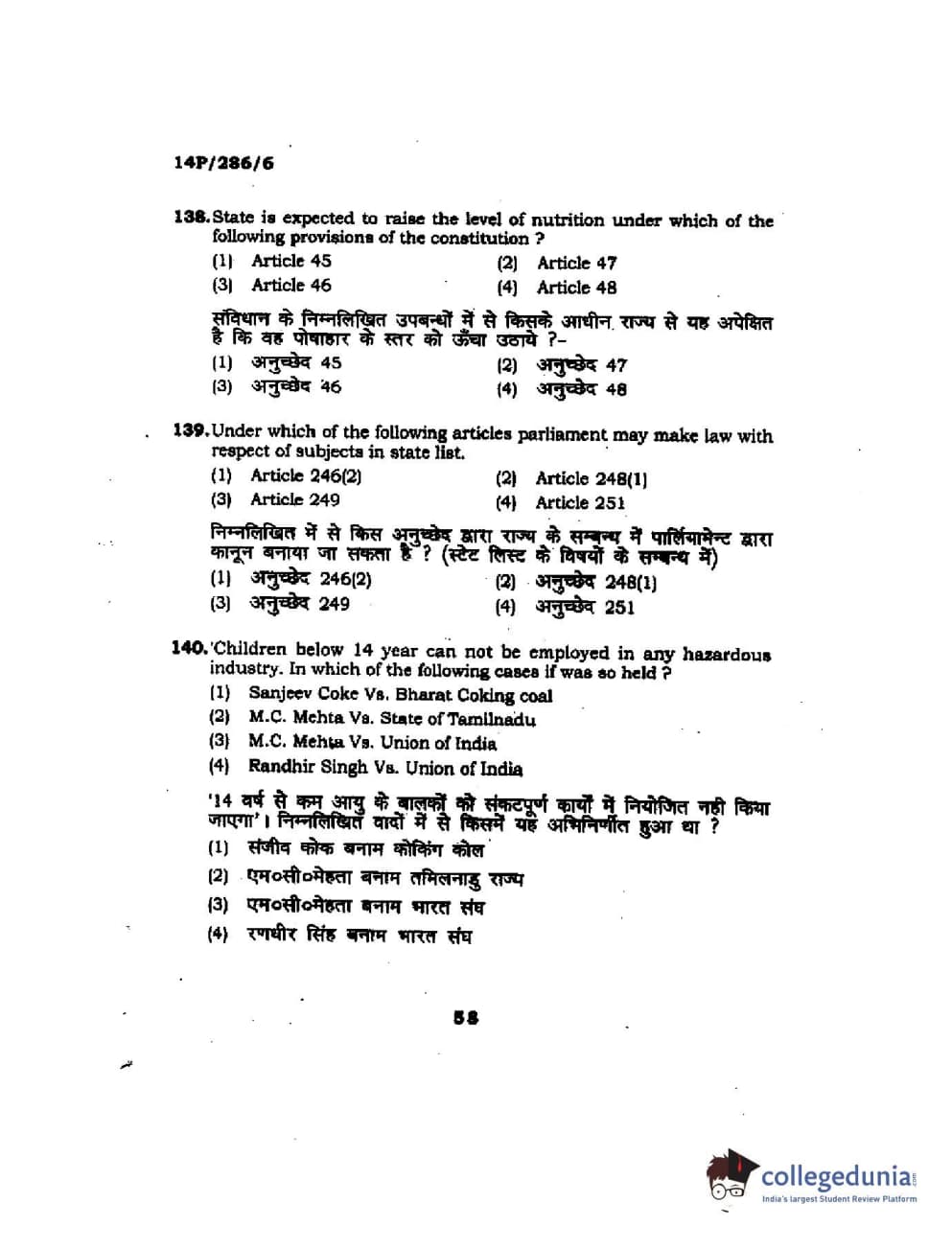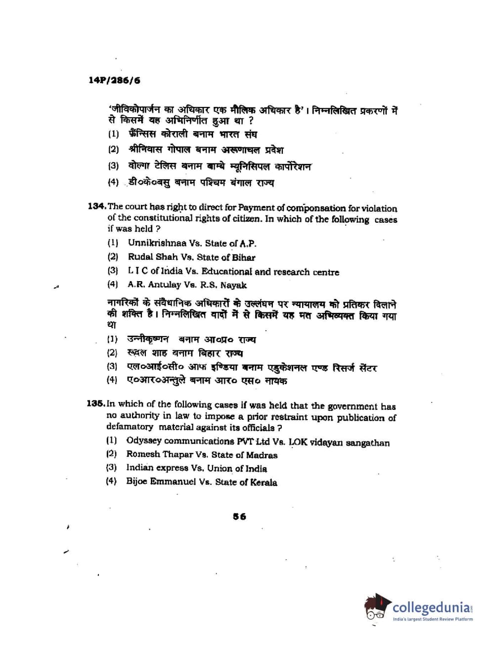 BHU PET 2014 LLM (HRDE) Question Paper with Answer Key PDFs