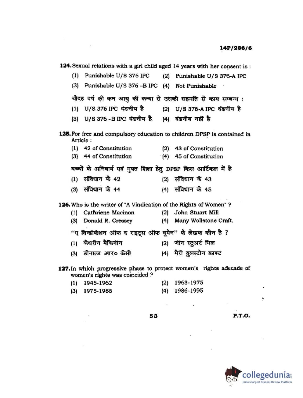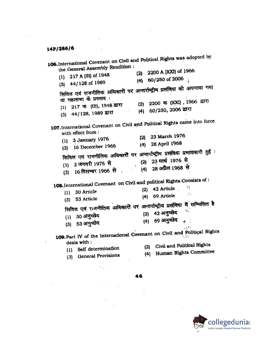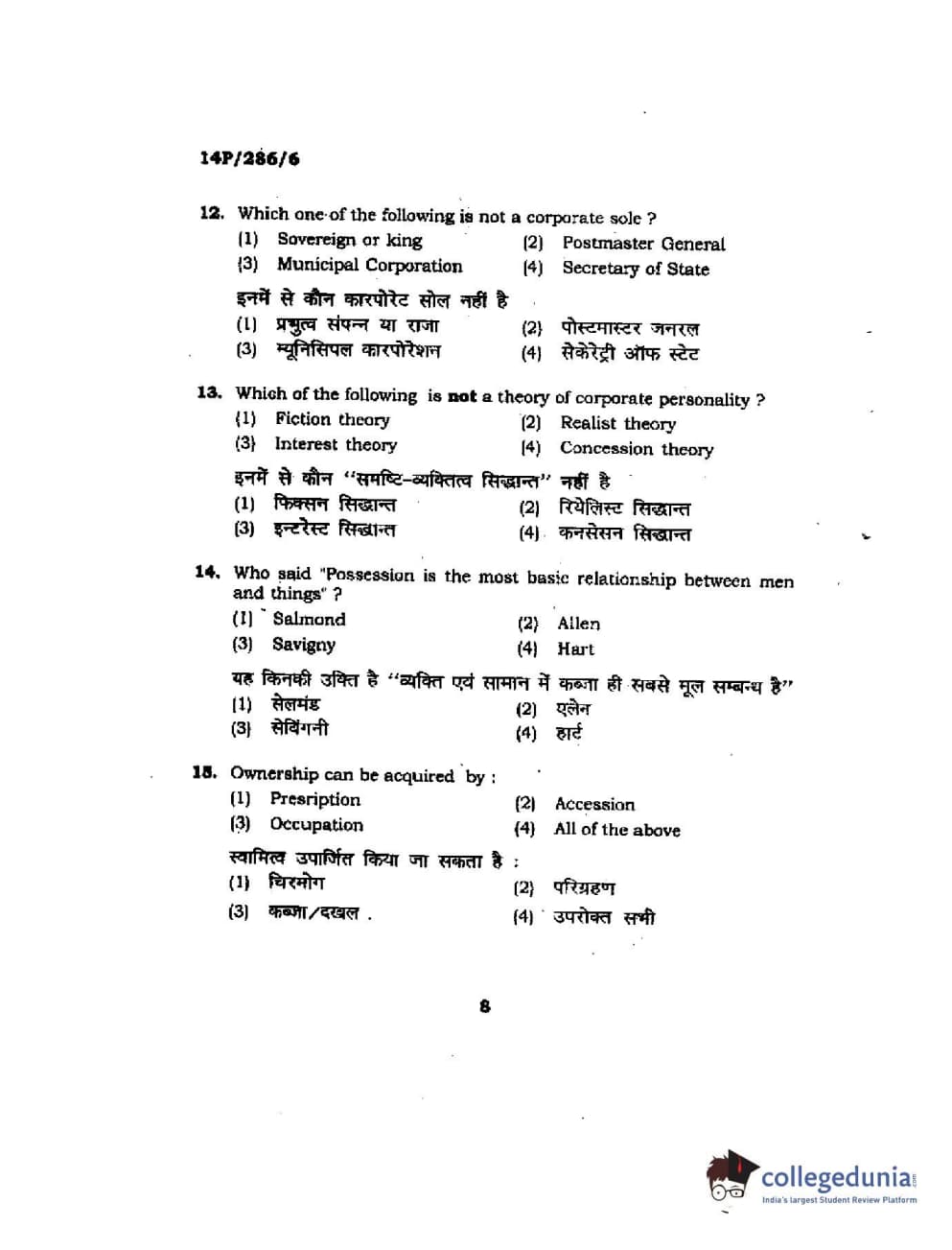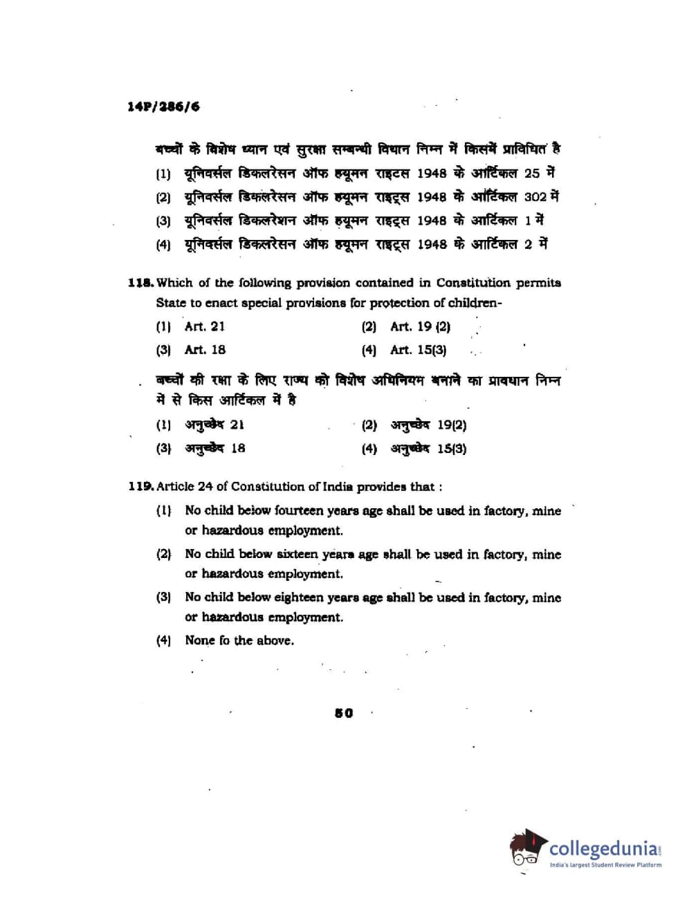 BHU PET 2014 LLM (HRDE) Question Paper with Answer Key PDFs
