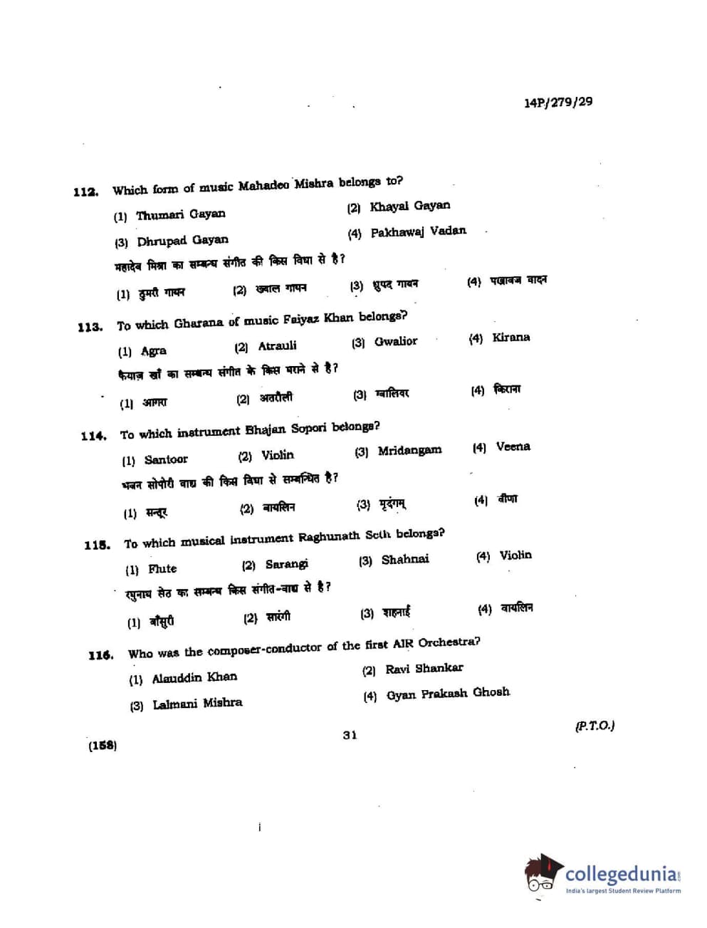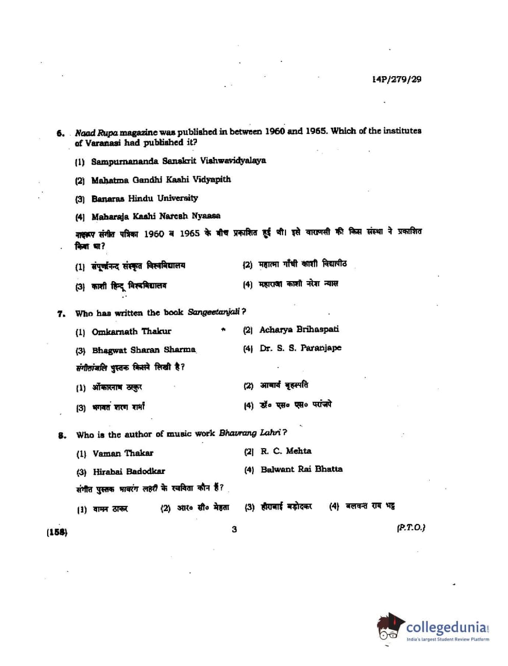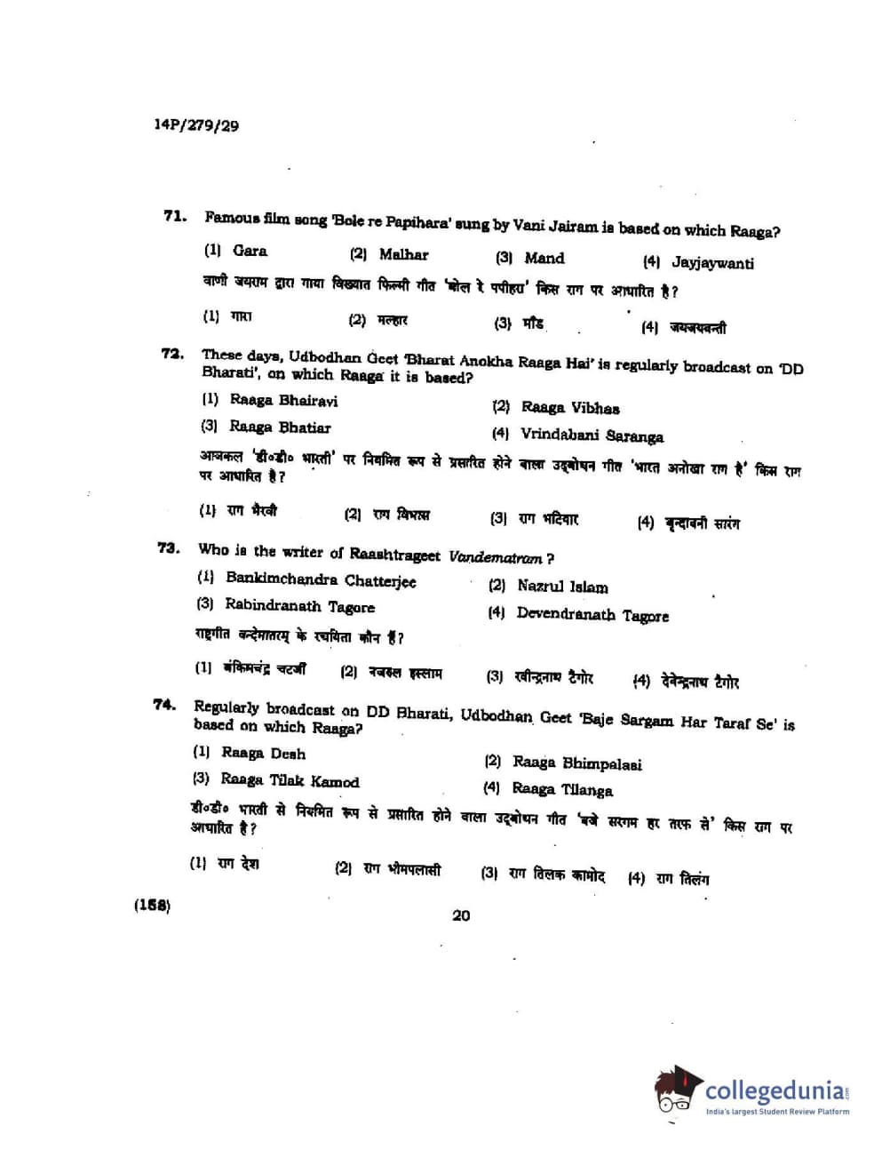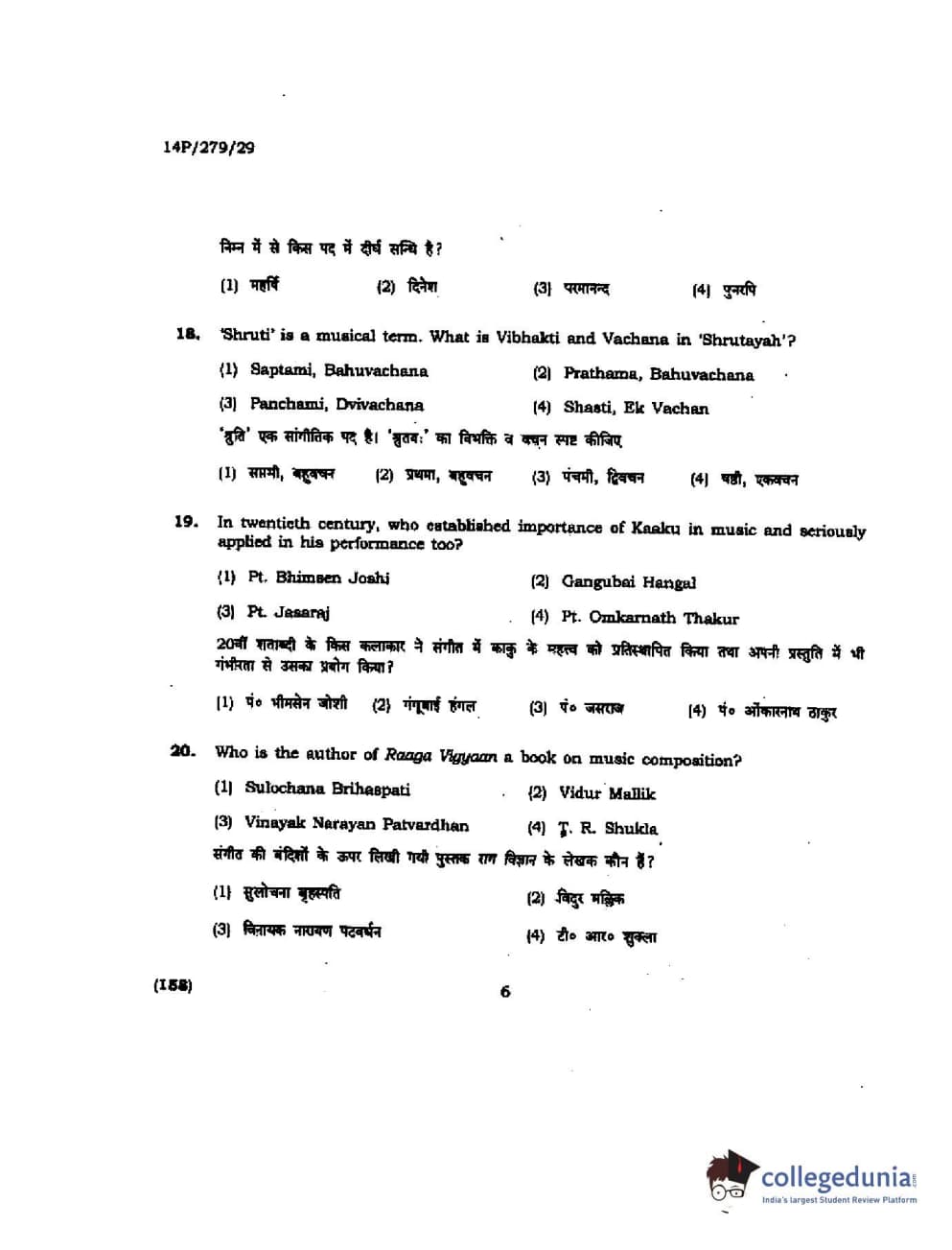 BHU PET 2014 M. Musicology Question Paper with Answer Key PDFs