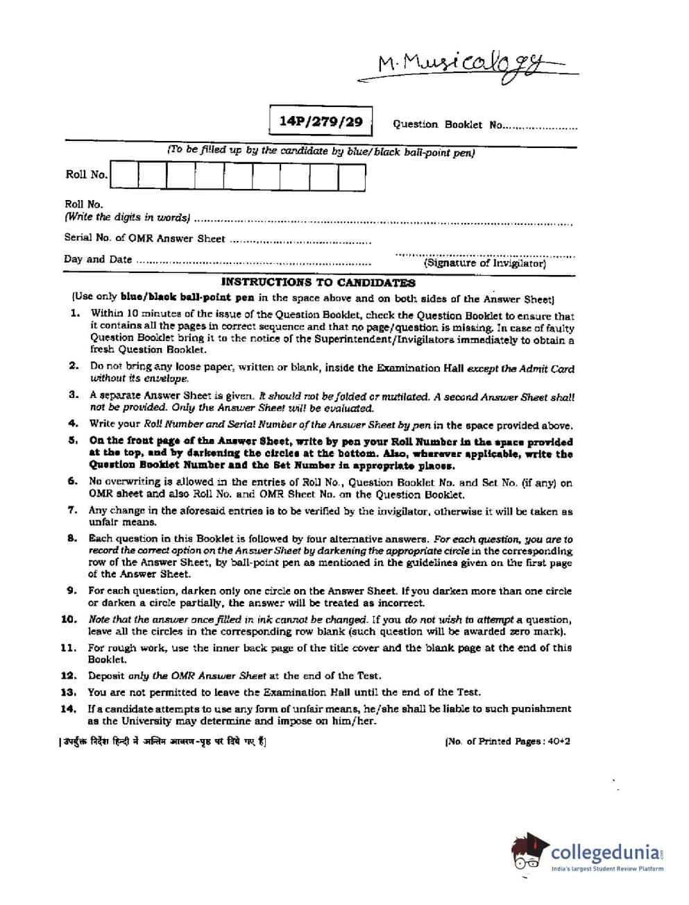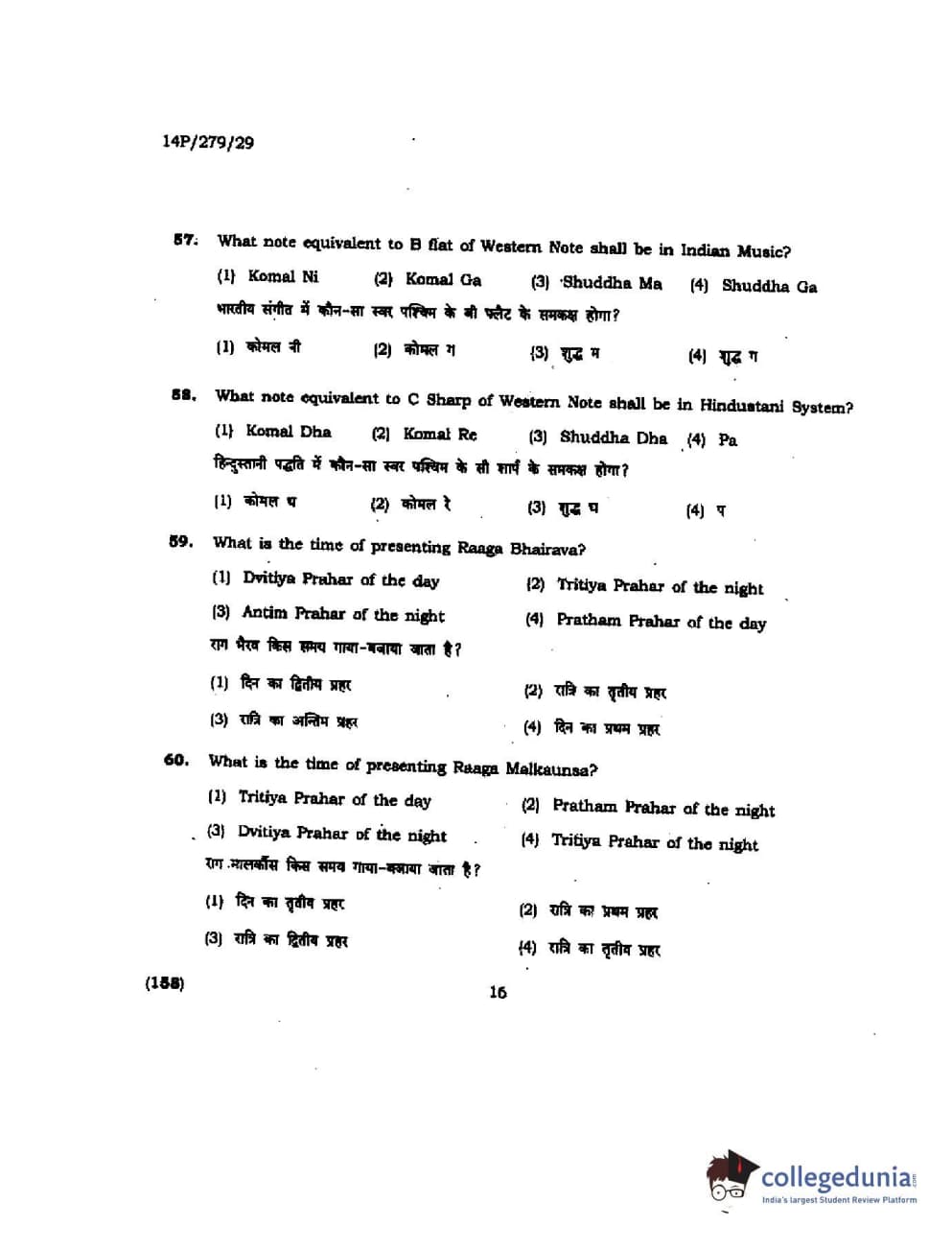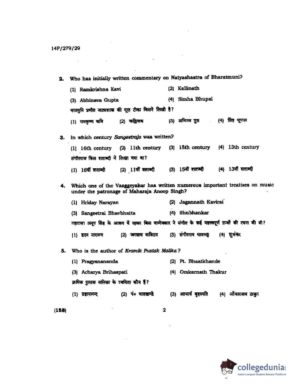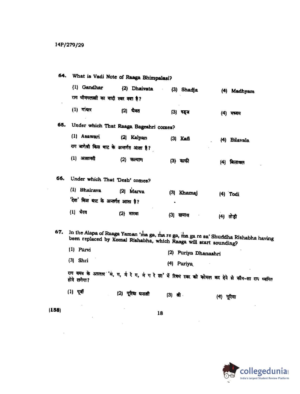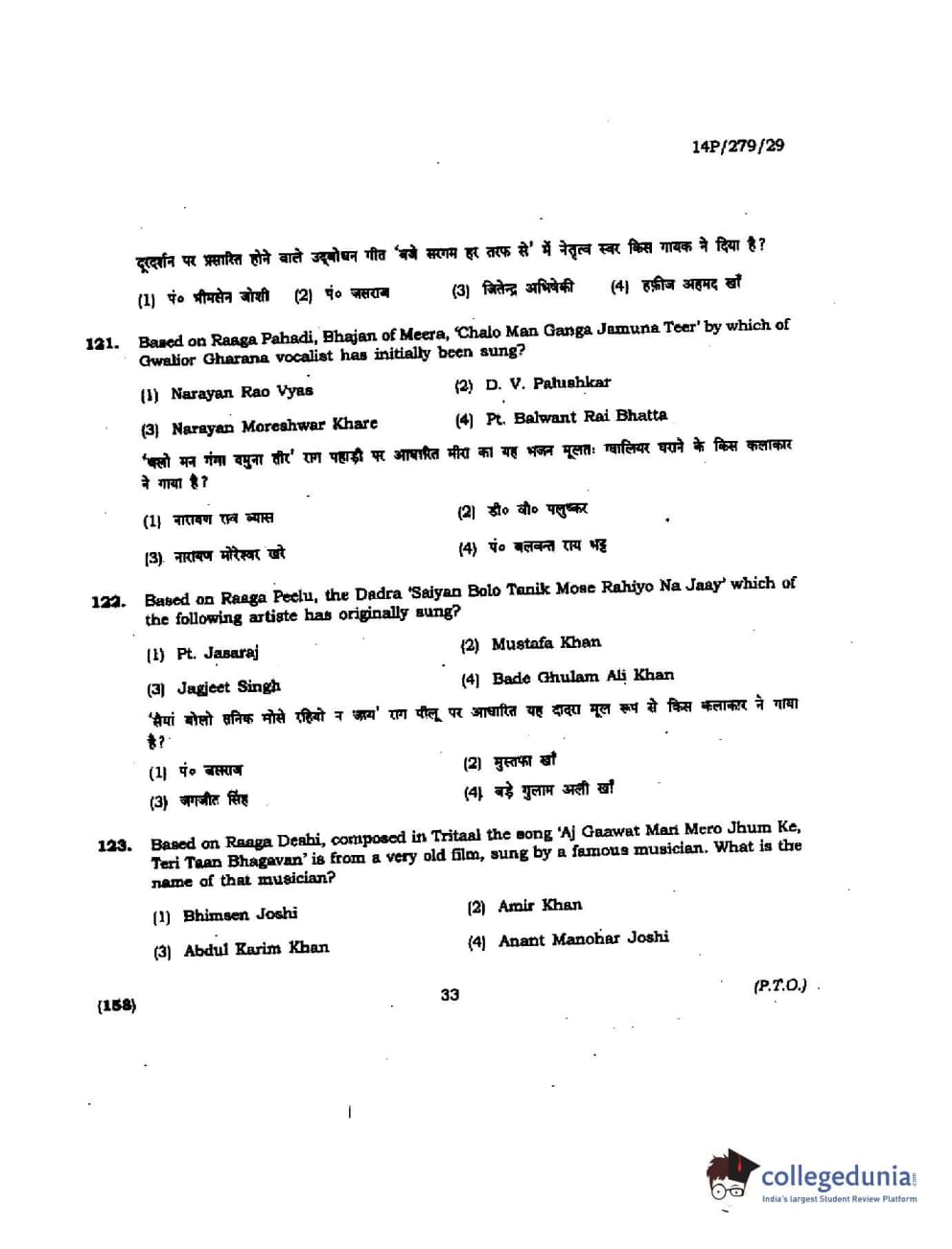 BHU PET 2014 M. Musicology Question Paper with Answer Key PDFs