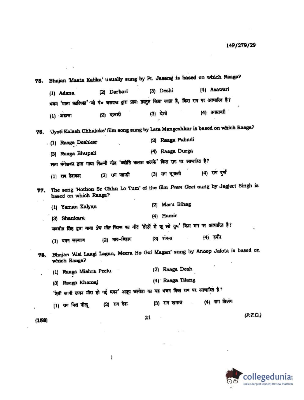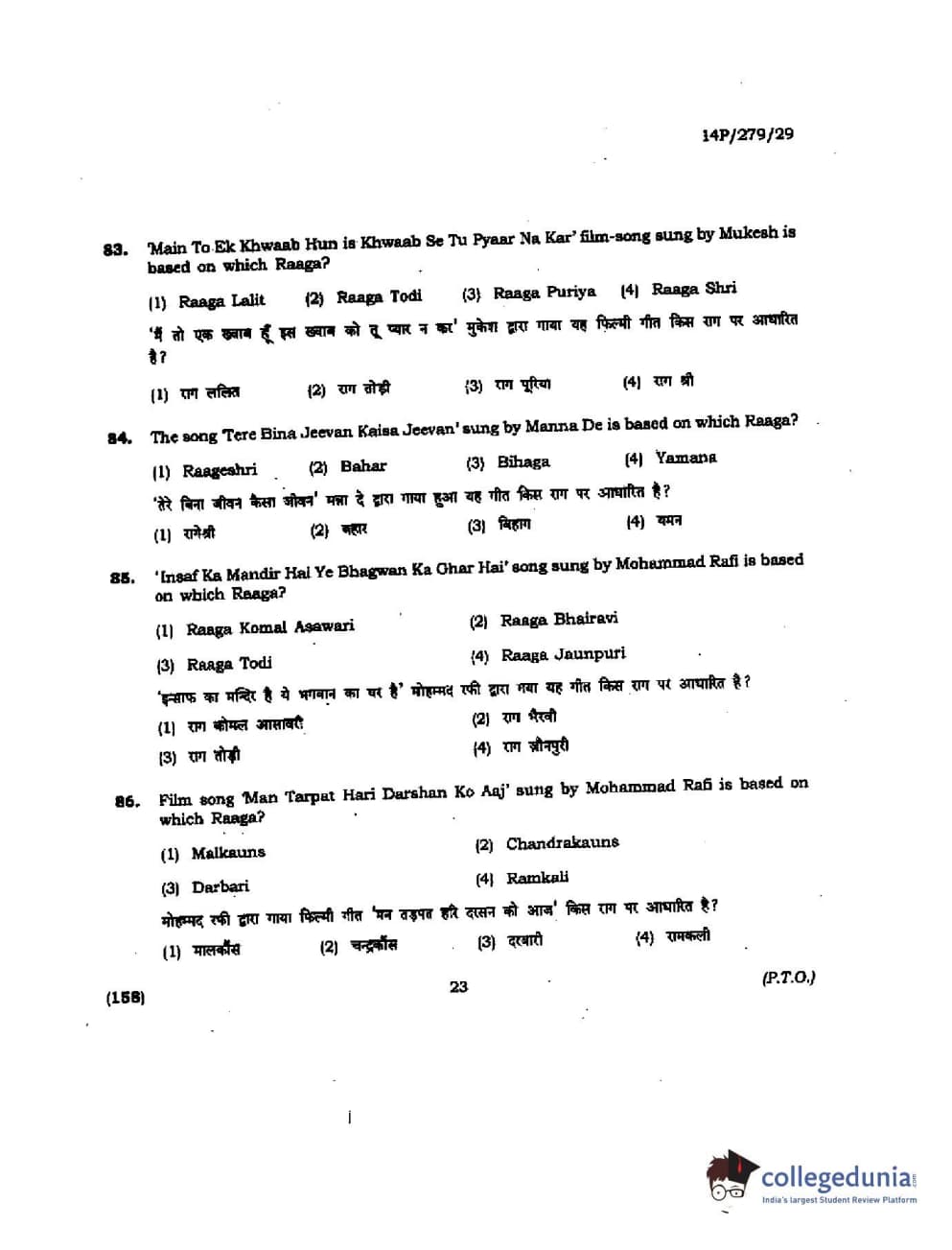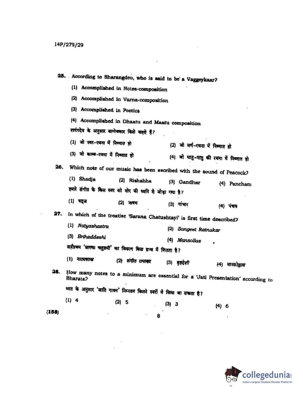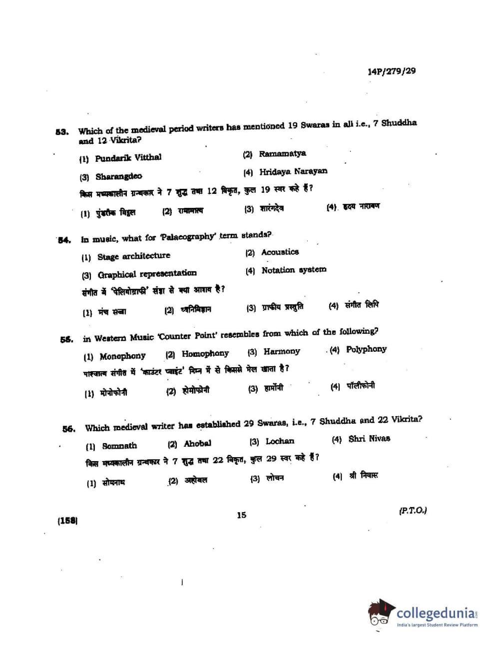 BHU PET 2014 M. Musicology Question Paper with Answer Key PDFs