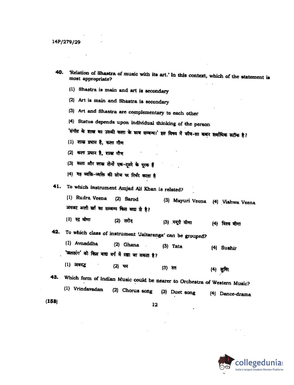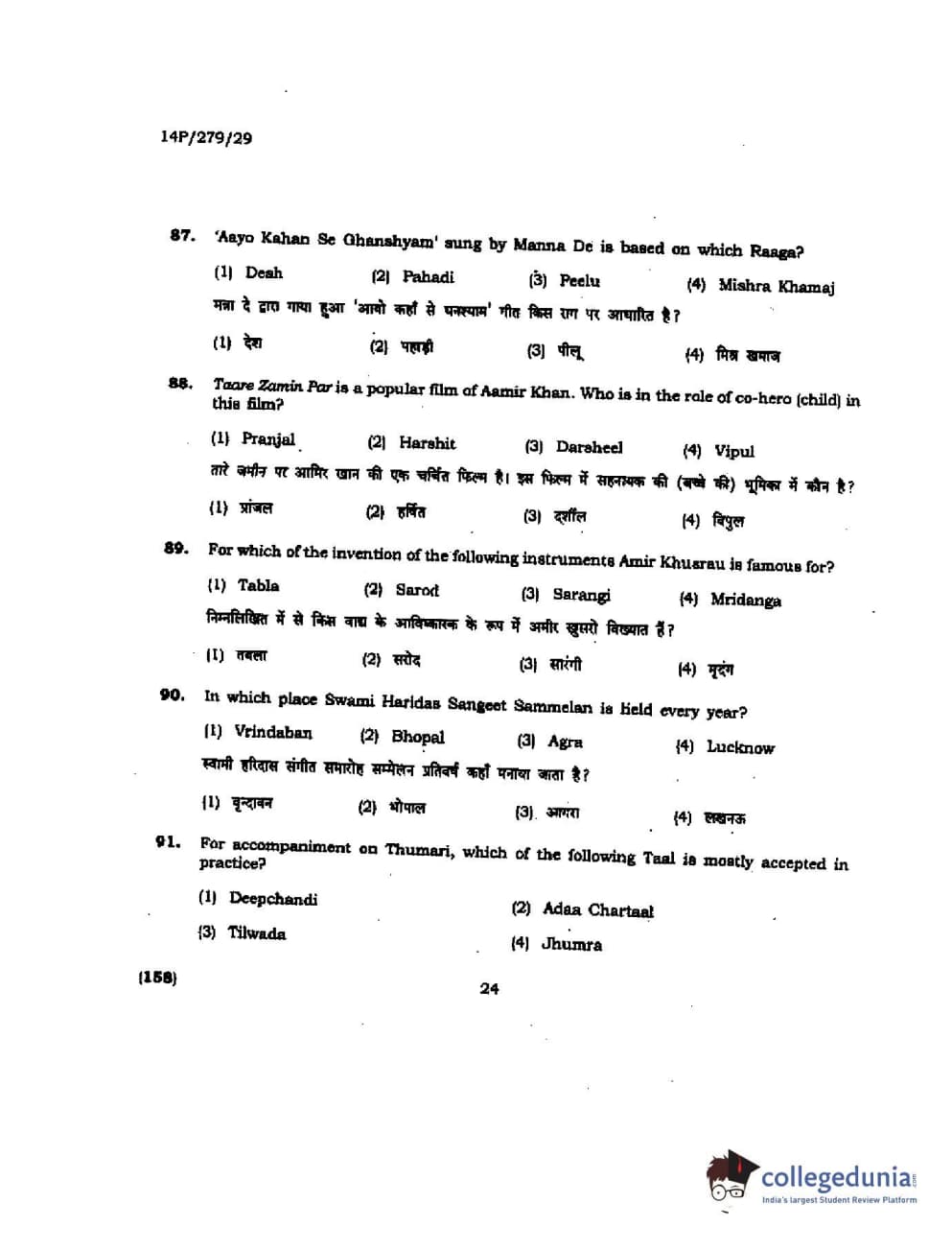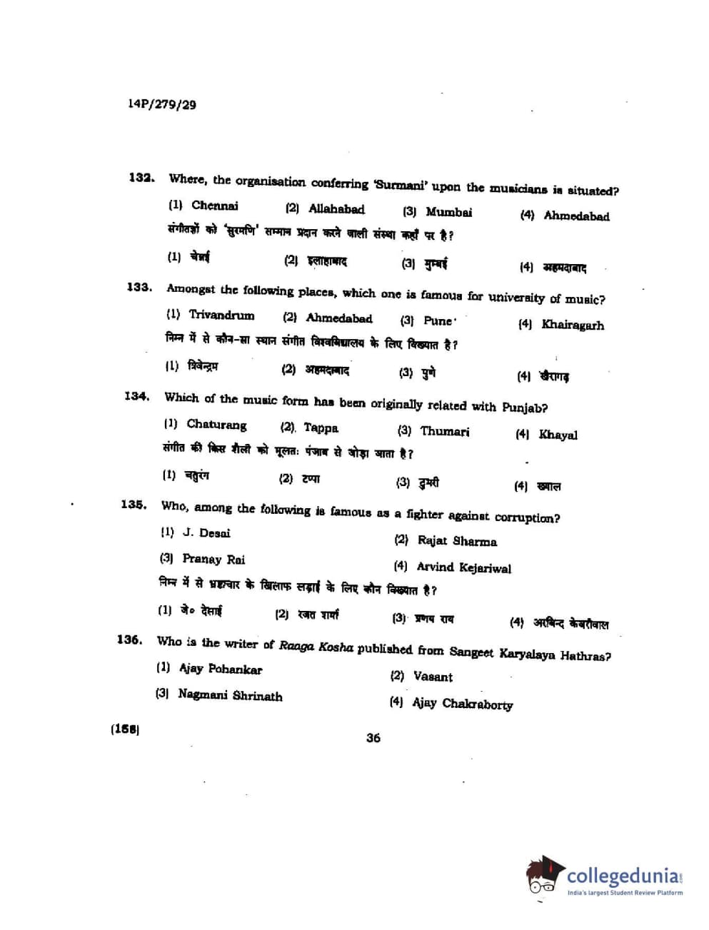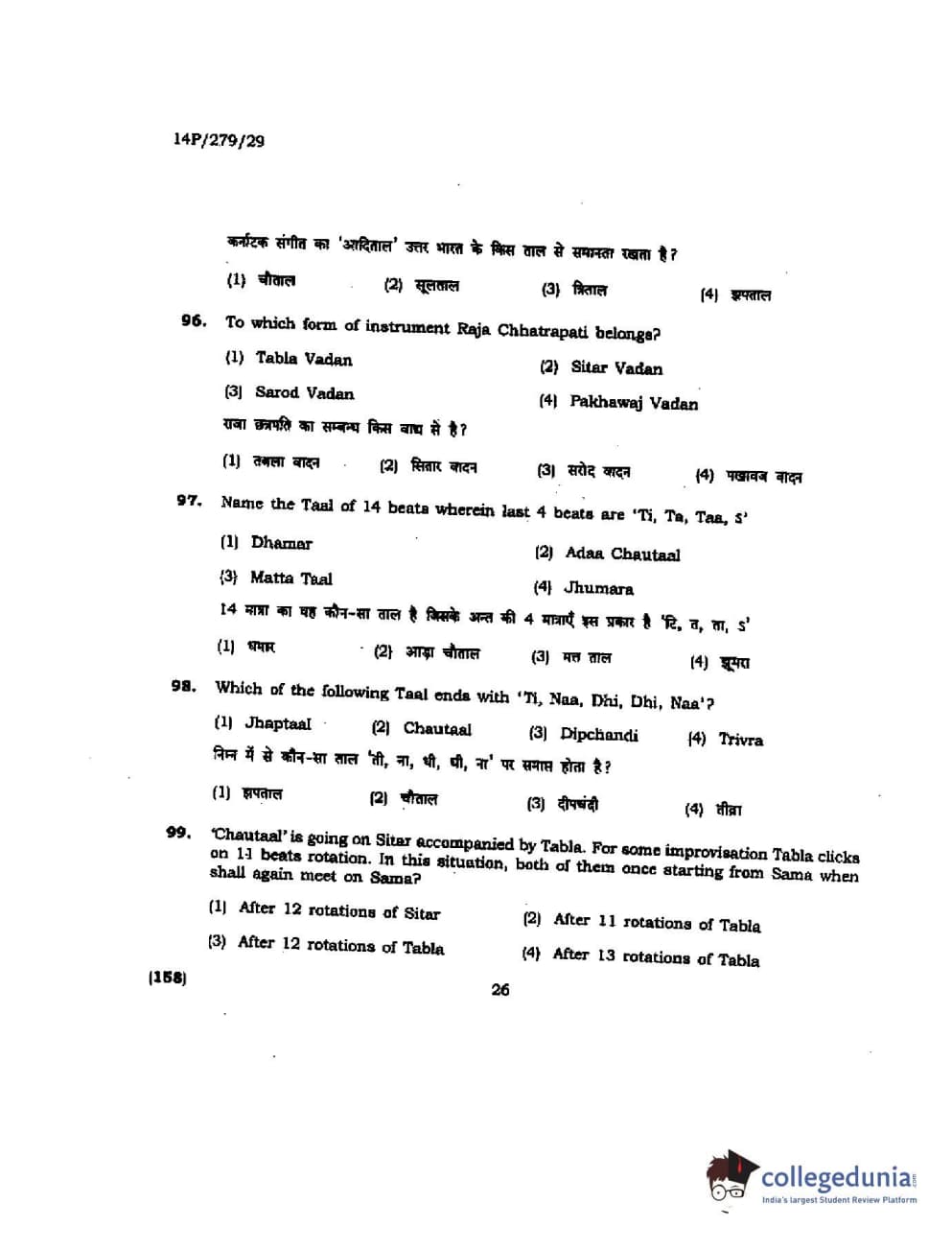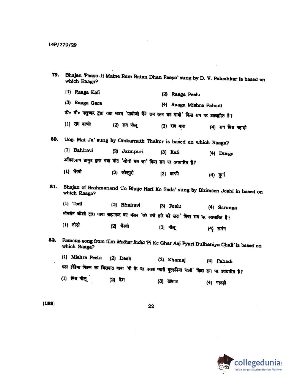 BHU PET 2014 M. Musicology Question Paper with Answer Key PDFs