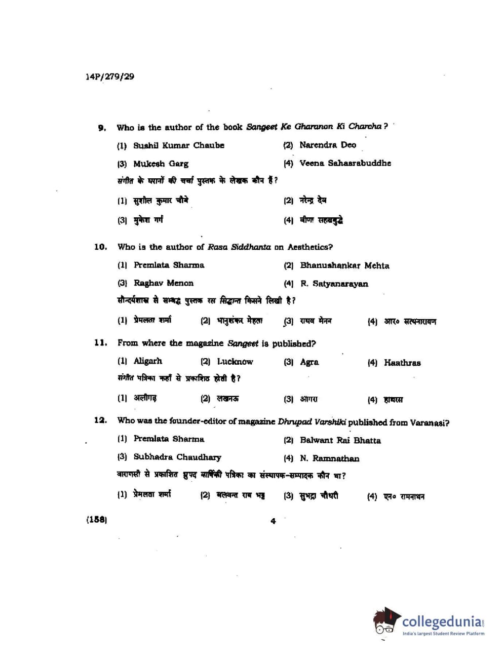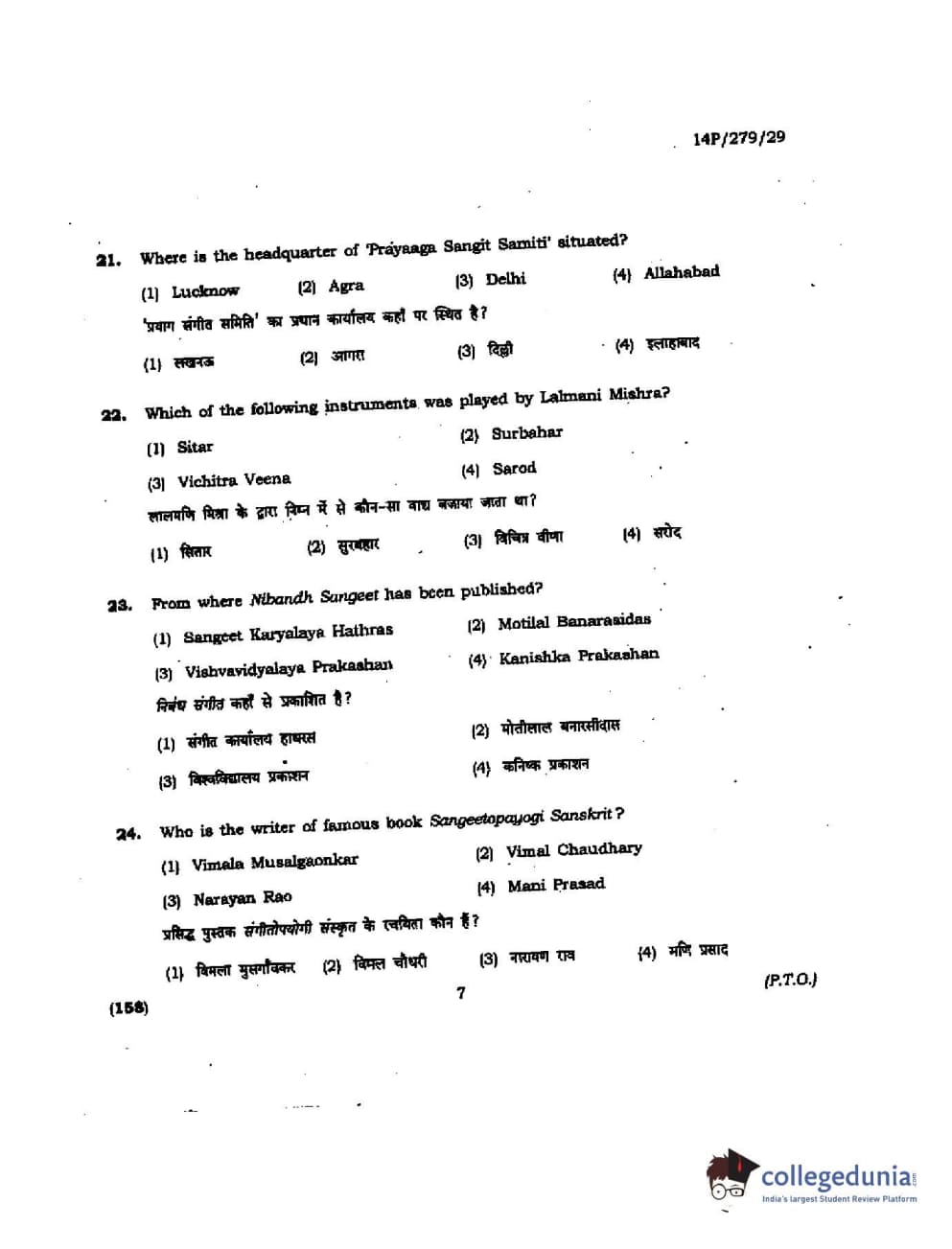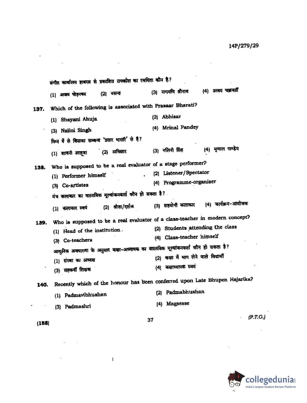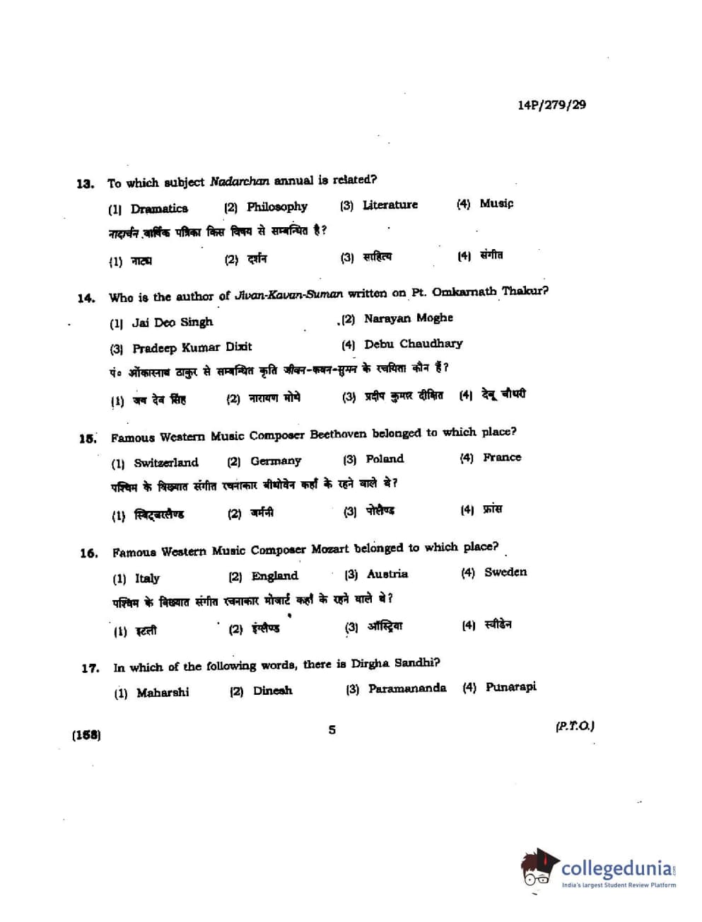 BHU PET 2014 M. Musicology Question Paper with Answer Key PDFs