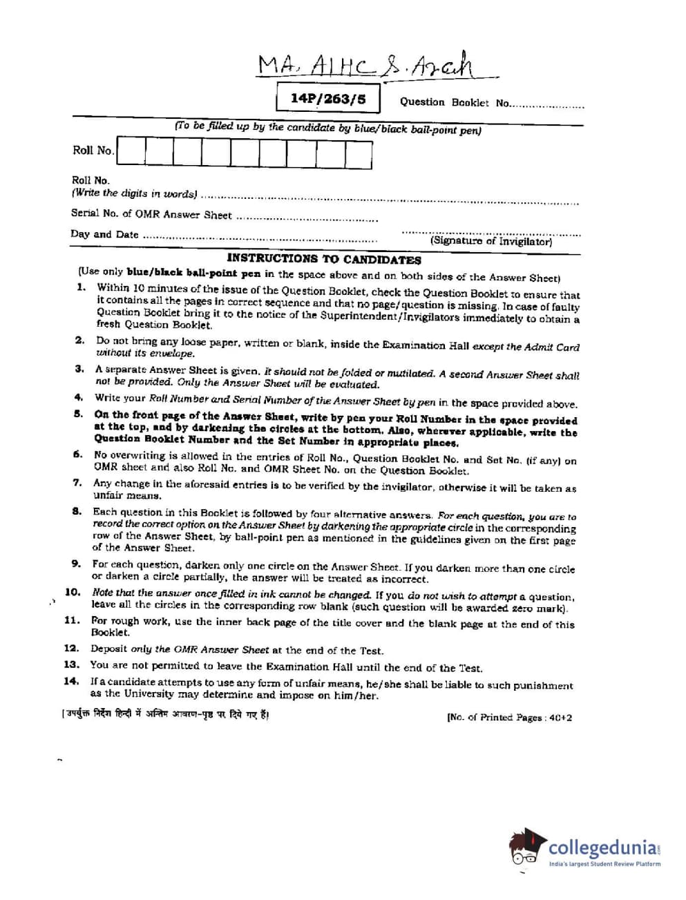 BHU PET 2014 M.A. AIHC & ARCH Question paper with answer key pdf is available for download. The exam was successfully organized by Banaras Hindu University (BHU). The question paper comprised a total of 150 questions.