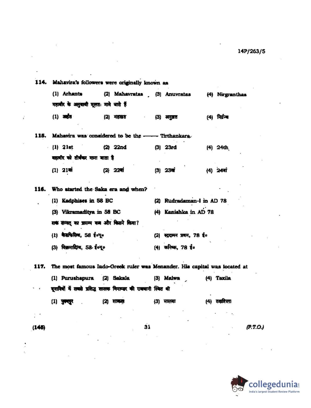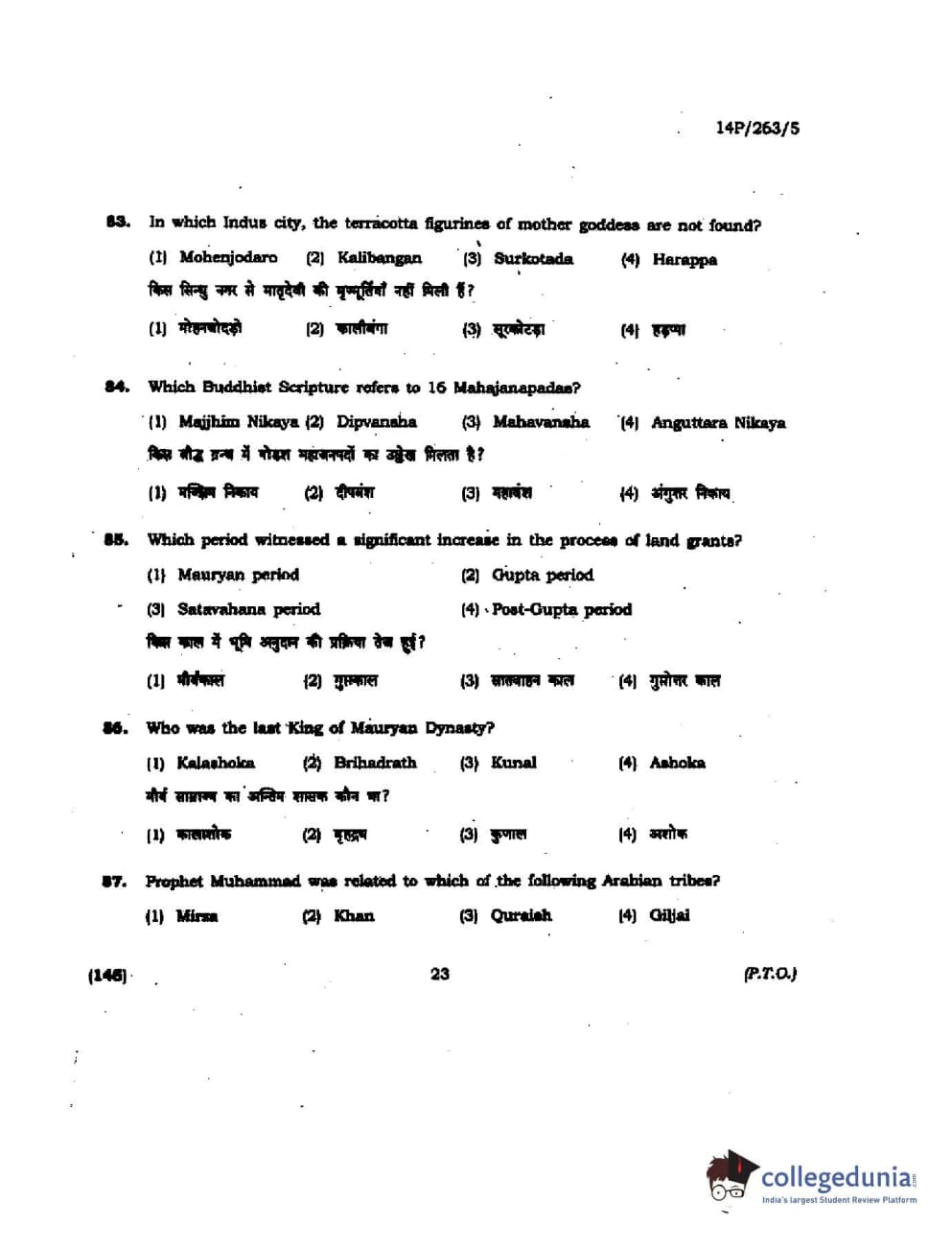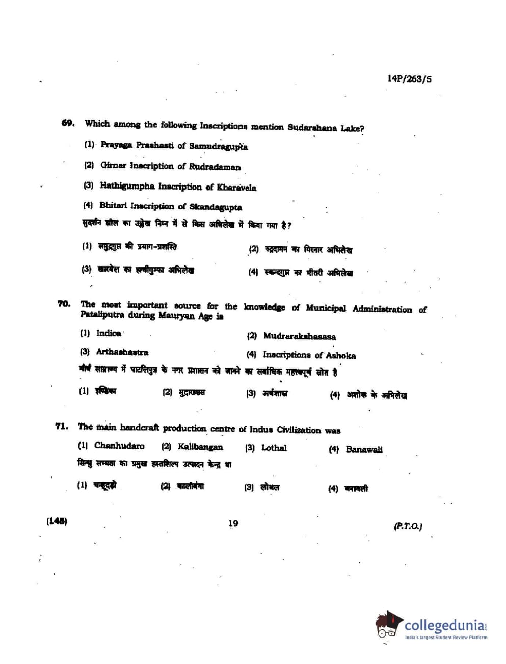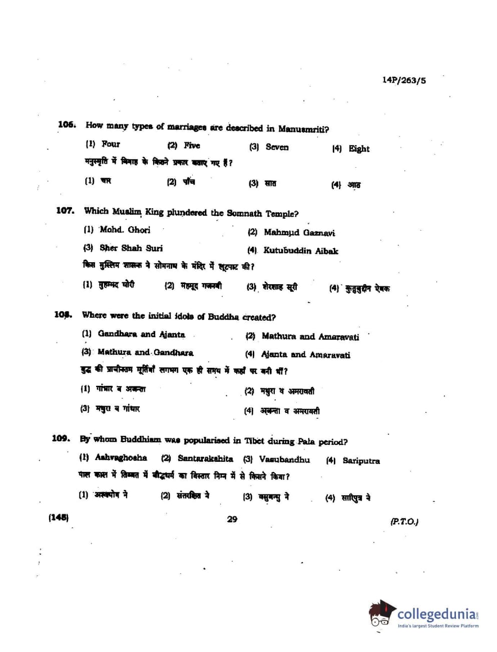 BHU PET 2014 M.A. AIHC & ARCH Question Paper with Answer Key PDFs